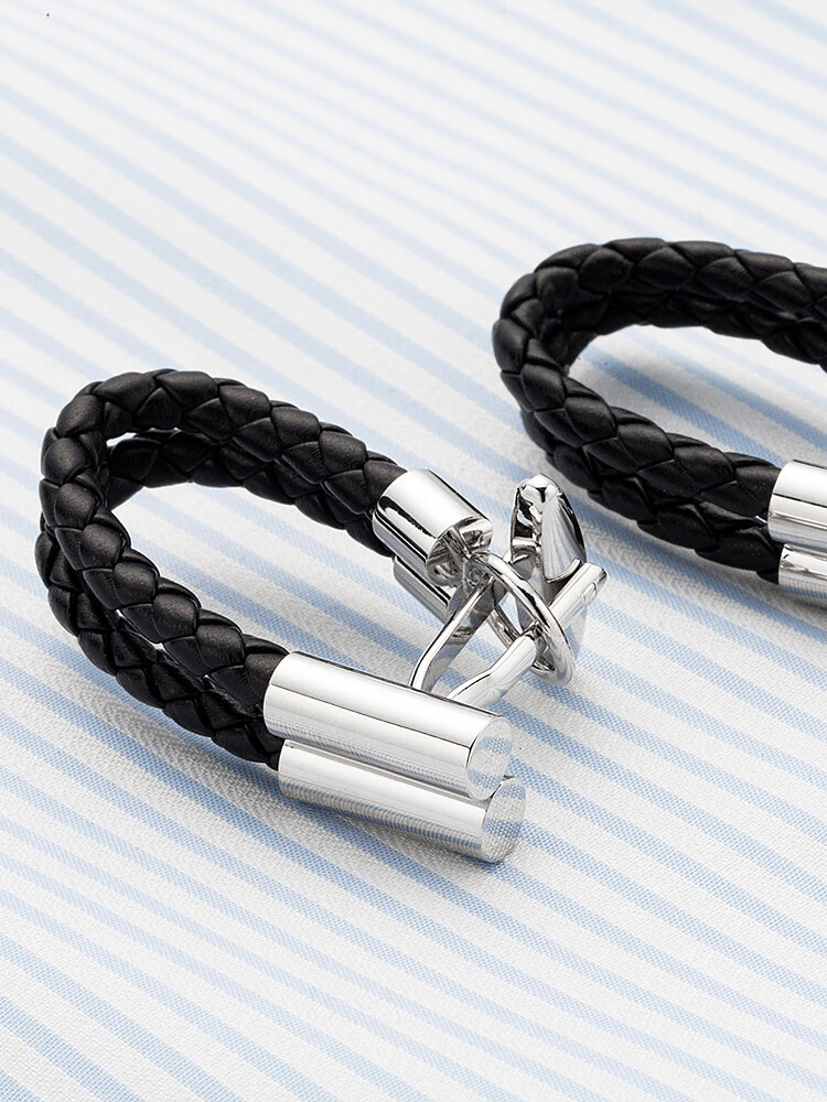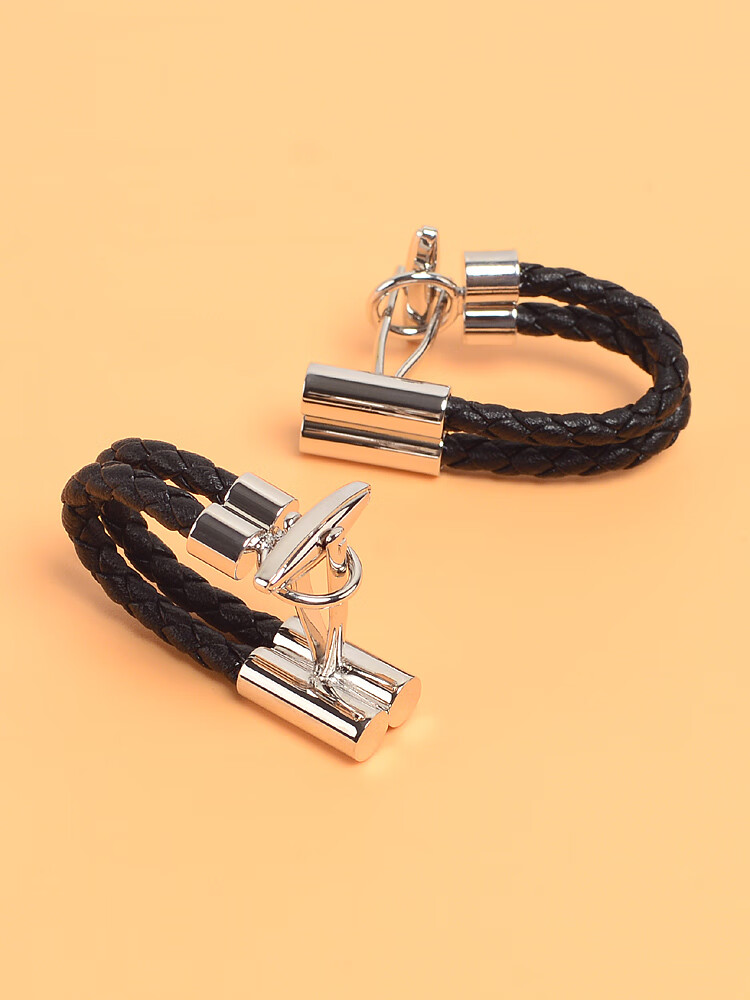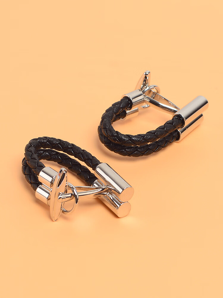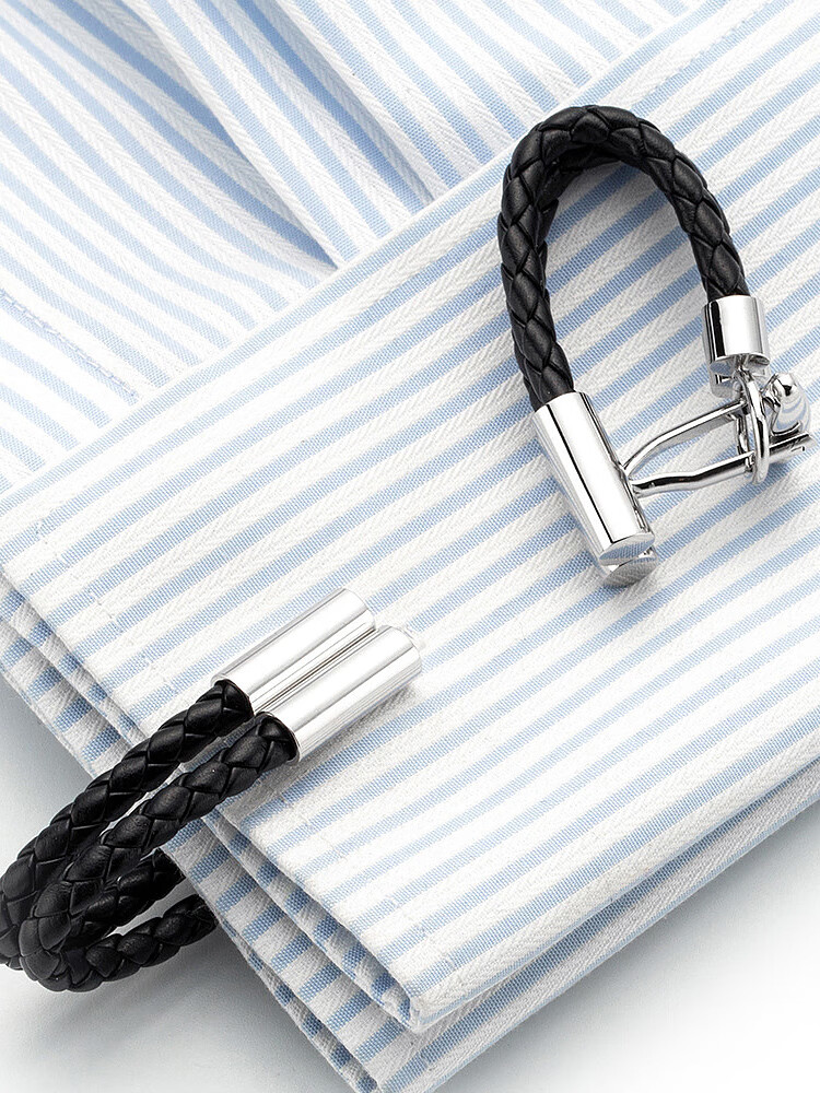 Pierre Cardin (Pierre Cardin) France imported quality and personalized new shirt accessories French cufflinks business men's cylindrical shape leather rope x177 black rope