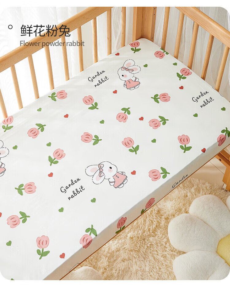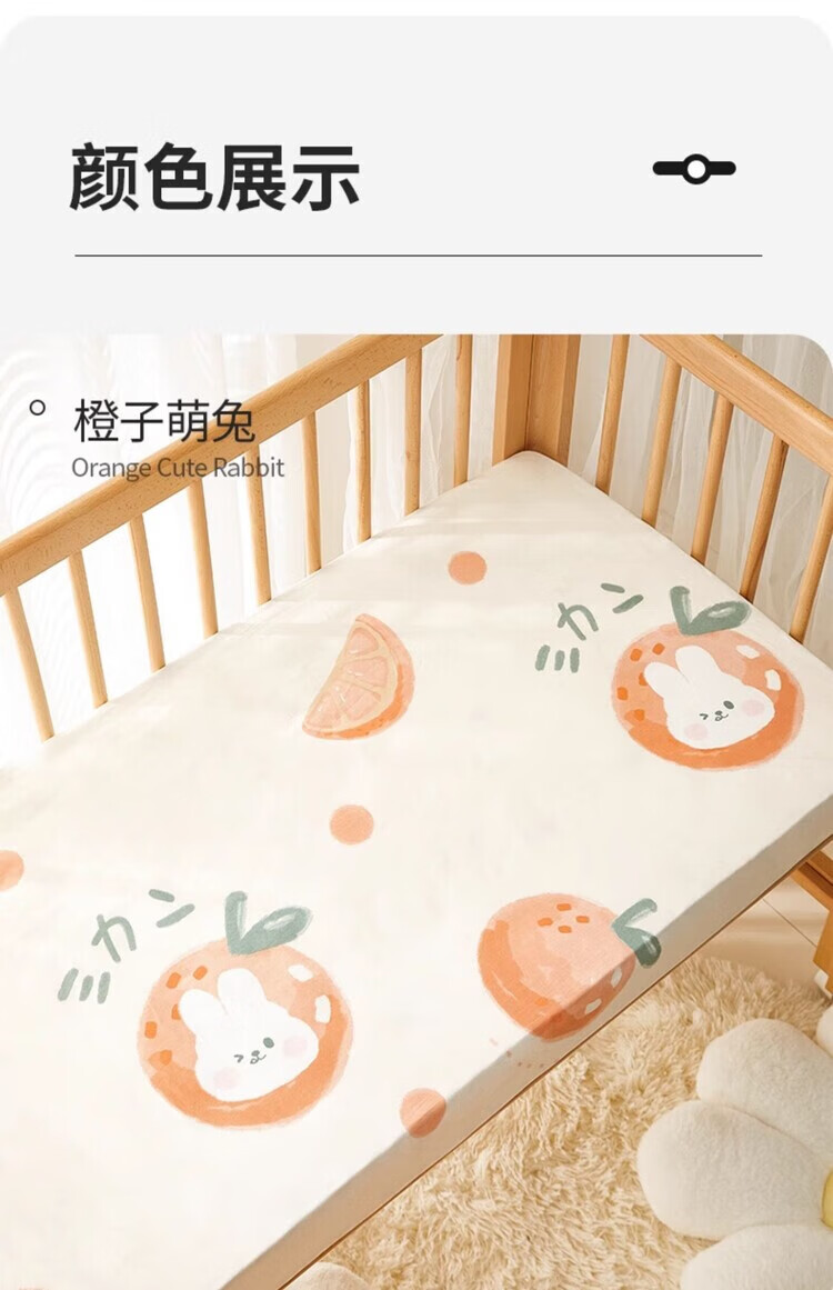 Li Mengsi crib fitted sheet children's spliced bed pure cotton type A baby bedding mattress cover customized orange cute rabbit (type A quality, skin-friendly and breathable, comfortable sleep in all seasons) 70*200