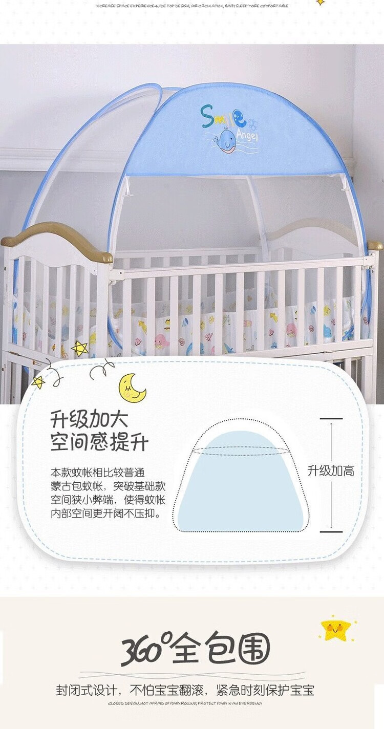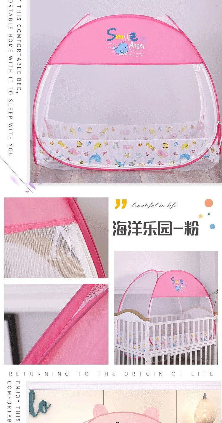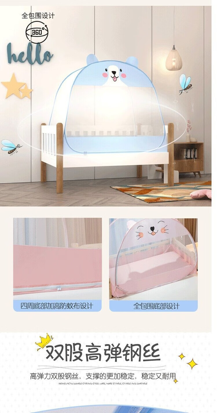 Honghe Children's Crib Mosquito Net Mongolian Yurt Full Cover Universal BB Bed Baby Kindergarten Mosquito Net Free of Installation Foldable Kitten Single Door Encrypted Full Bottom Pink Length 165* Width 85* Height 110cm