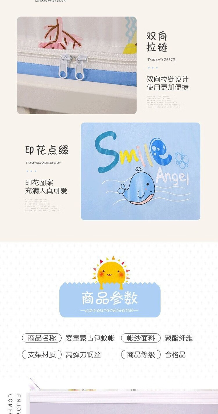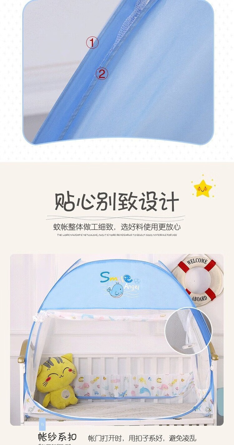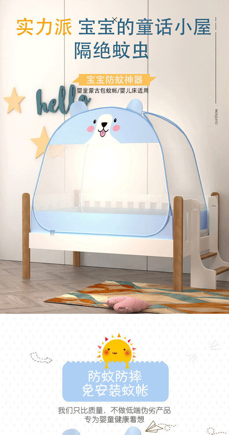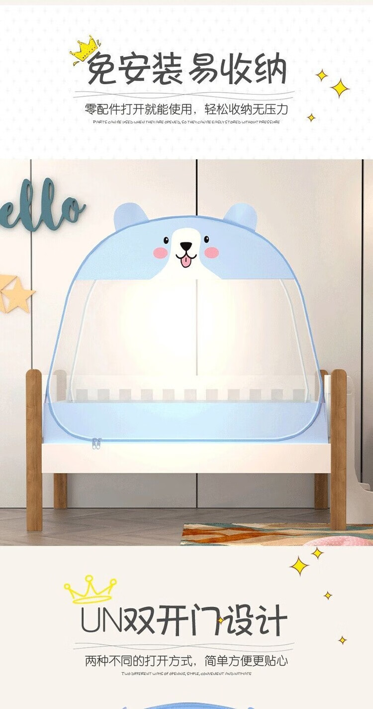 Honghe Children's Crib Mosquito Net Mongolian Yurt Full Cover Universal BB Bed Baby Kindergarten Mosquito Net Free of Installation Foldable Kitten Single Door Encrypted Full Bottom Pink Length 165* Width 85* Height 110cm