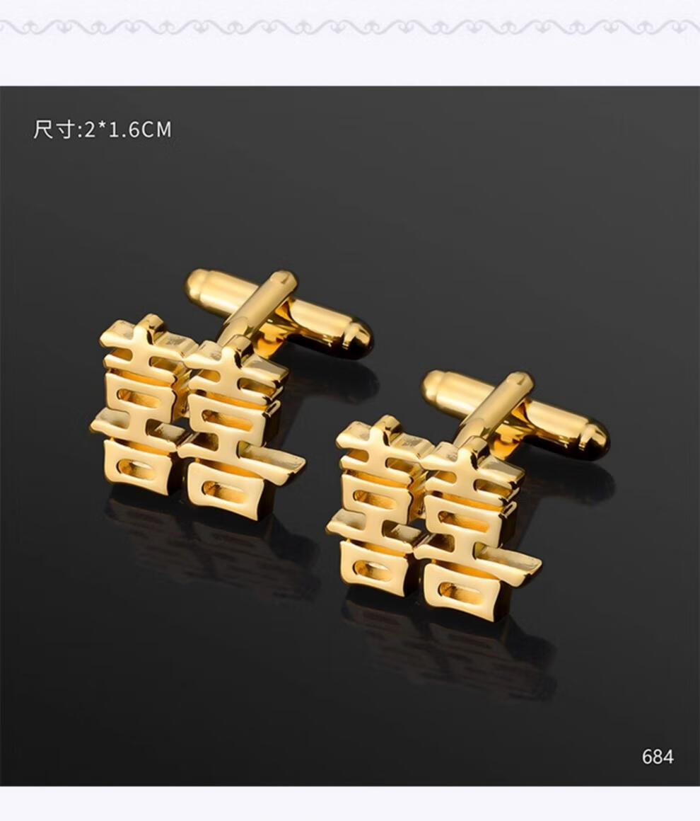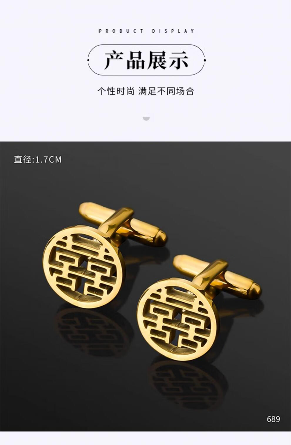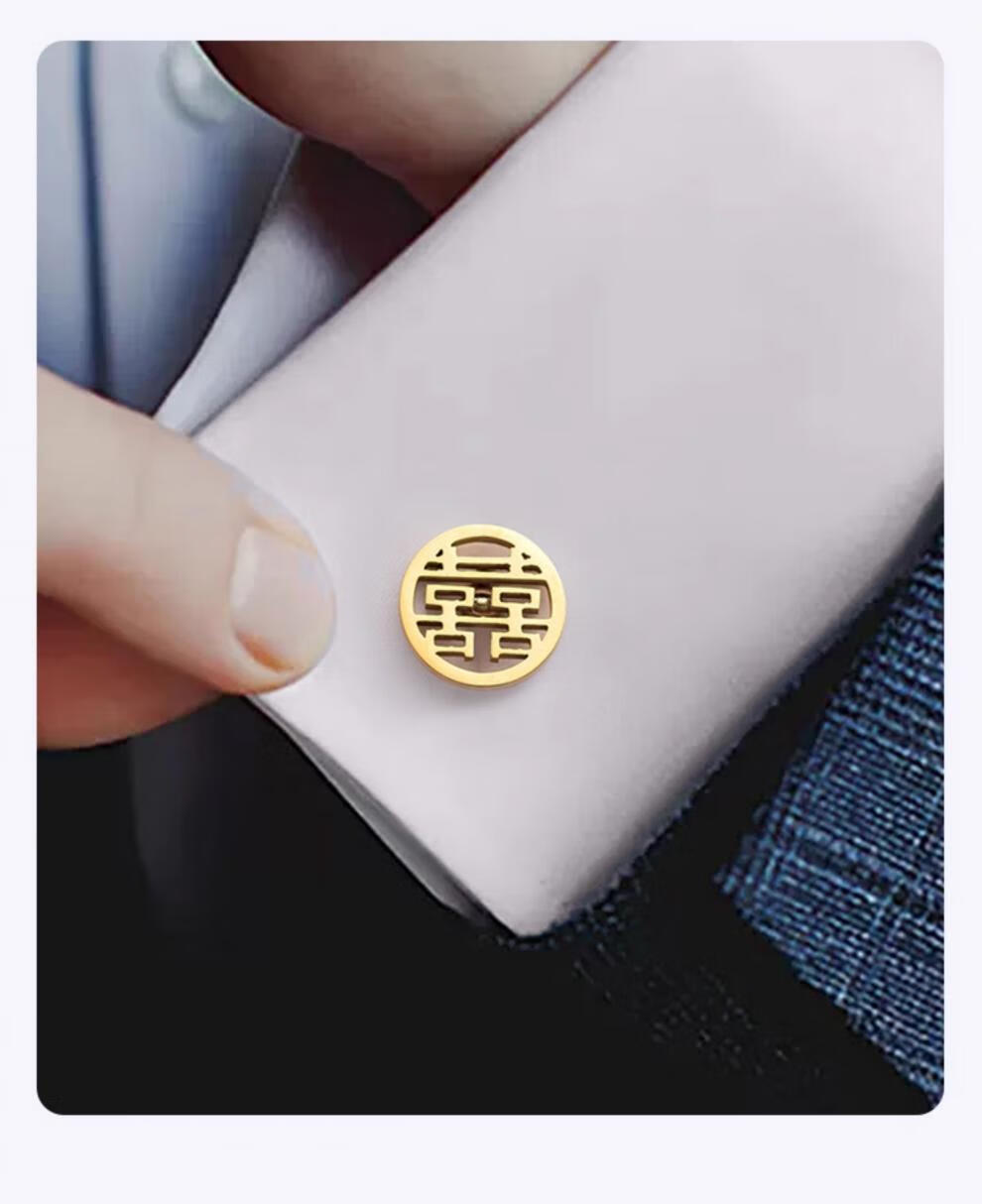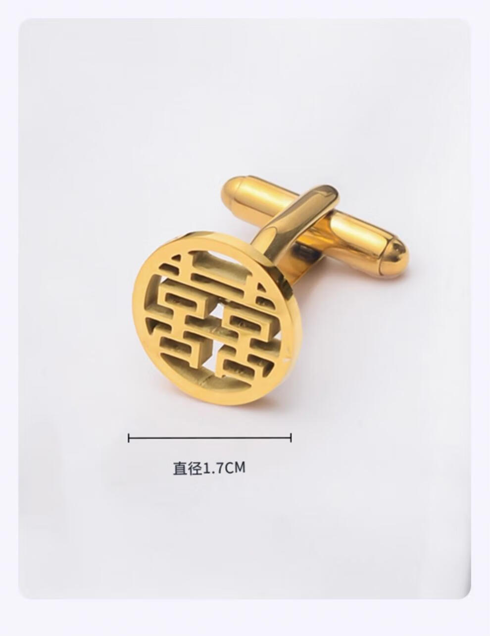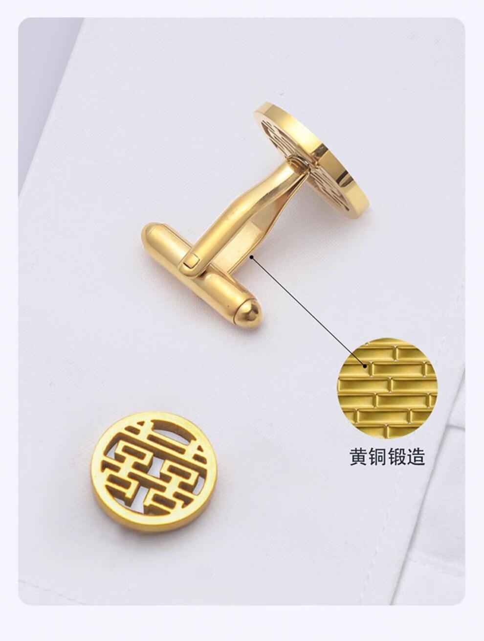 Pierre Cardin (Pierre Cardin) French imported quality gold hollow happy word cufflinks men's wedding groom French shirt cuff button shirt gold round happy word cufflinks