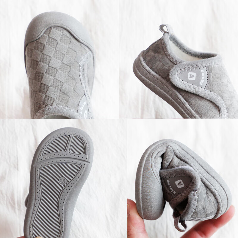 Bakerby Boys' Cotton Shoes Bags and Baby Floor Shoes Children's Cotton Shoes Girls' Slippers Indoor Household Shoes Children's Cotton Shoes Winter Off-white Size 27 Shoes Inner Length About 17 Centimeters