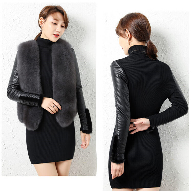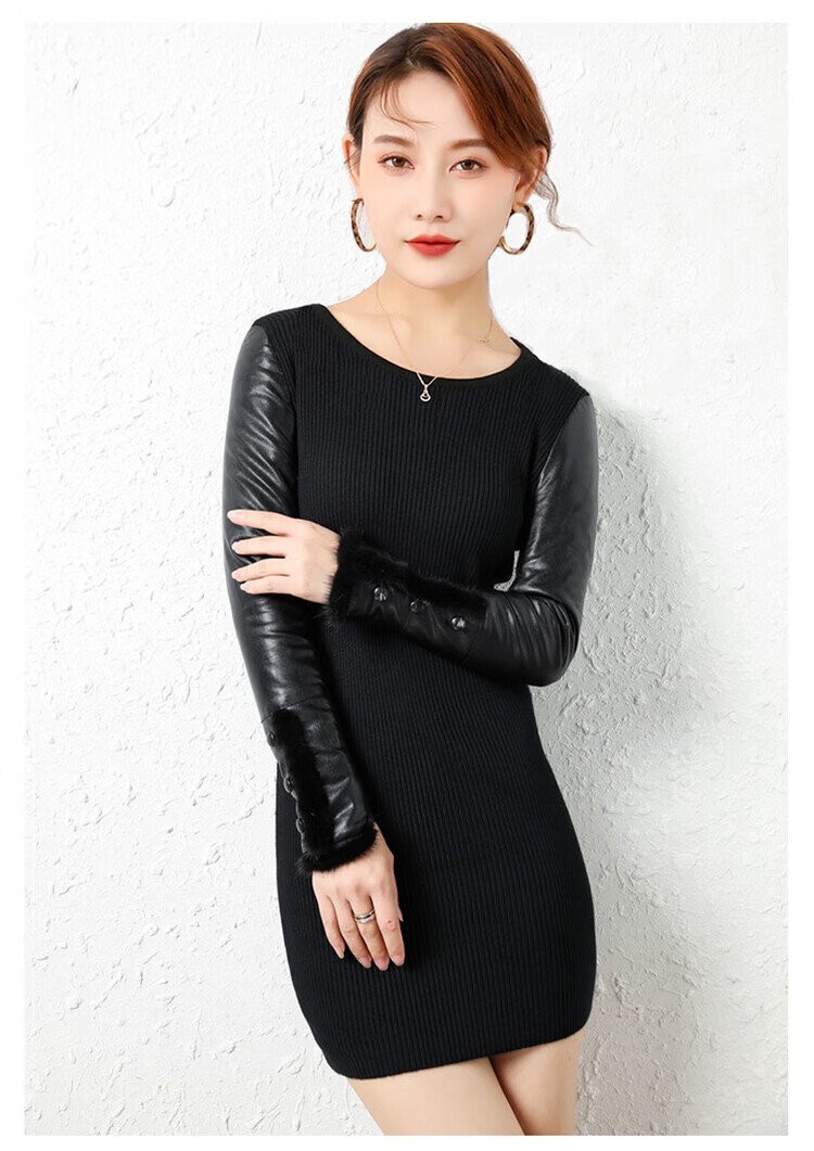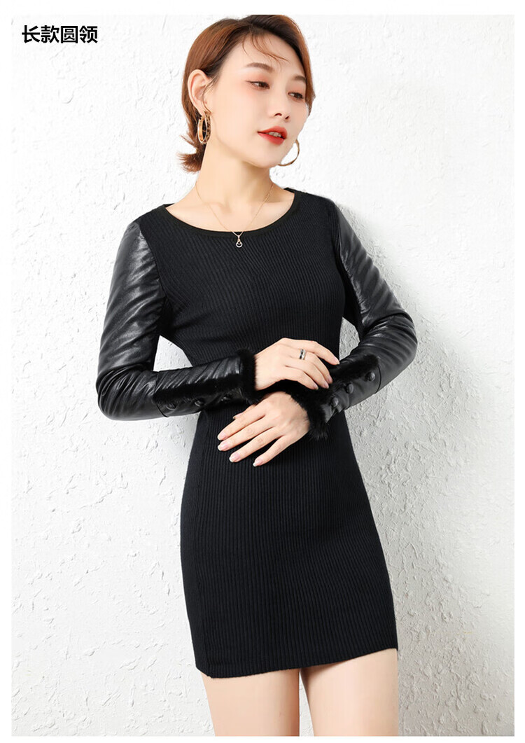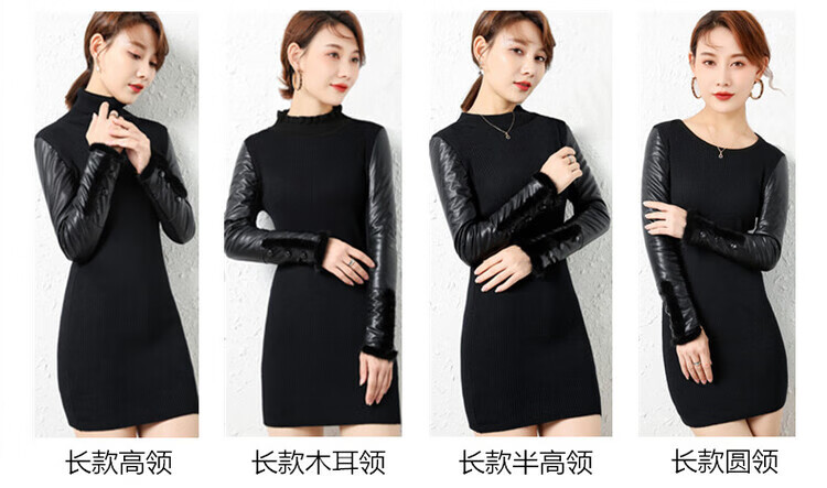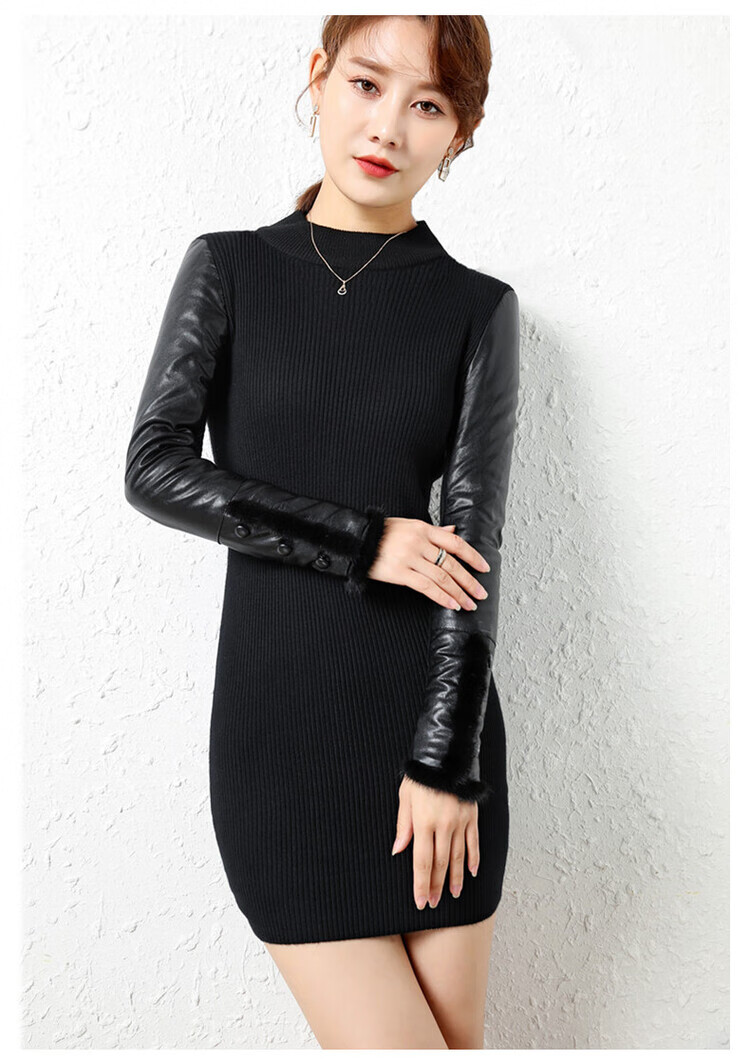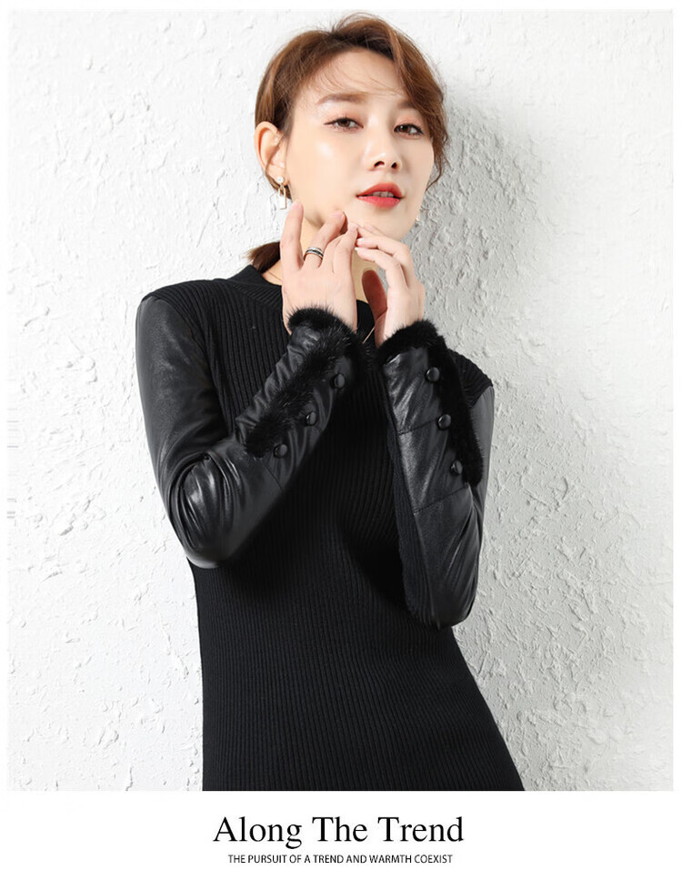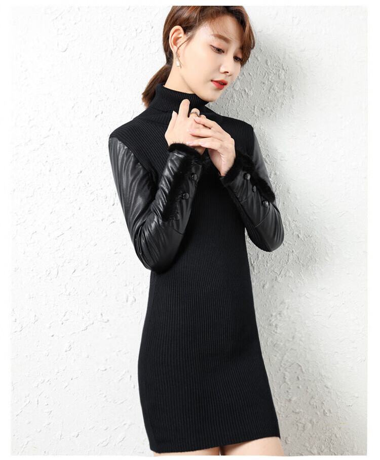 CARSEMKEITN Leather Sleeve Bottoming Shirt Women's Winter Slim Fit Plus Velvet Inner Knitted Sweater with Fur Down Cotton Sleeves Versatile Thickened Sweater Short Turtle Collar Velvet Sleeves S Recommended 80-95 Jin Jin equals 0.5 kg