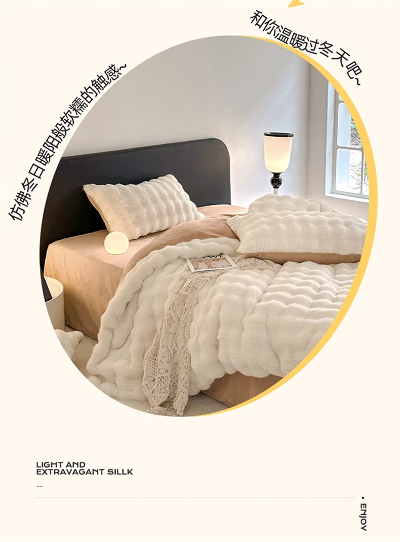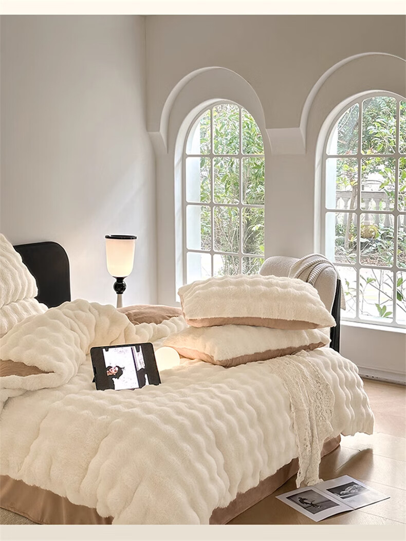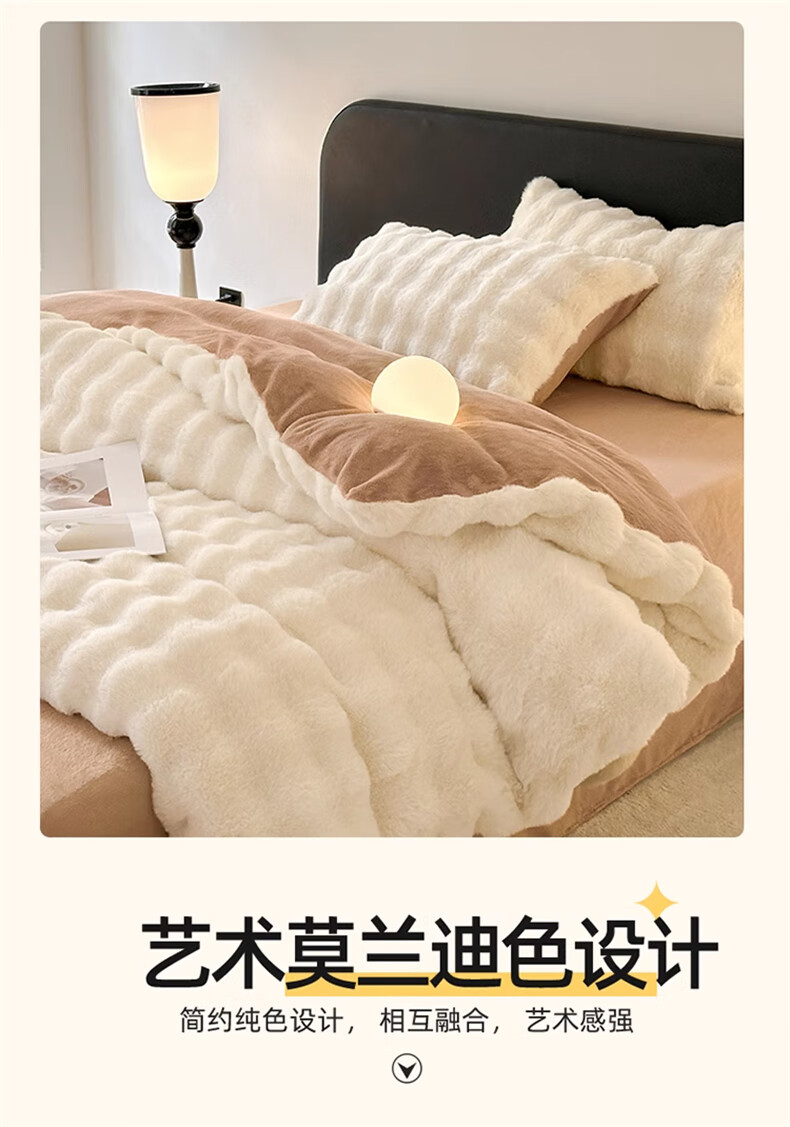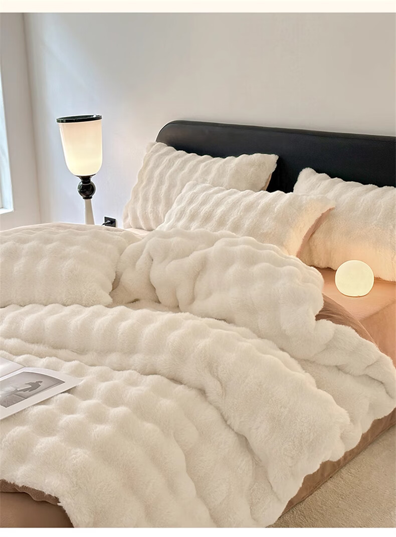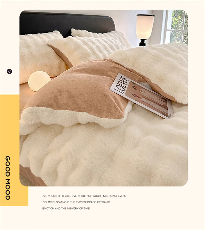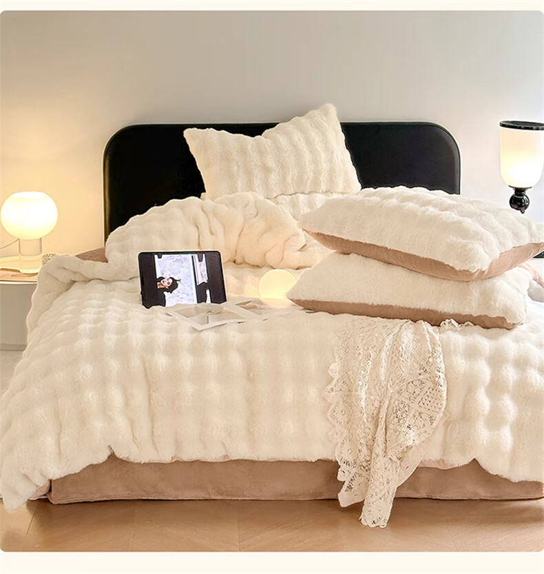 Lady Laura Fuana winter rabbit plush four-piece set thickened double-sided velvet bed sheet quilt cover home fitted sheet quilt cover warm bed light luxury-bean paste thickened warm fast heating sheet style 1.8m four-piece set-quilt cover 200*230cm