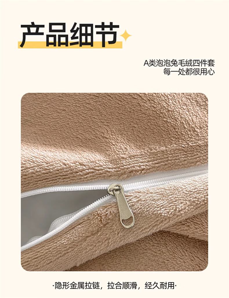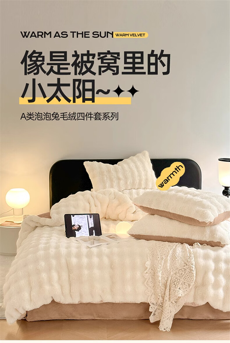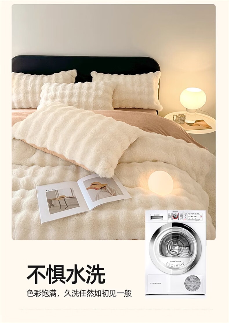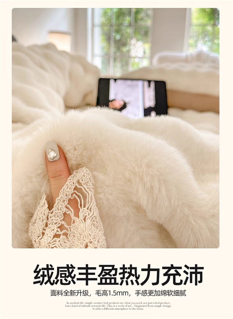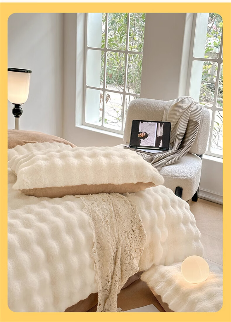 Lady Laura Fuana winter rabbit plush four-piece set thickened double-sided velvet bed sheet quilt cover home fitted sheet quilt cover warm bed light luxury-bean paste thickened warm fast heating sheet style 1.8m four-piece set-quilt cover 200*230cm