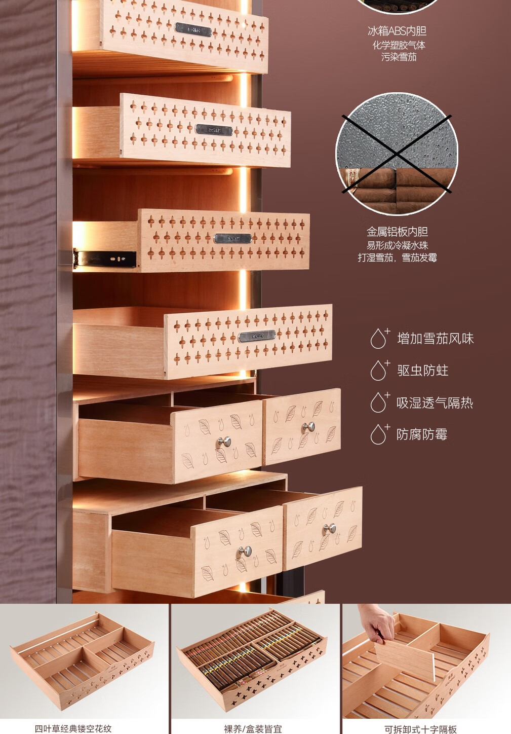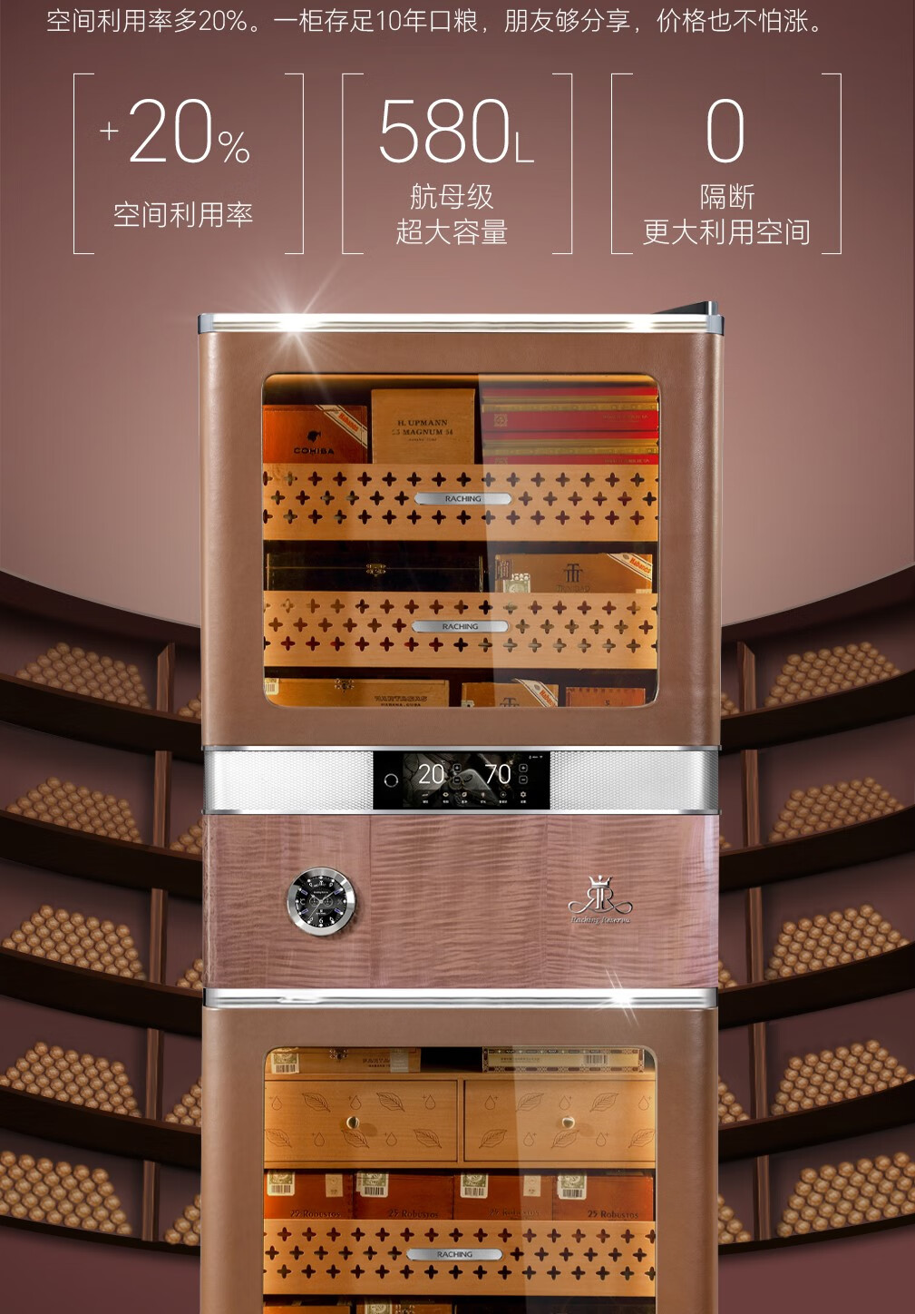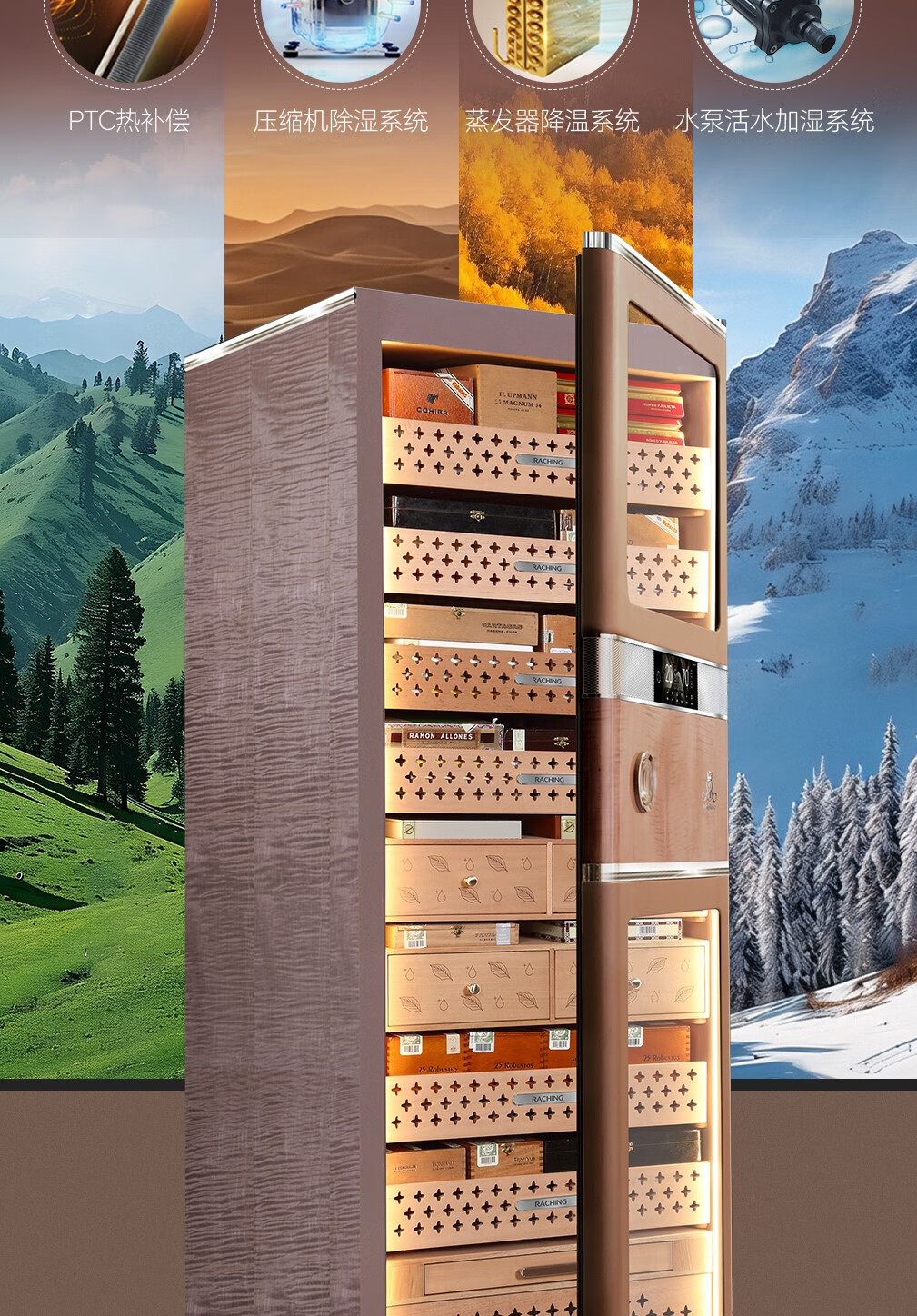 Pupan Cigar Cabinet RR980 Intelligent Horizontal Line Solid Wood Constant Temperature and Humidity Cigar Moisturizing Smoke Cabinet Sandia Red
