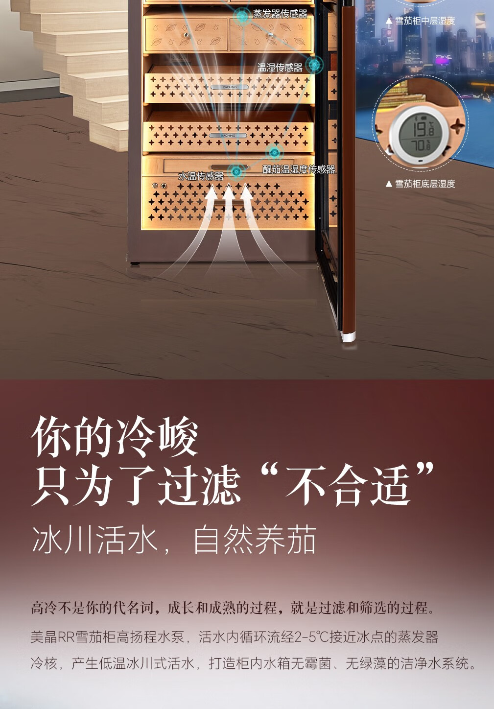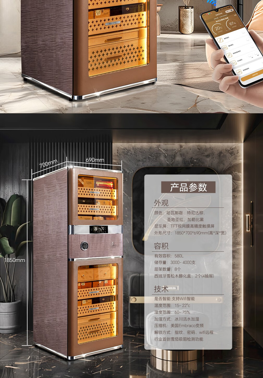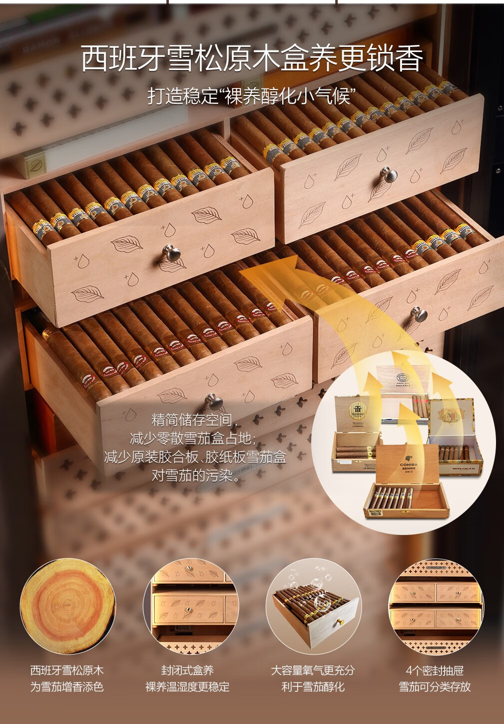 Pupan Cigar Cabinet RR980 Intelligent Horizontal Line Solid Wood Constant Temperature and Humidity Cigar Moisturizing Smoke Cabinet Sandia Red
