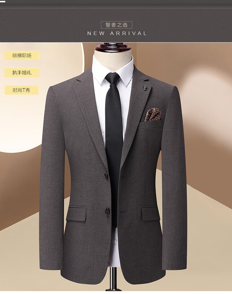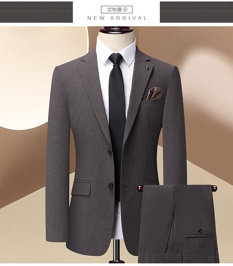 Hongdou Men's Fashion Versatile Casual Suit Suit 2025 Autumn New Business Professional Work Fit Jacket Brown L 175