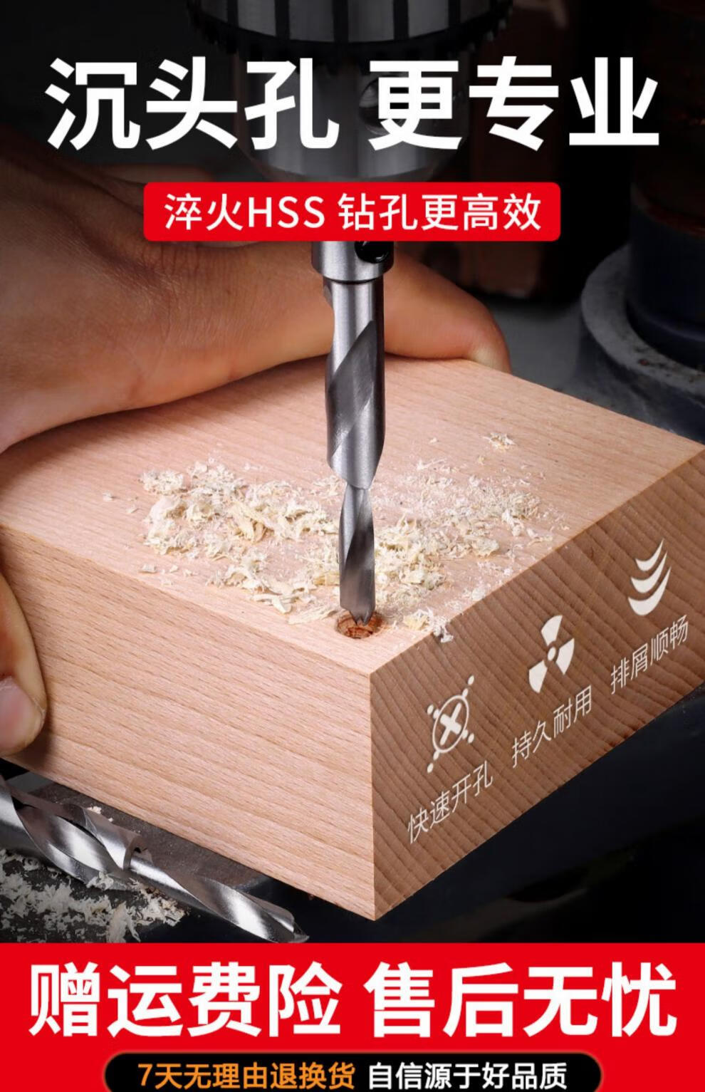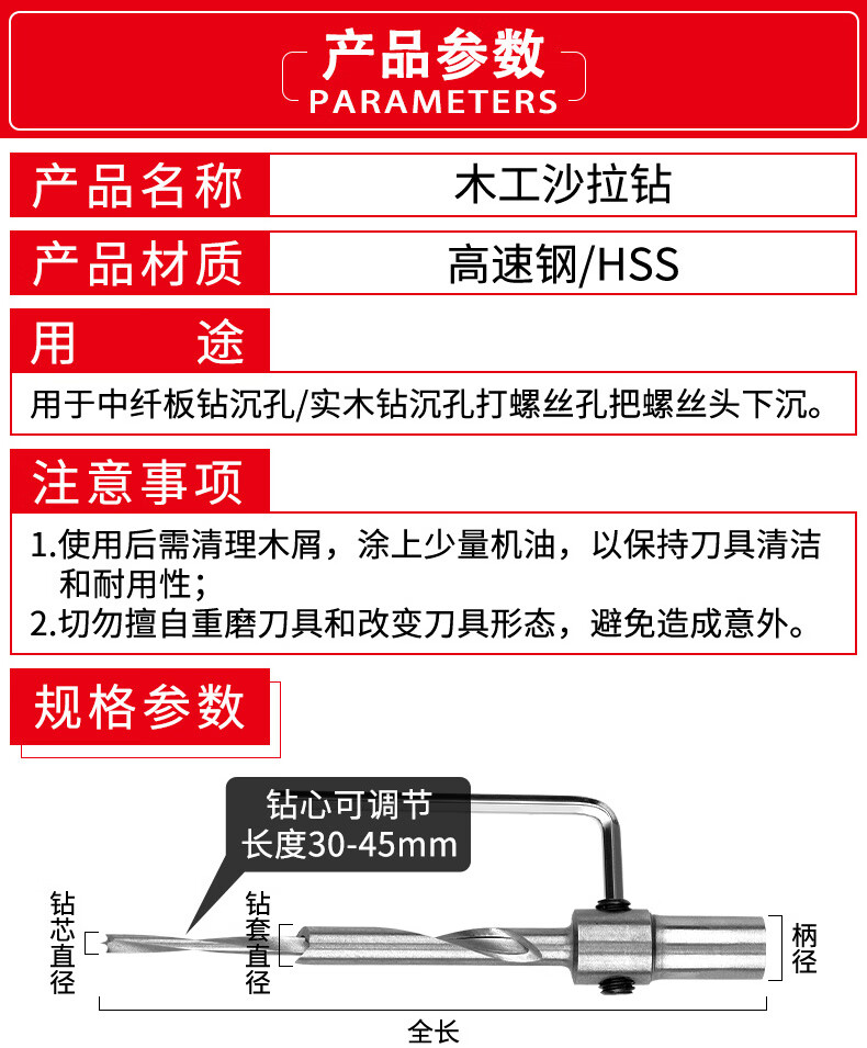 Matsuzaki woodworking salad drill two-in-one countersink drill bit two-level step step mother-in-law drill wood with countersunk head punching double hole drill core 10X16X100