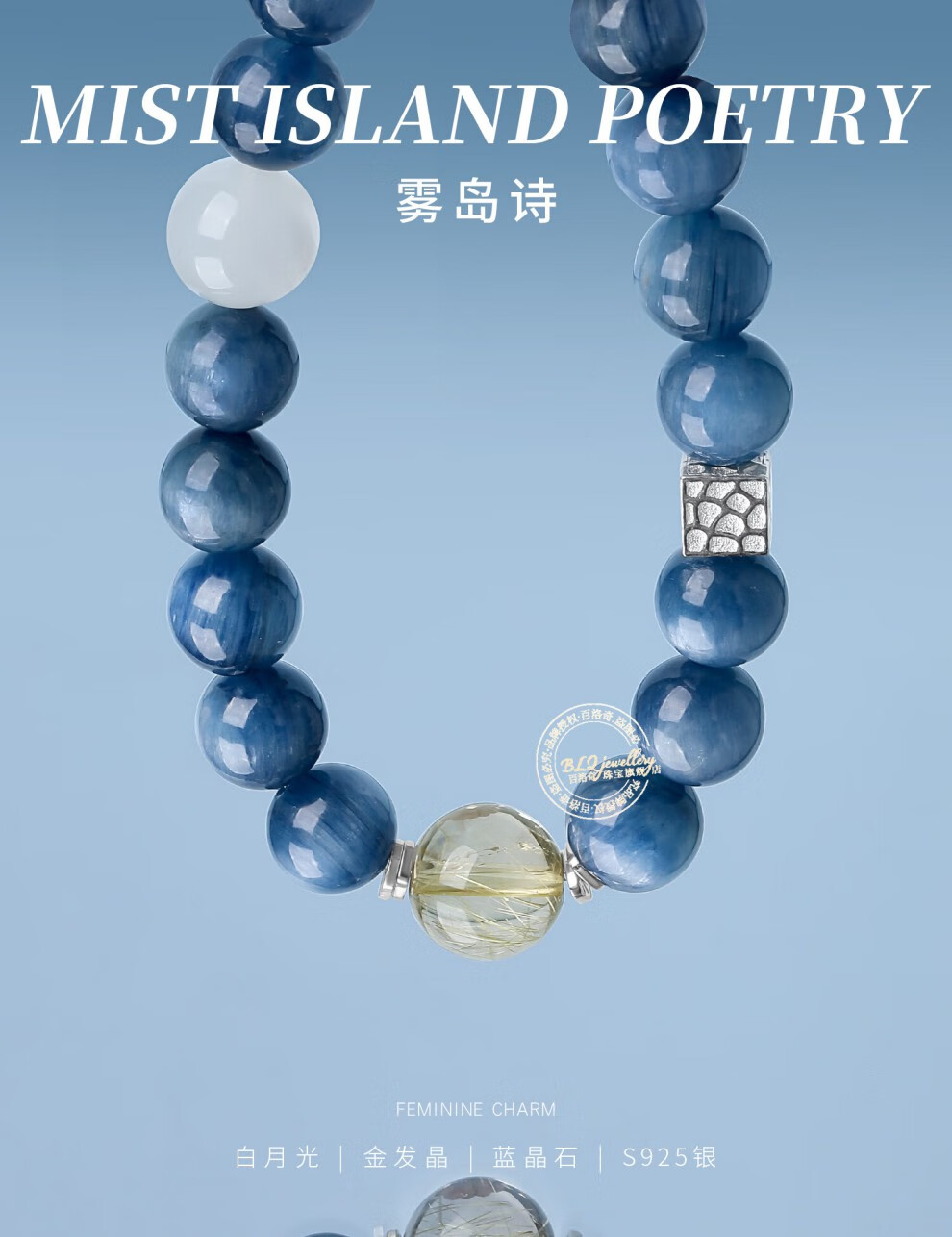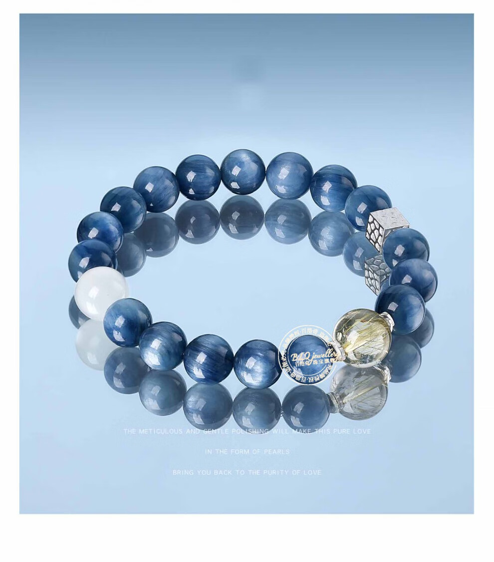 Matching Kyanite Bracelet Blonde Crystal White Moonstone Cat's Eye Bracelet for Women Beads 10mm
