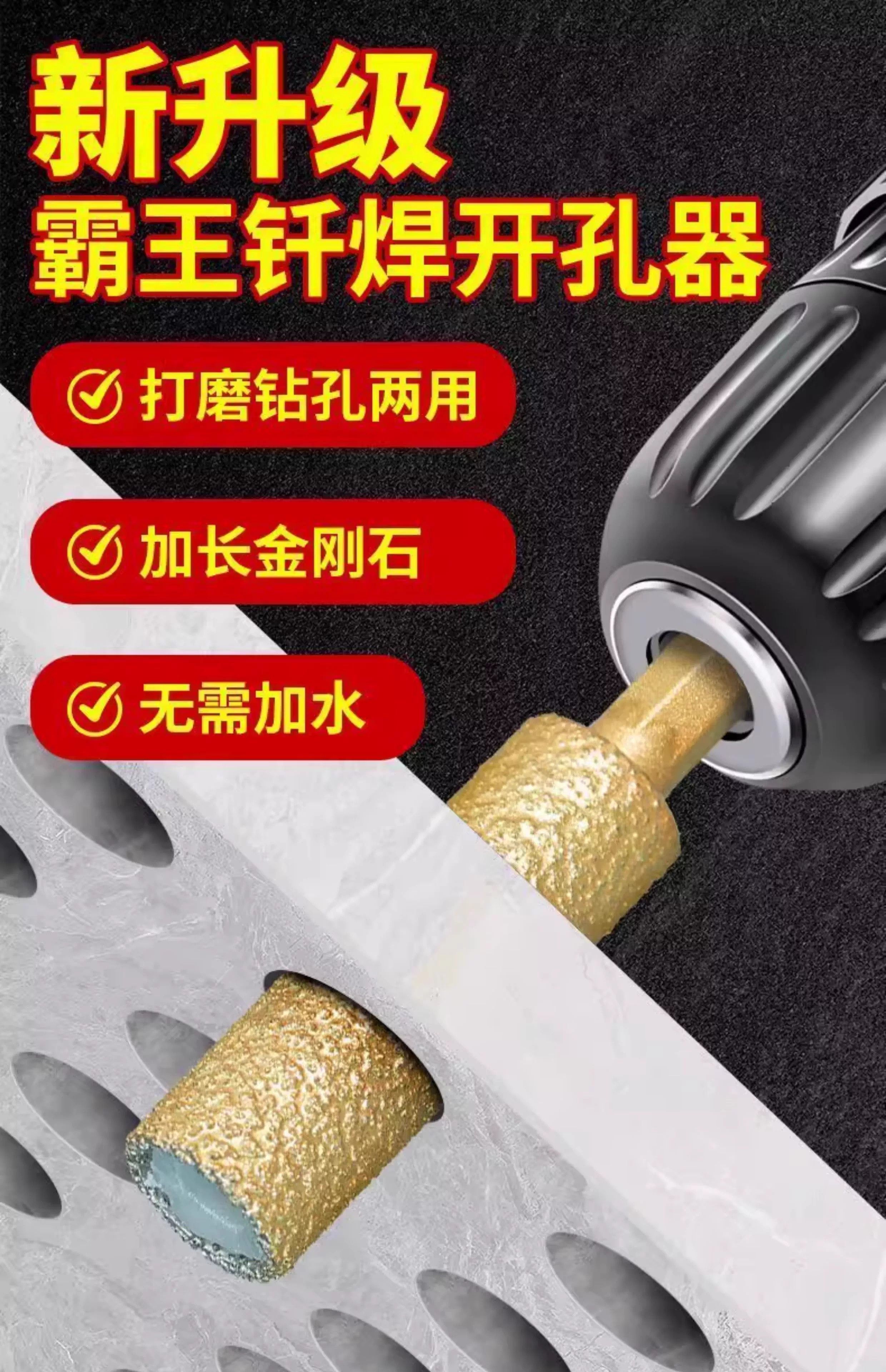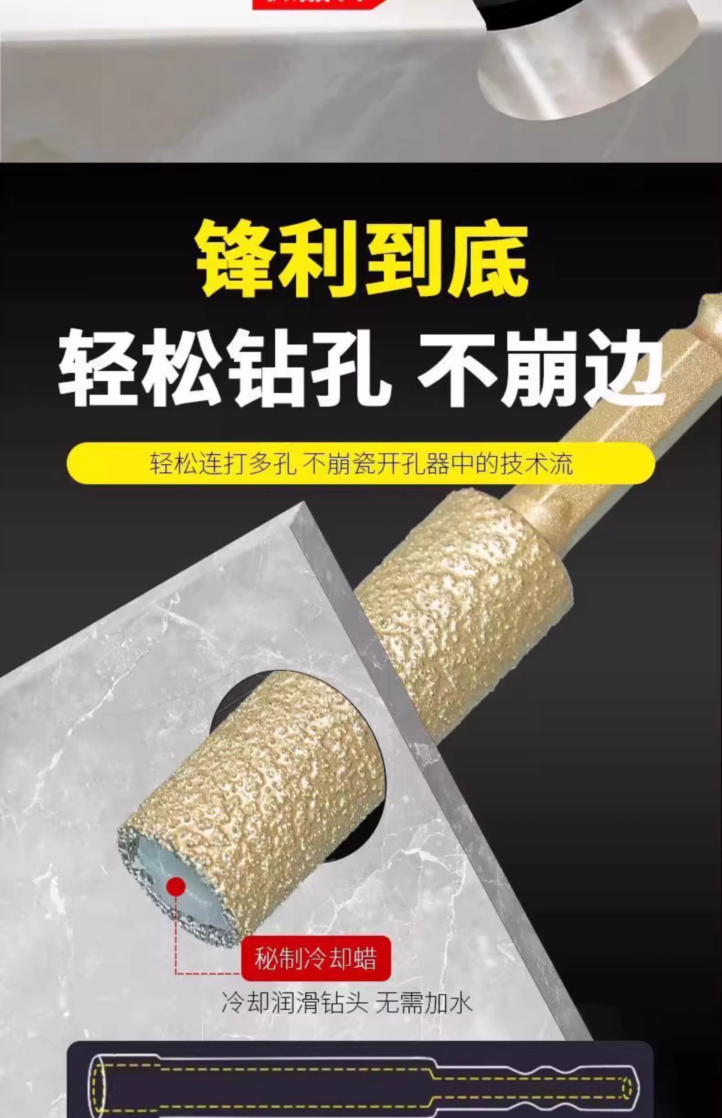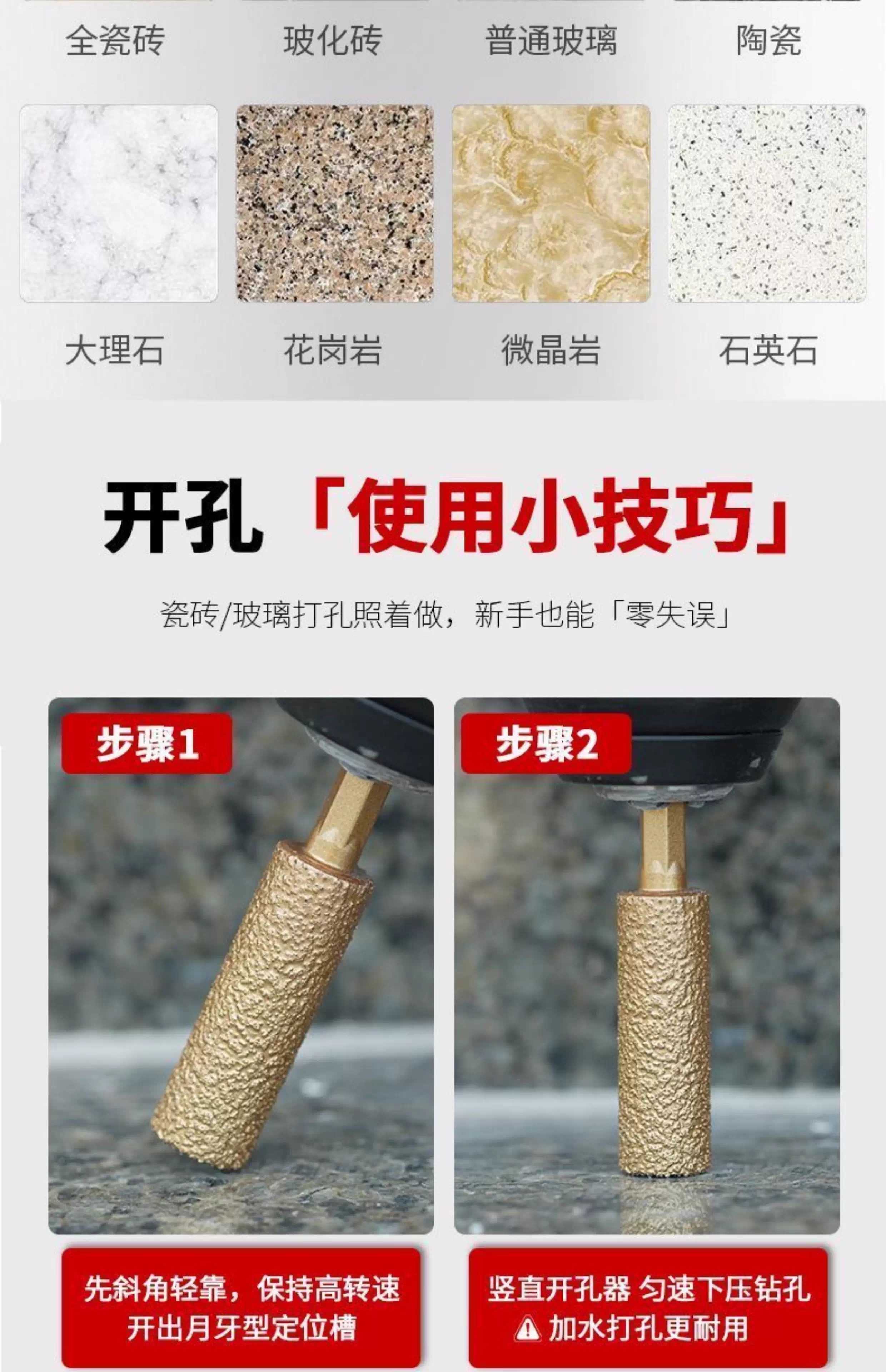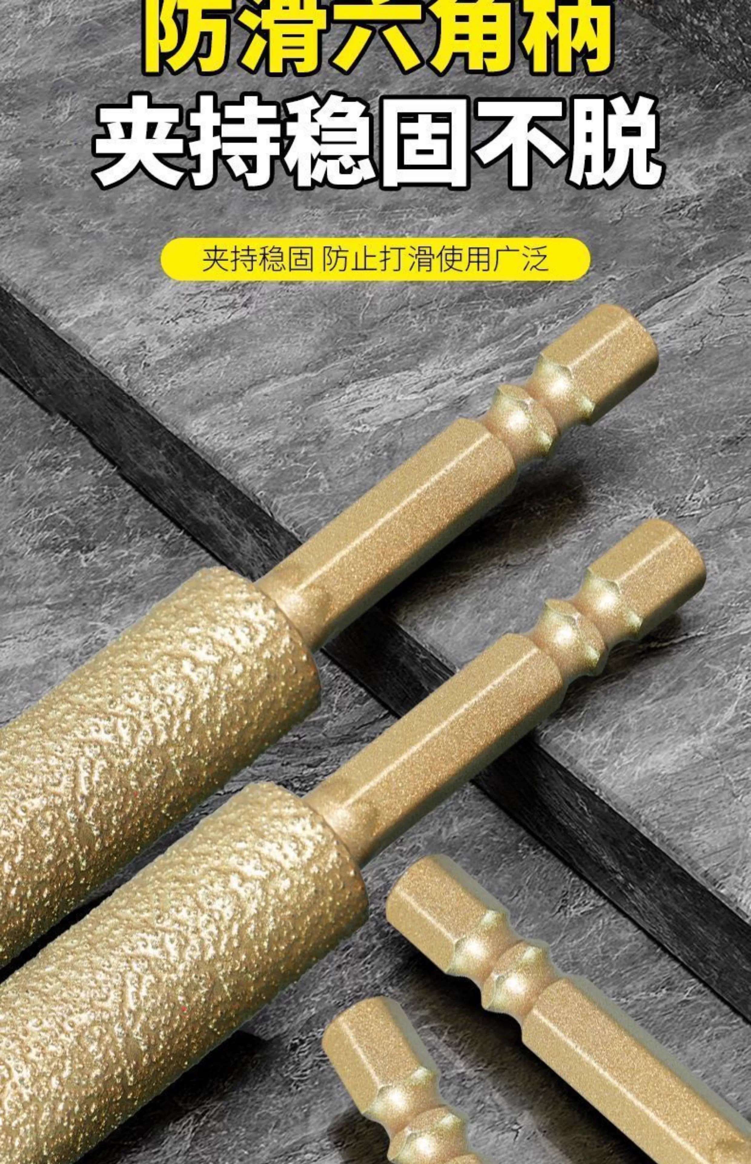 Emery hole opener for efficient grinding of ceramic tiles and marble, integrated hole opener for grinding and grinding, dry drilling, gold full sand-6mm 2 pcs