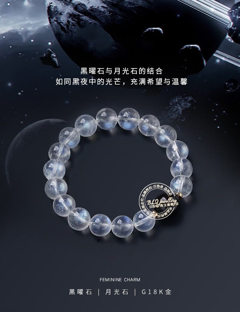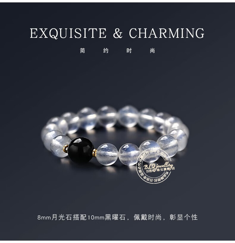 Pair with Sri Lanka 7A collection grade moonstone bracelet obsidian bracelet couple jewelry beads 12mm