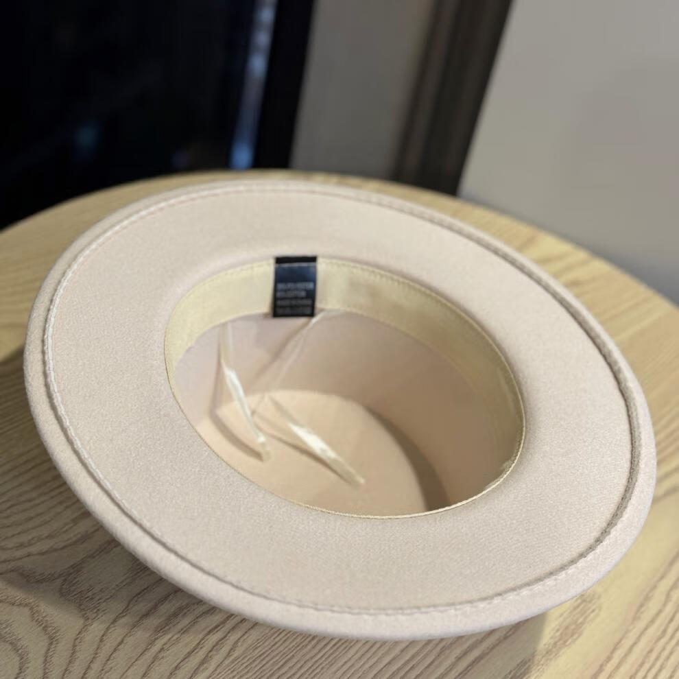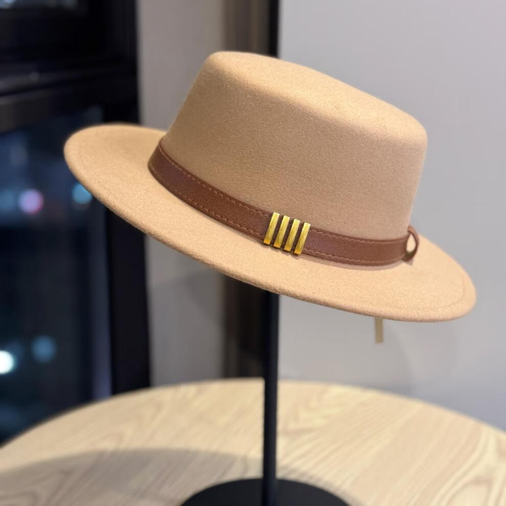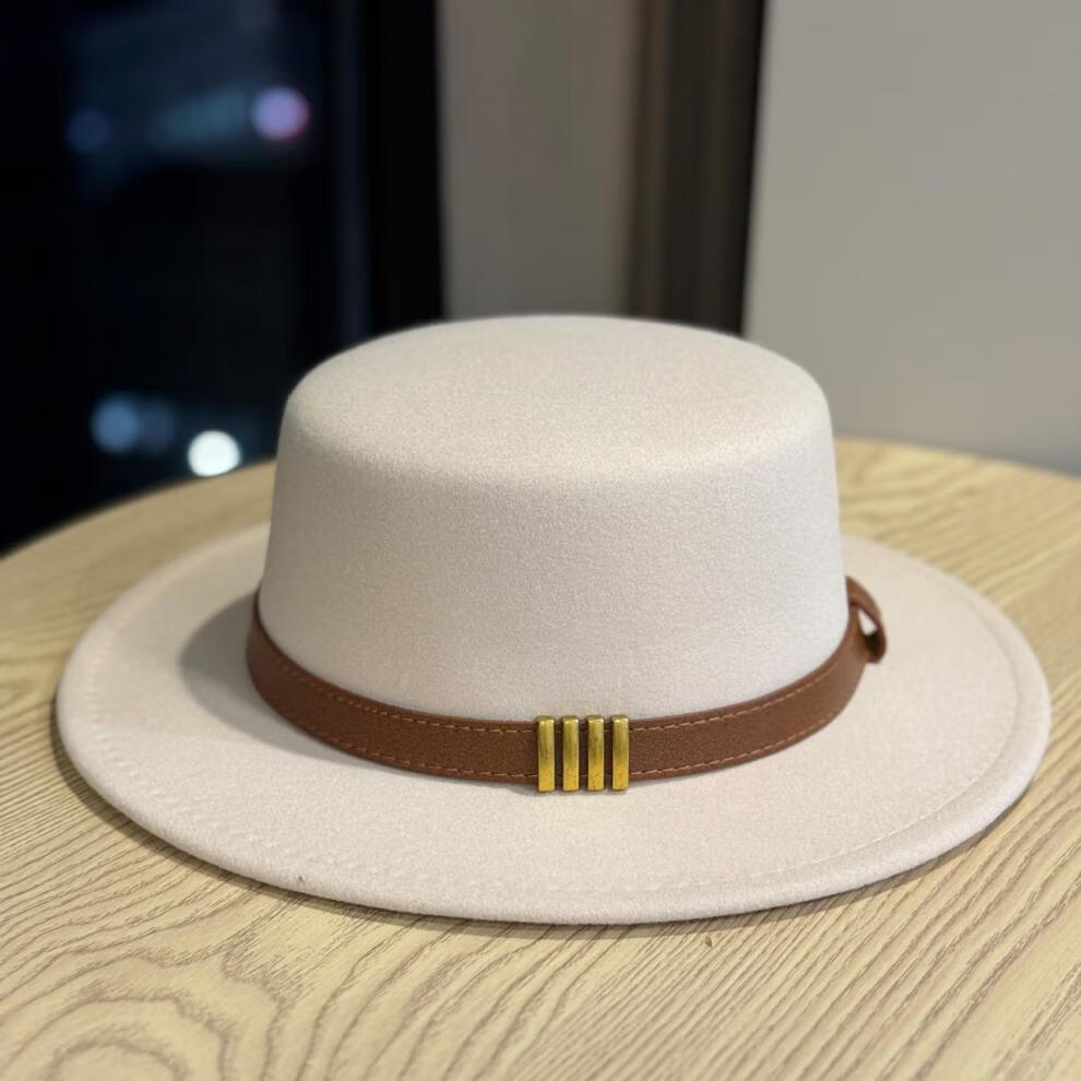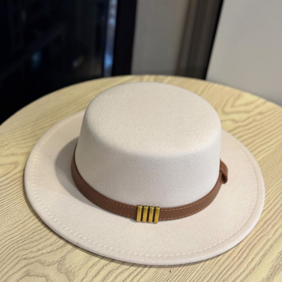Woodpecker Hepburn style French belt decorated woolen flat top hat female British socialite retro all-match jazz hat khaki color adult 54-60 adjustable
