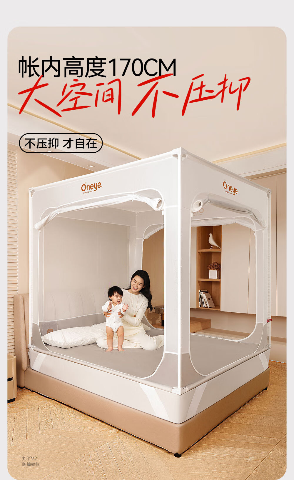 Maruya V2 Anti-fall Mosquito Net Baby Prevents Falling Out of Bed Children's Mosquito Net Home Bedroom 2025 New Full Bottom Free of Installation +60S Cotton Sheets*2V2 Anti-Fall Mosquito Net 2m*2 Points 2m