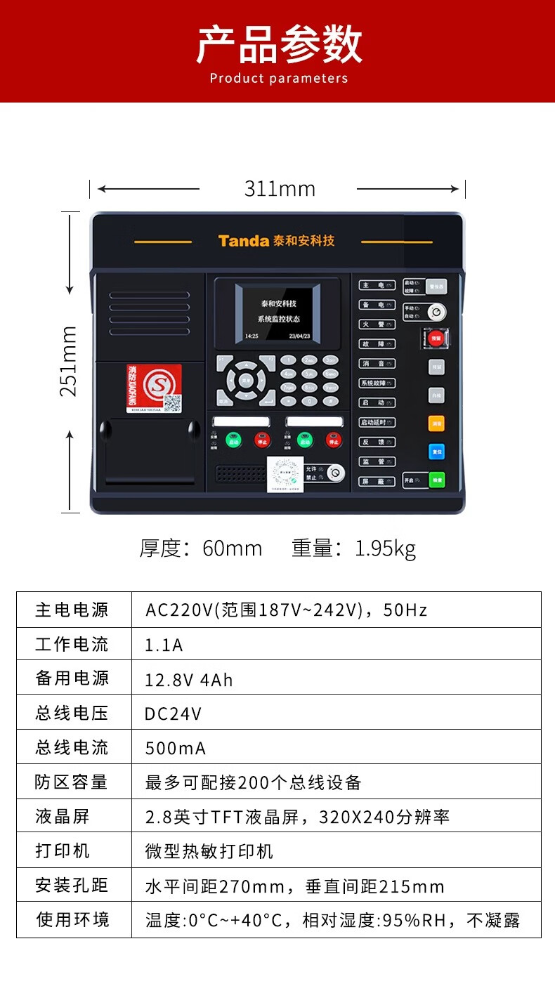Taihean fire alarm controller, fire alarm host, smoke detection linkage smoke alarm, 200-point fire alarm host