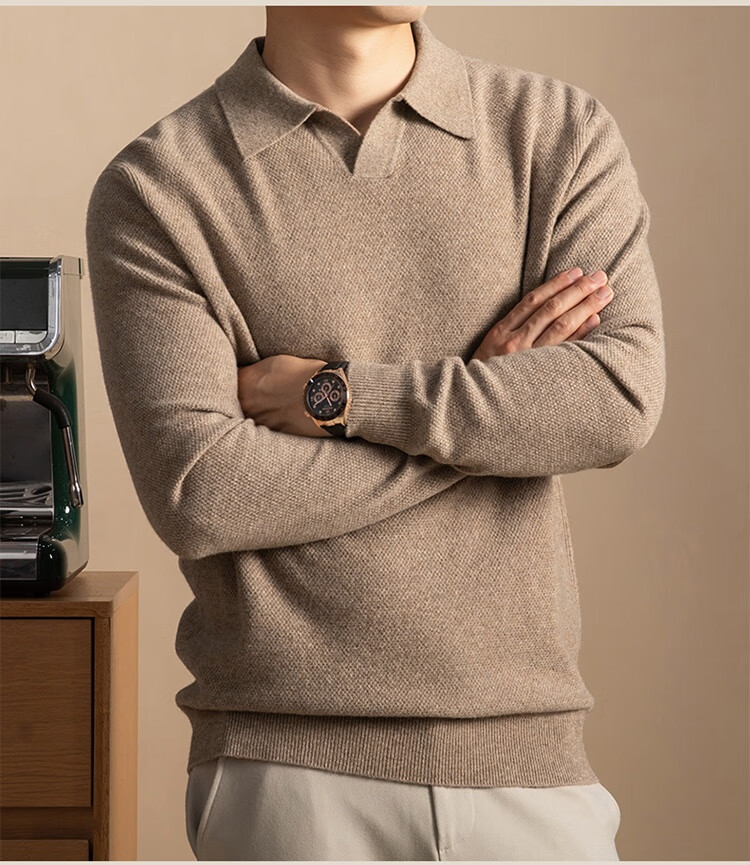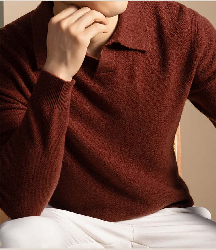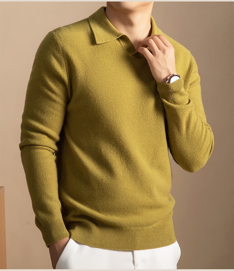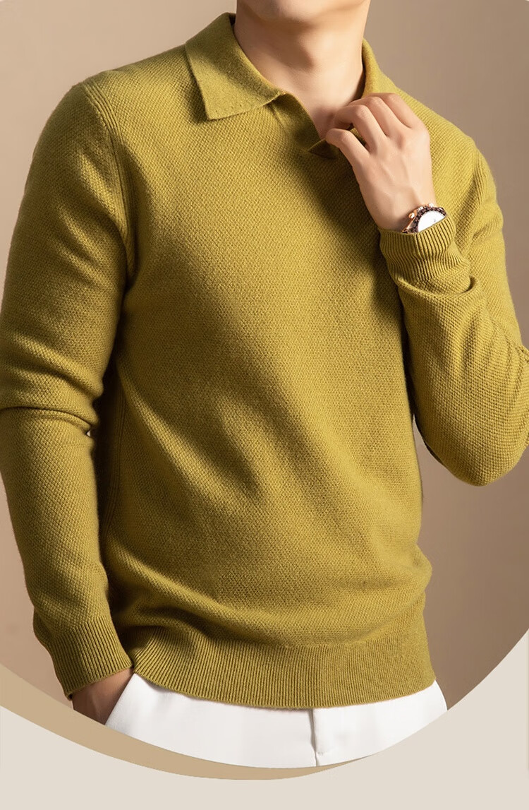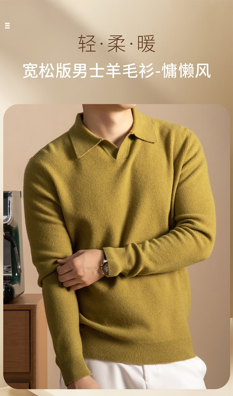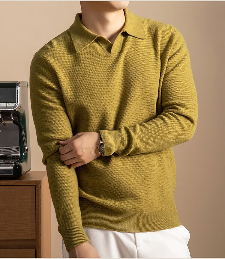 5%羊绒95%羊毛冬季加厚男式海鸥领羊毛衫5112 秋叶黄 L