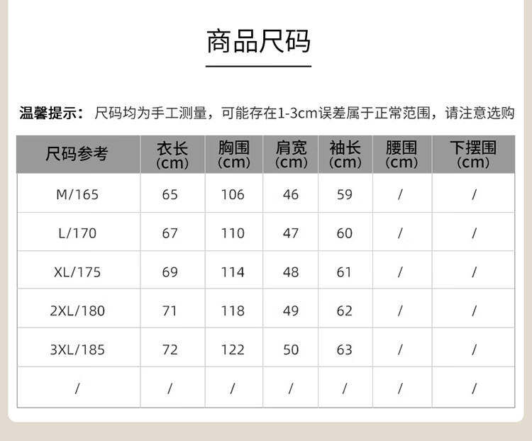 China (cm) 165 / 88-90 170 / 96-98 175 / 108-110 180 / 118-122 185 / 126-130