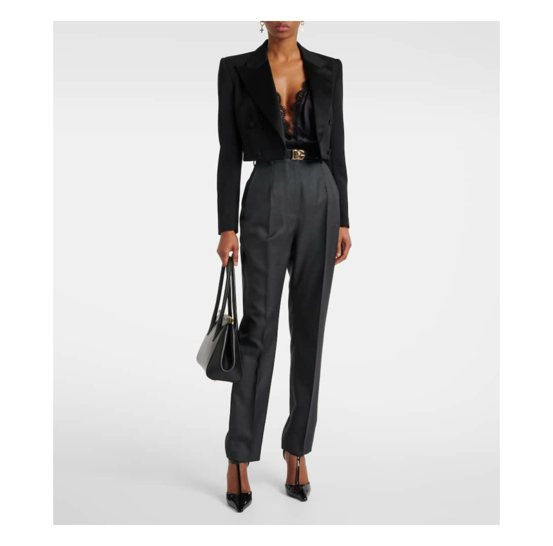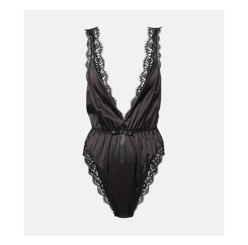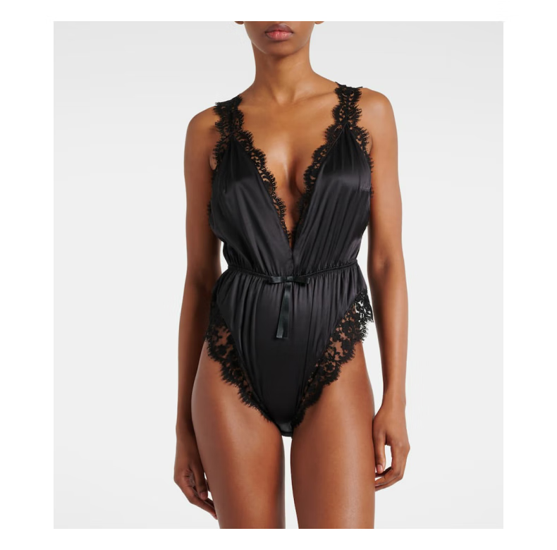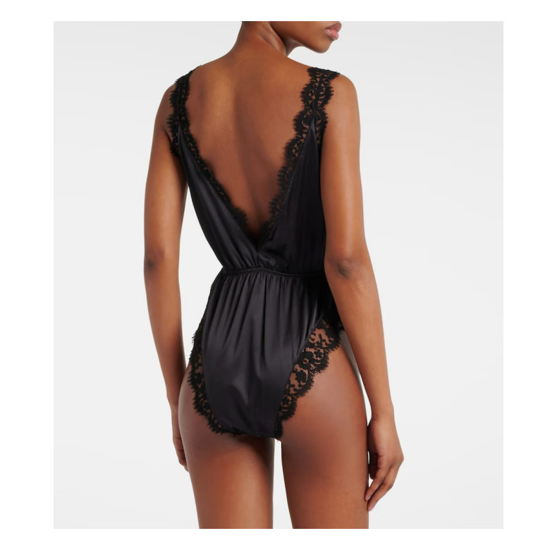 Dolce&Gabbana Women's Lace Trimmed Silk Blend Satin Bodysuit P00966396 Black M M