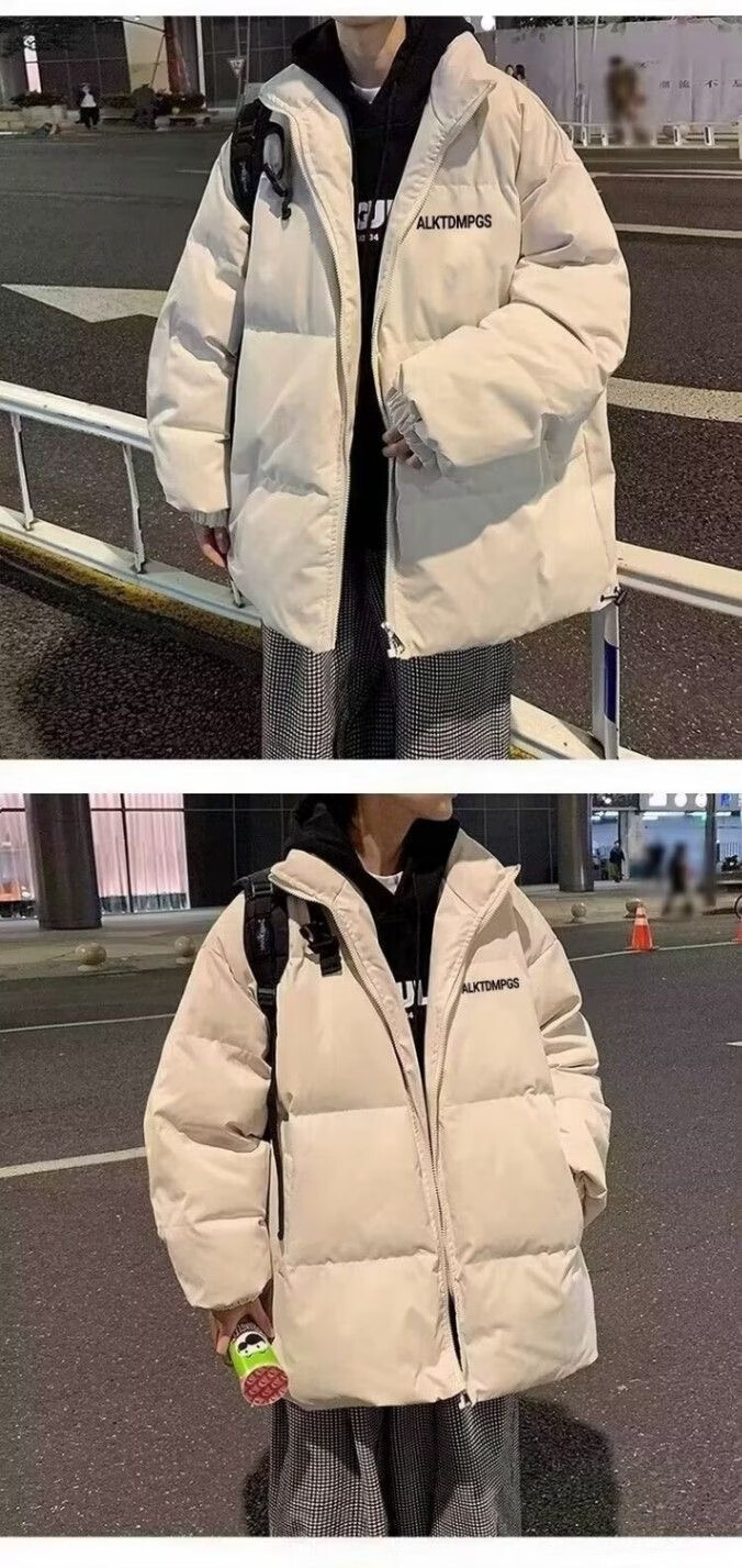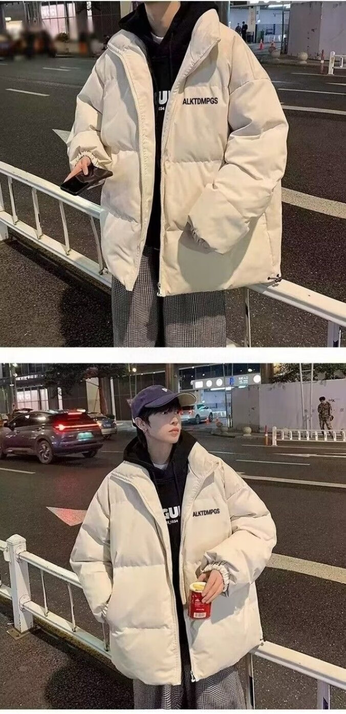 Huazhenmian (HUAZHENMIAN) cotton coat men's autumn and winter style trendy brand students loose thickened warm cotton coat boys bread cotton jacket wear cotton coat apricot + velvet sweatshirt black + pants black M