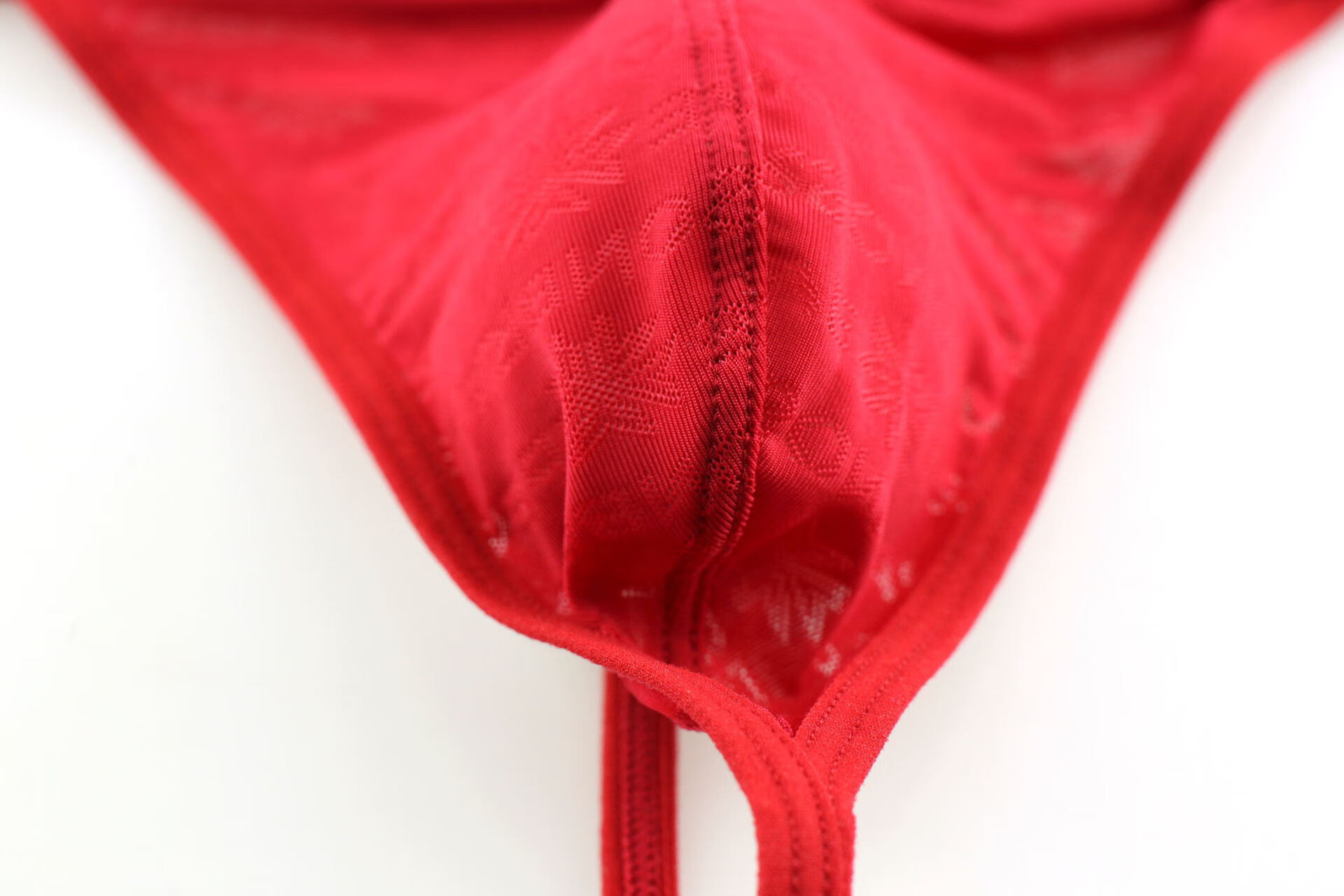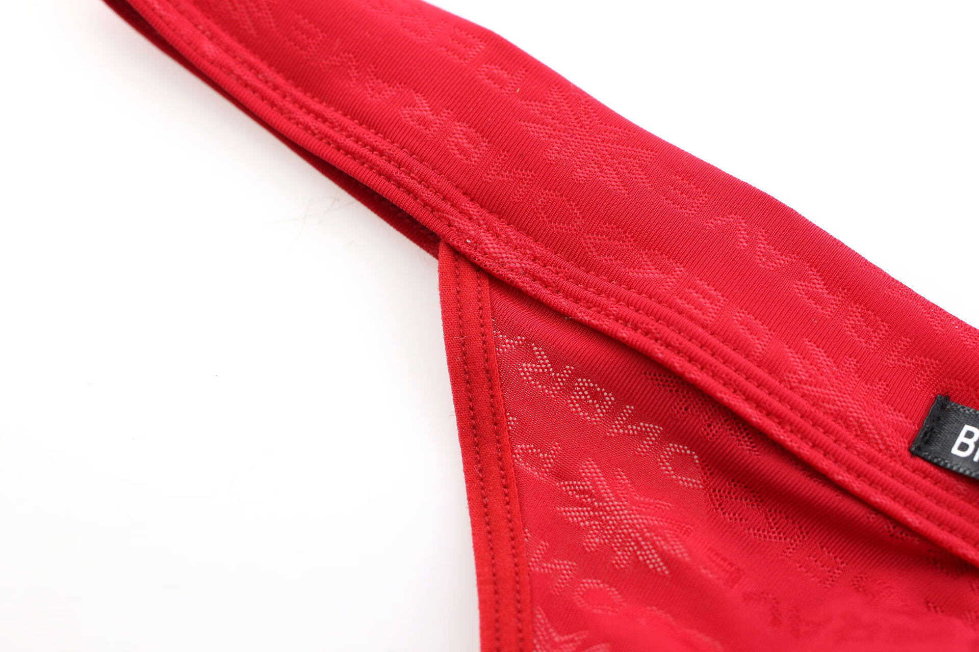 Men's underwear classic bag new thong mesh lace sexy men's thong t-pants buttocks naked feeling T-top red S