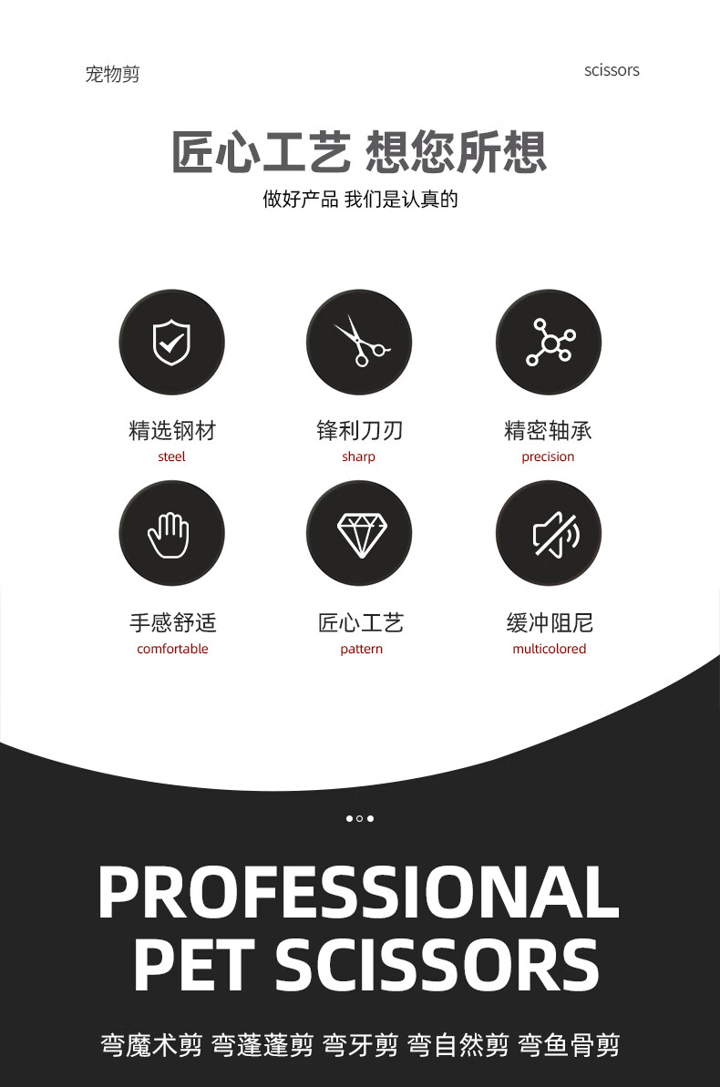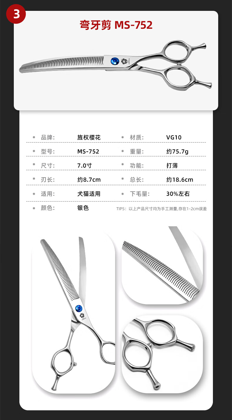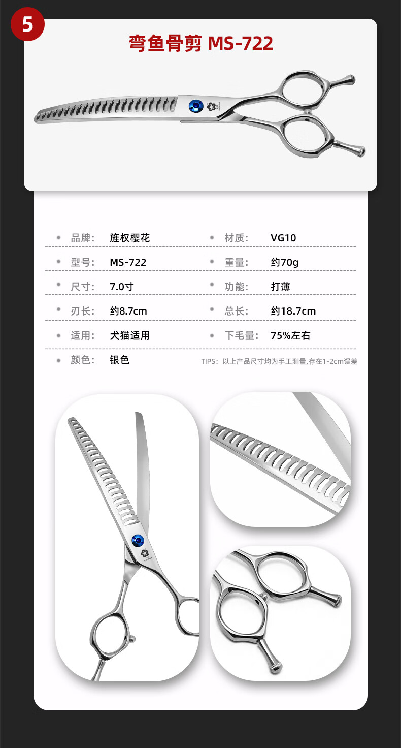 Jingquan Sakura Professional Pet Grooming Curved Scissors Fishbone/Natural/Magic Scissors for Fine Trimming and Thinning, 3D Traceless 7-inch Curved Magic Scissors for Beauticians MS-736