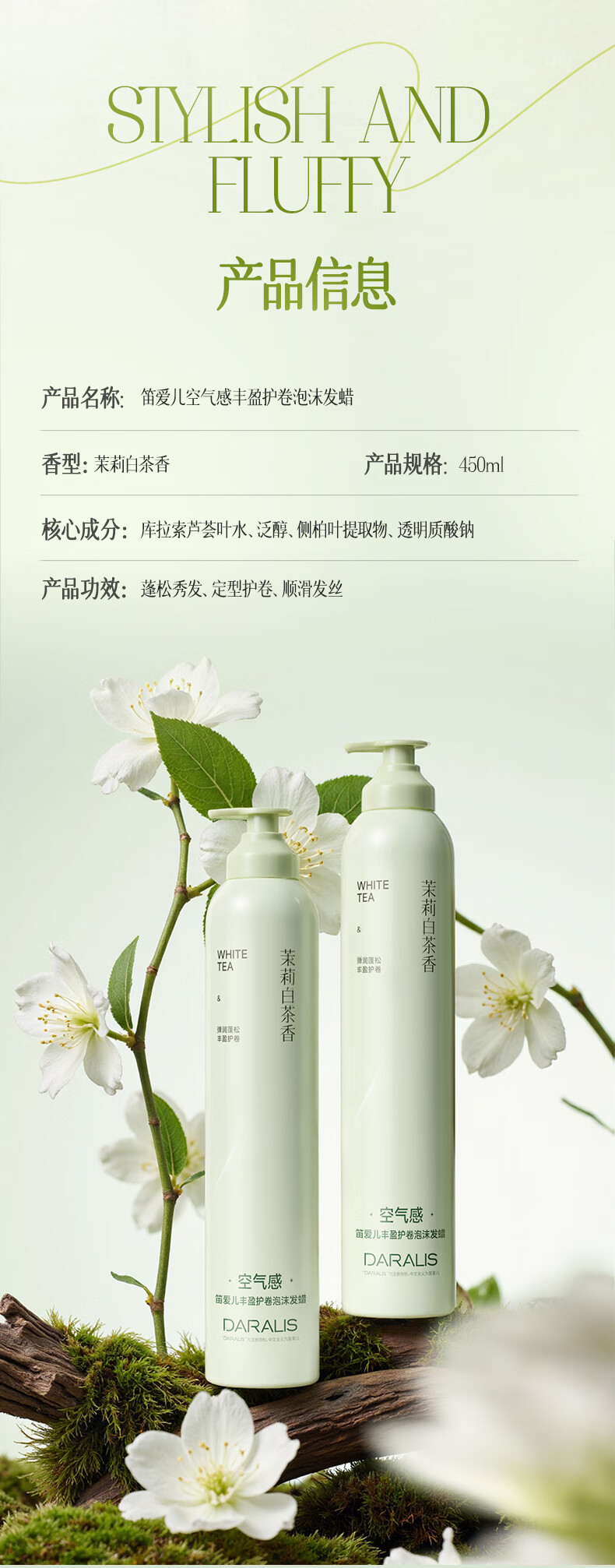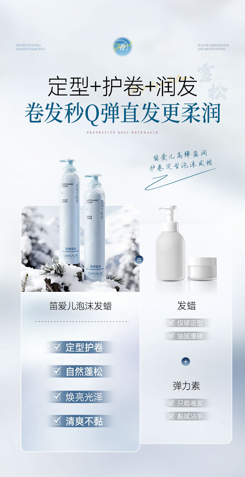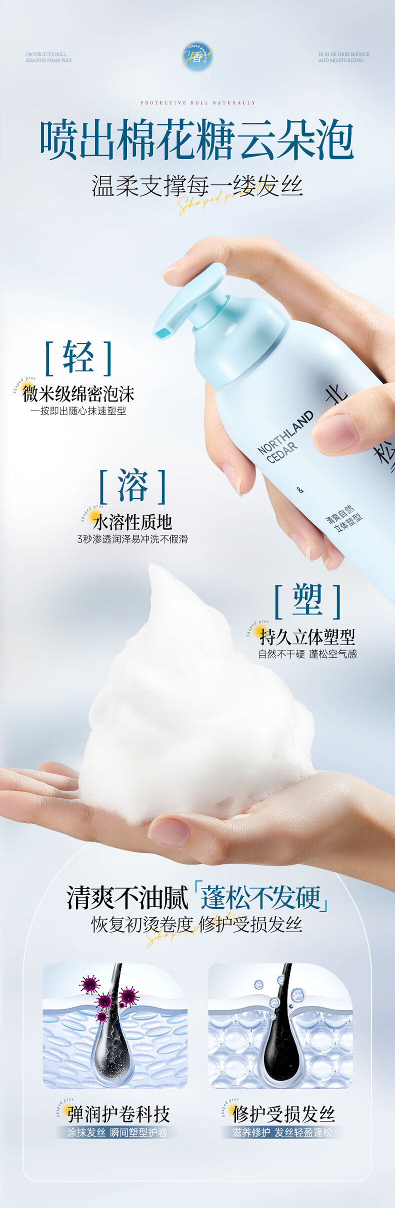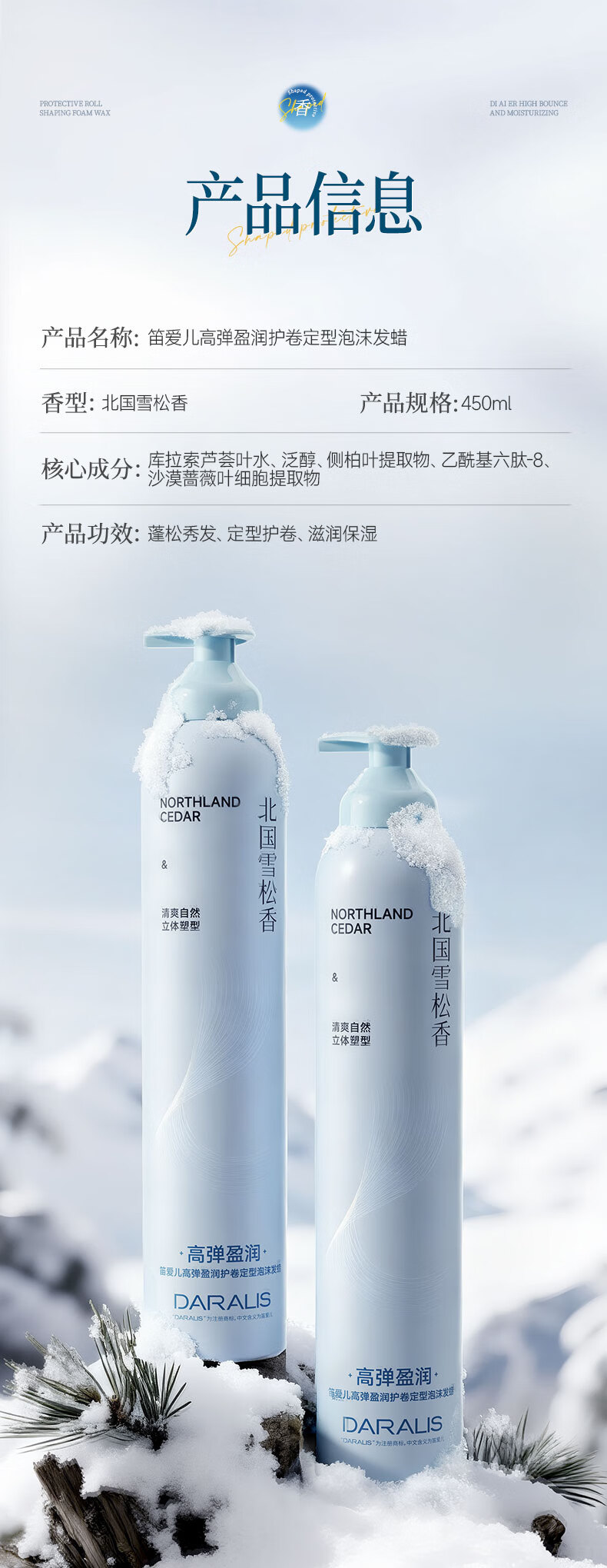 Di Aier Foam Hair Wax for Women's Curly Hair Moisturizing and Fluffy Perm Care Elastin Mousse Foam Fluffy and Long-lasting Styling Northland Cedar Fragrance Foam Hair Wax 450ml