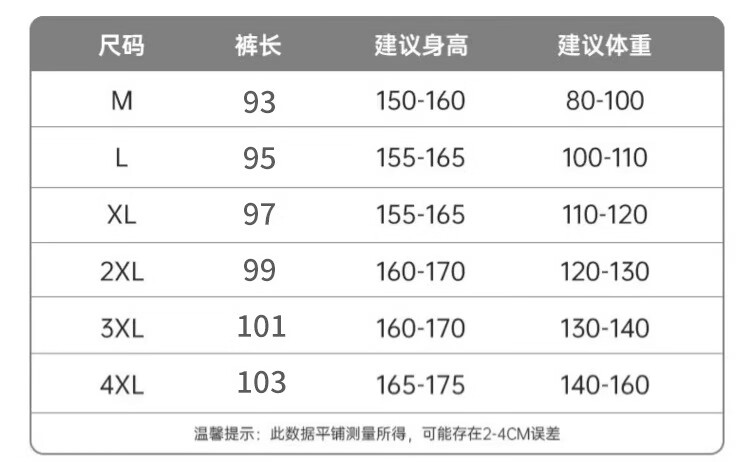 Outseam (cm) 99 cm 101.5 cm 104 cm 106.5 cm 109 cm