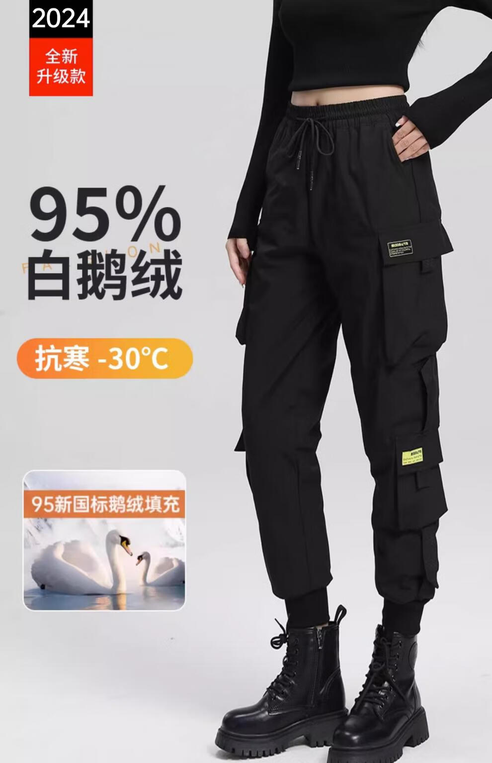 TKSY Goose Down Workwear Down Pants Women's Outerwear Cotton Pants Winter 2026 New Waterproof Northeast Minus 40 Coldproof Charge Pants Black Workwear/Style Full Body 95% White Goose Down XL 110-120Jin Jin is equal to 0.5 kg