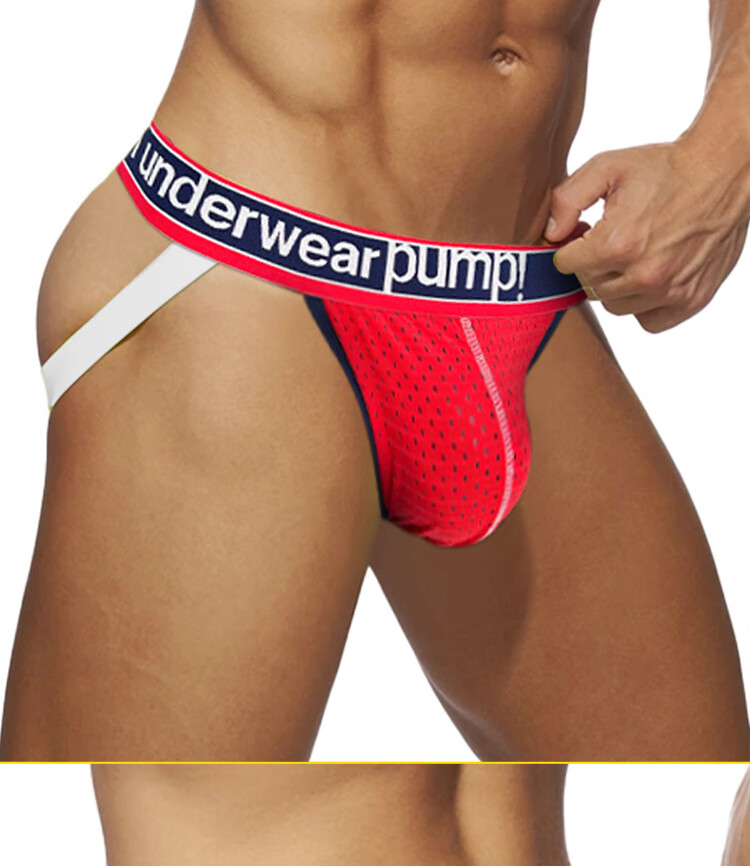 PUMP Trendy Men's Thong Pants Mesh Double Thong Pants Hollow Exposed Buttocks Youthful T H96 Cotton-Orange XL