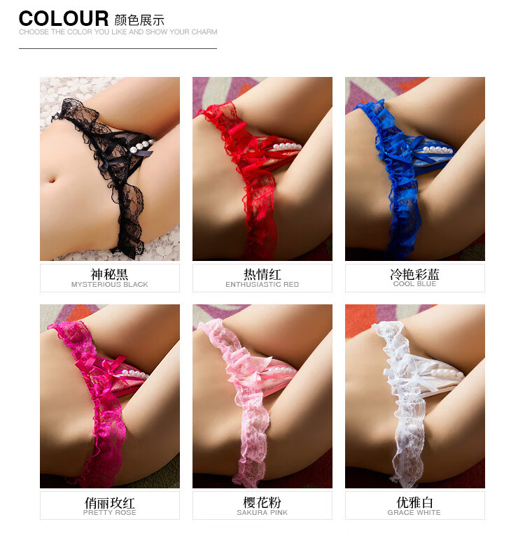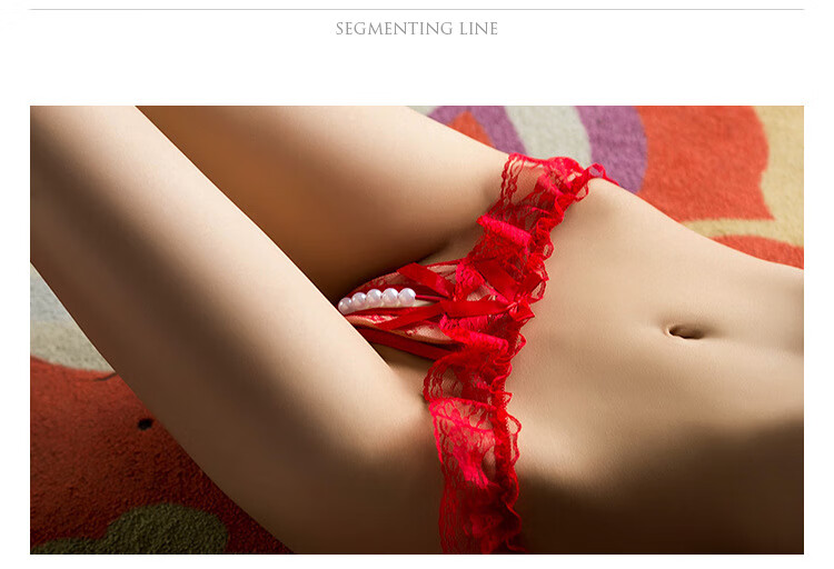 Sexy lingerie panties, perverted passion lace crotchless thong massage pearl female sexy pajamas transparent see-through red (extremely tempting pure desire SM couple queen's