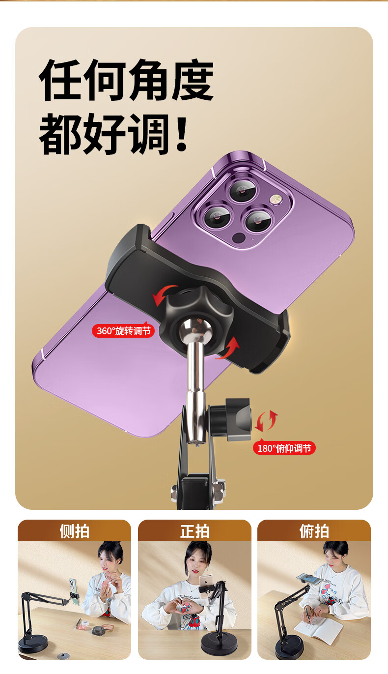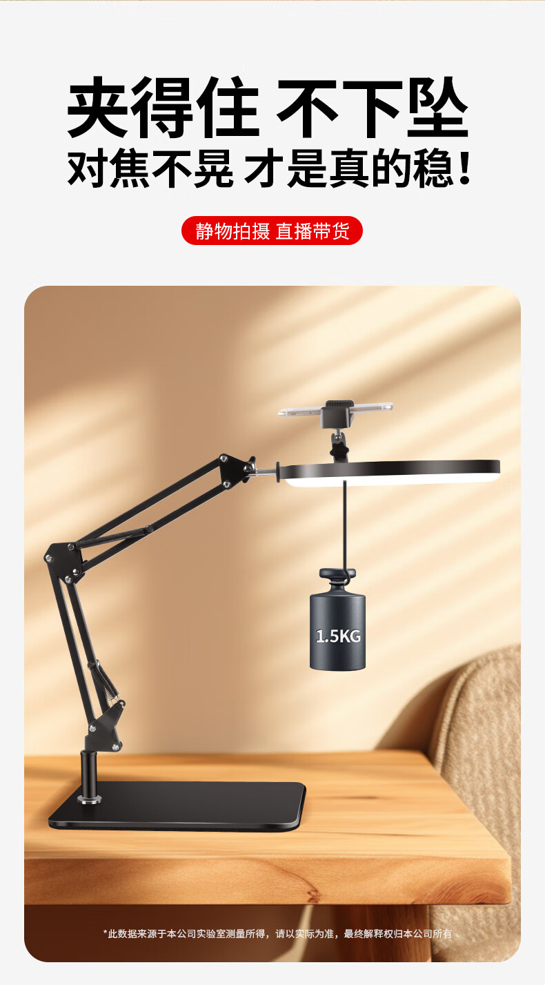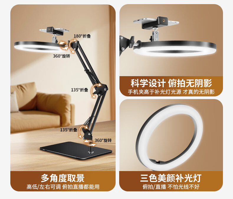 DOBOLY special mobile phone stand for unboxing shooting, anchor, internet celebrity recording video, professional mobile phone stand for shooting overhead shots of food live broadcast, cantilever support bracket with fill light, adjustable angle, disc base, carbon steel cantilever, overhead shot bracket