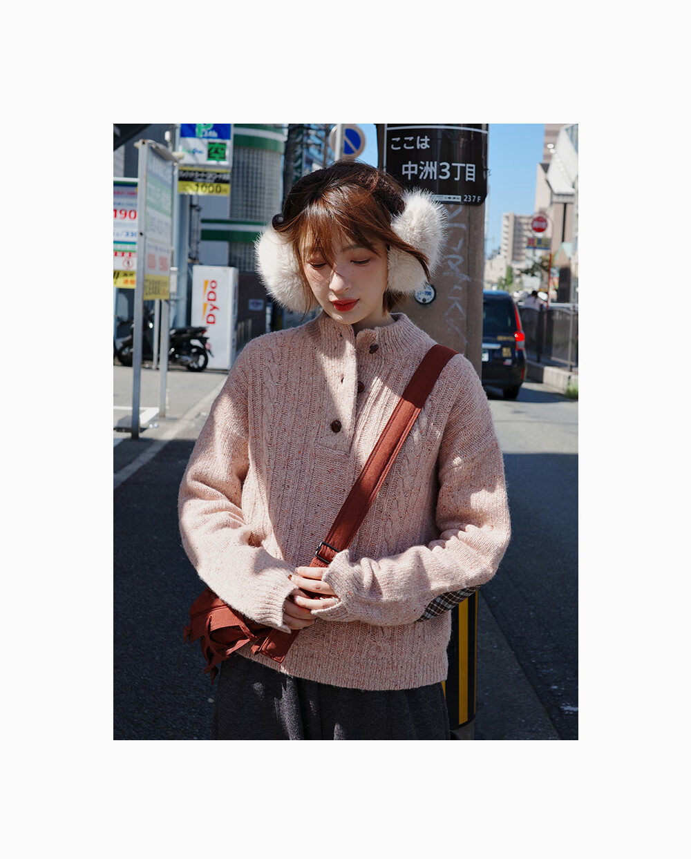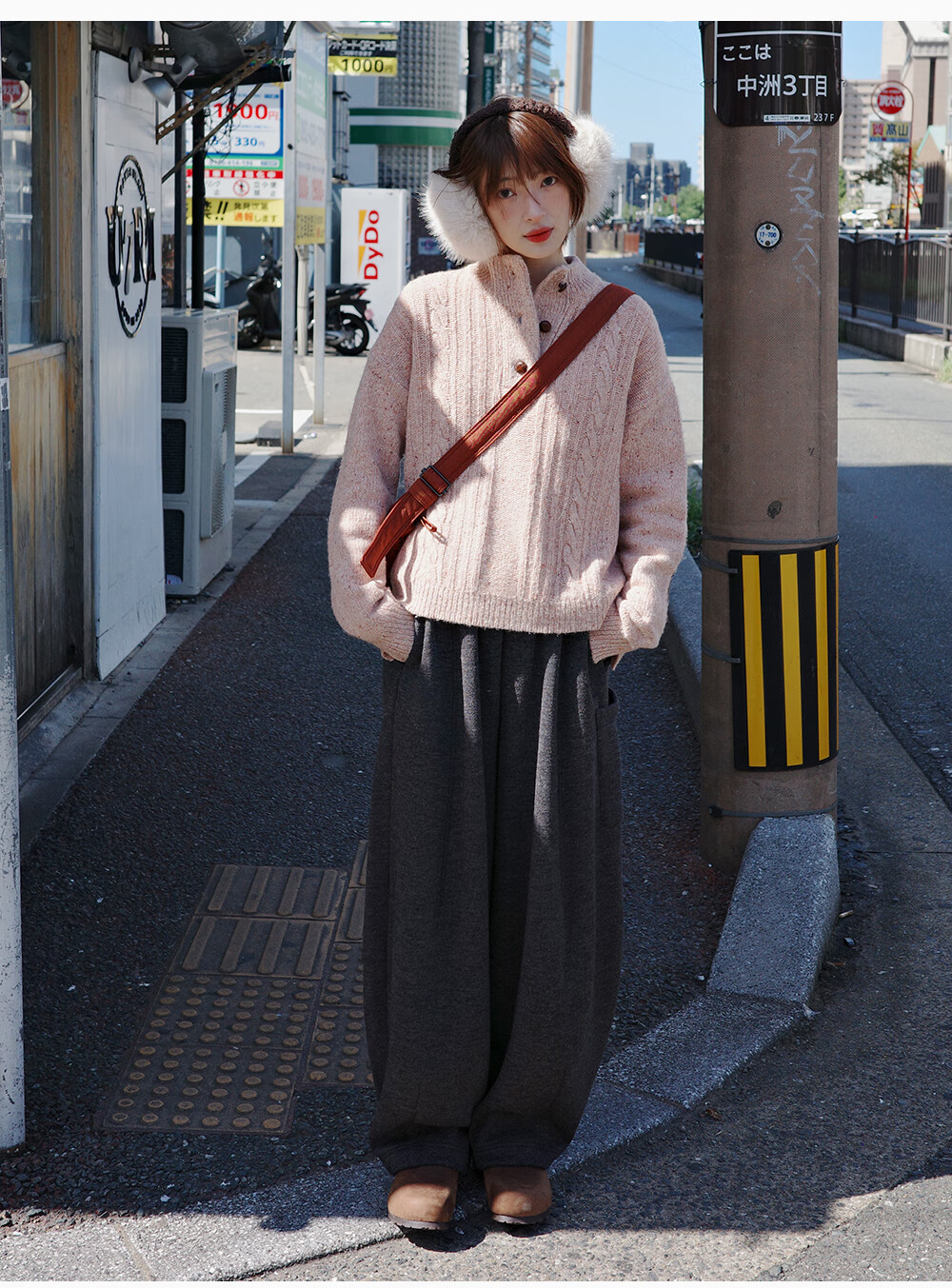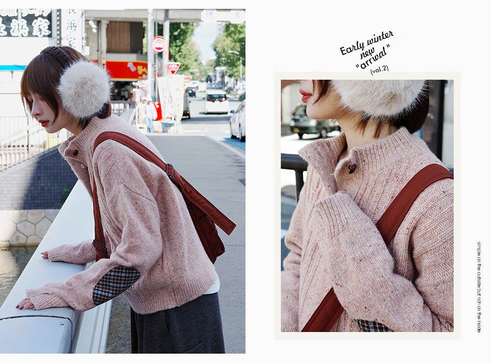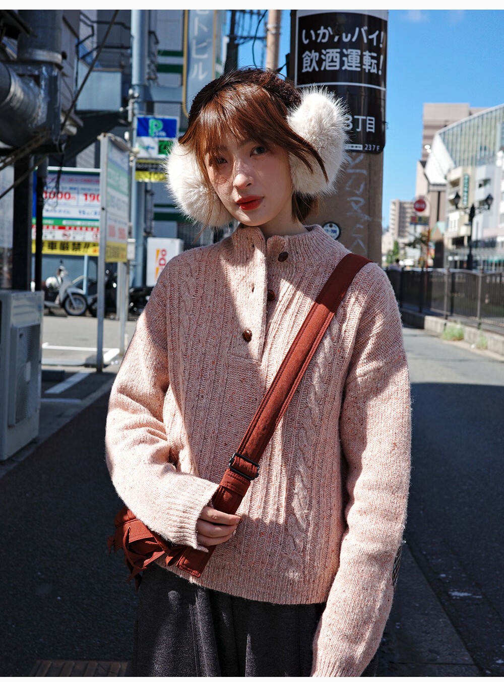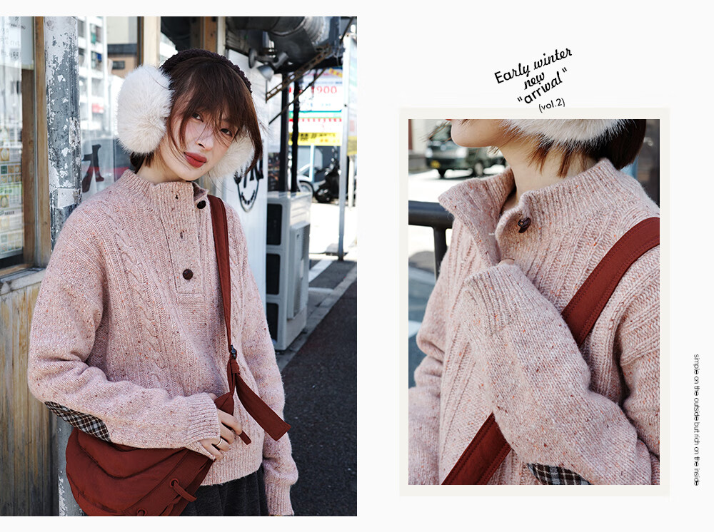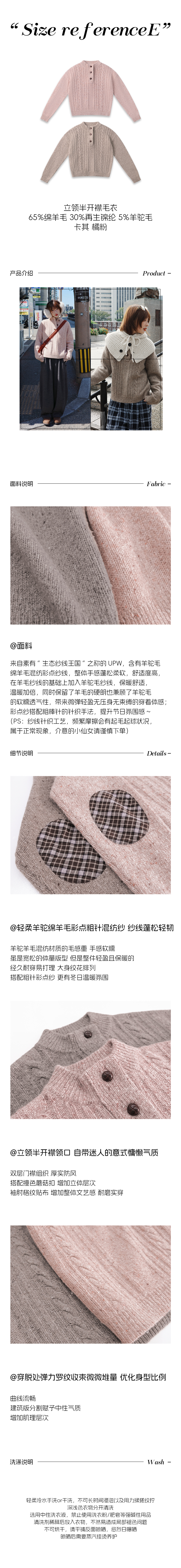 LE BEMIO line drawing studio orange title page extra fine merino wool half-cardigan thick knitted stand-up collar sweater for women orange pink pre-sale S