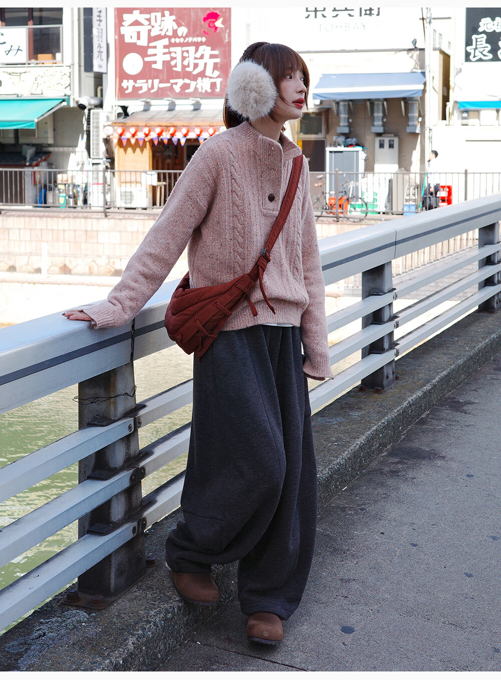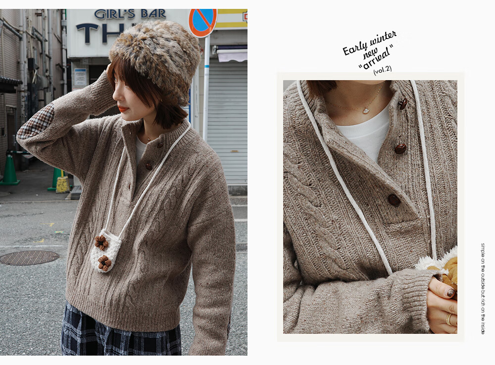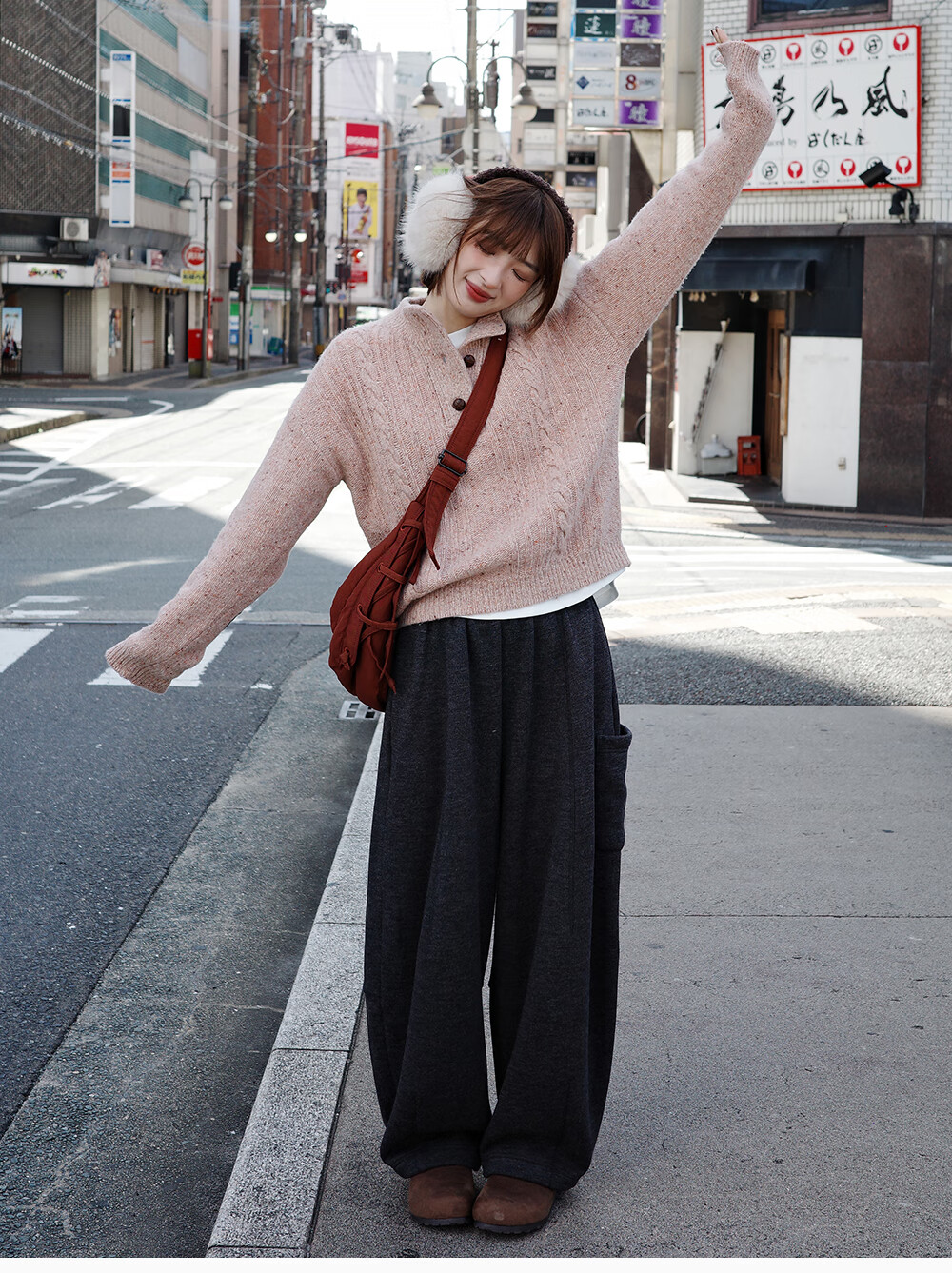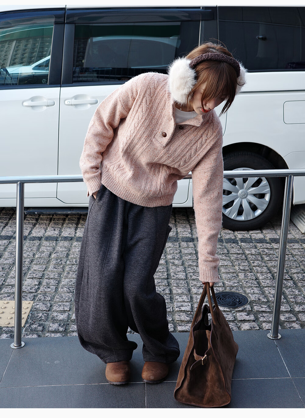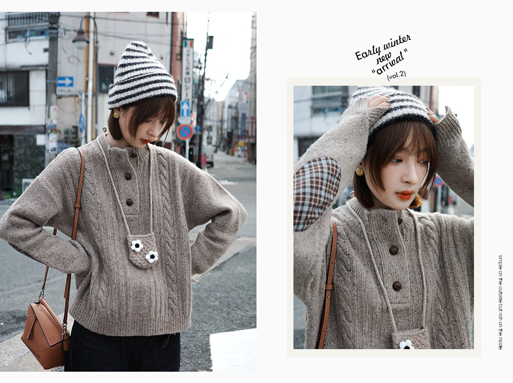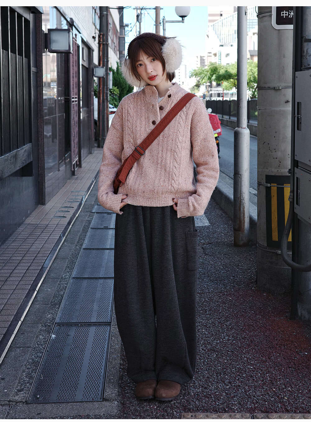 LE BEMIO line drawing studio orange title page extra fine merino wool half-cardigan thick knitted stand-up collar sweater for women orange pink pre-sale S
