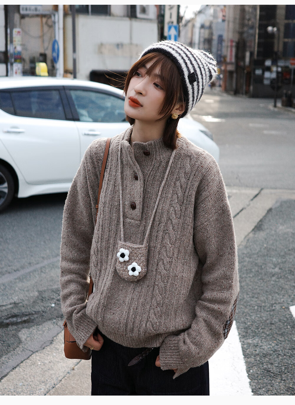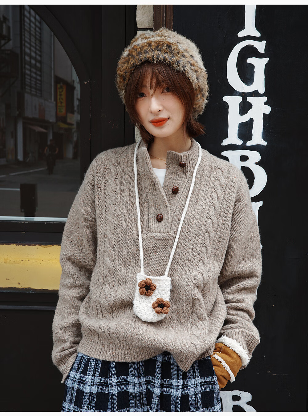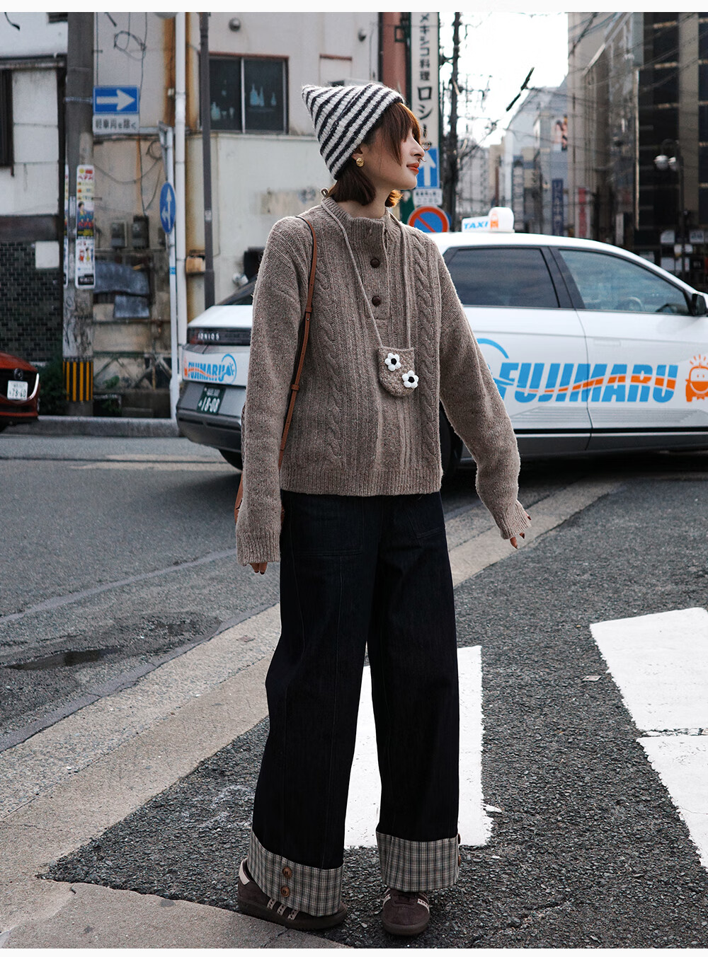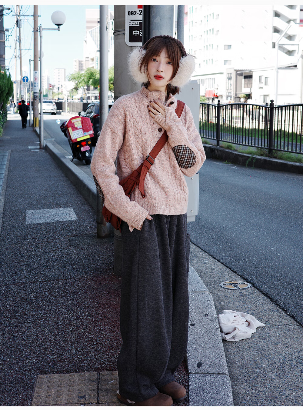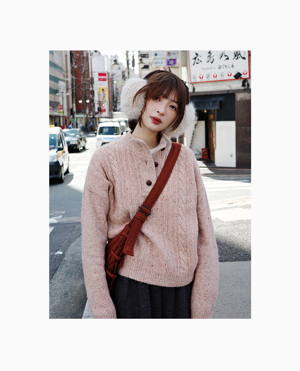 LE BEMIO line drawing studio orange title page extra fine merino wool half-cardigan thick knitted stand-up collar sweater for women orange pink pre-sale S