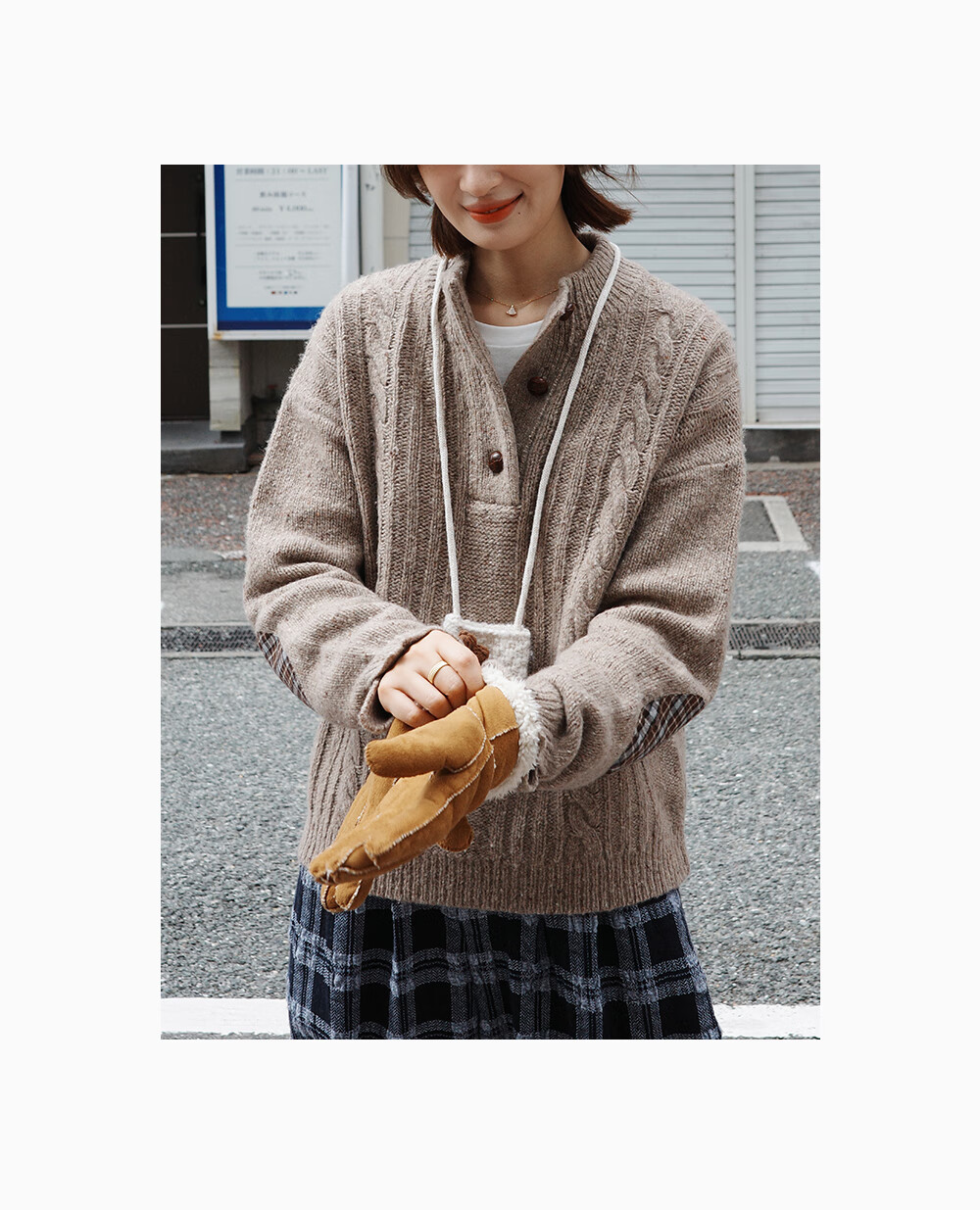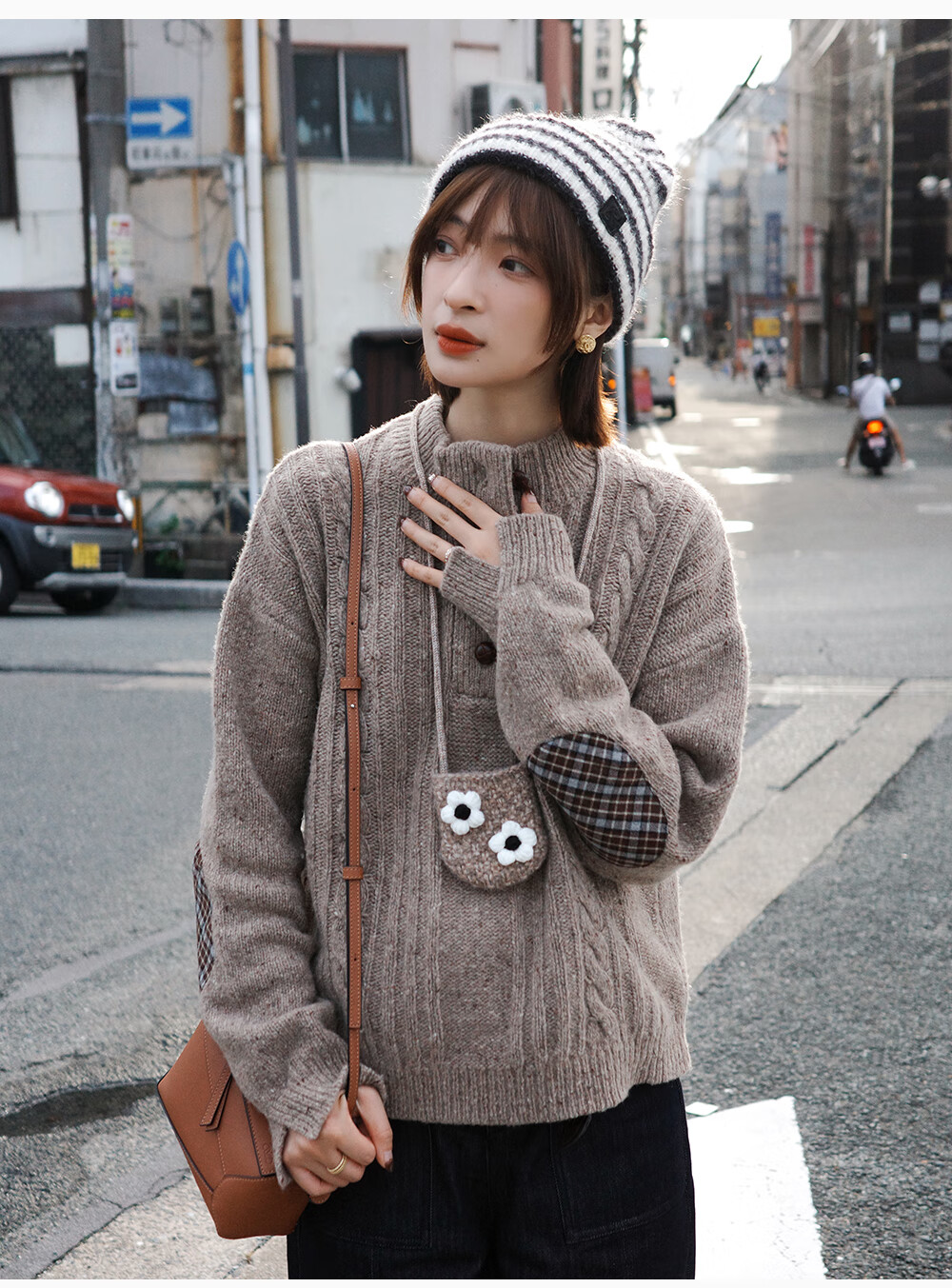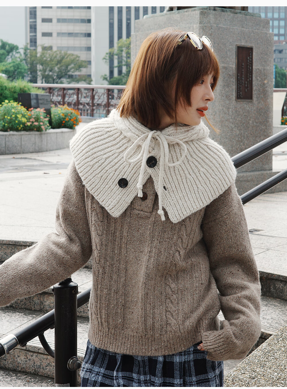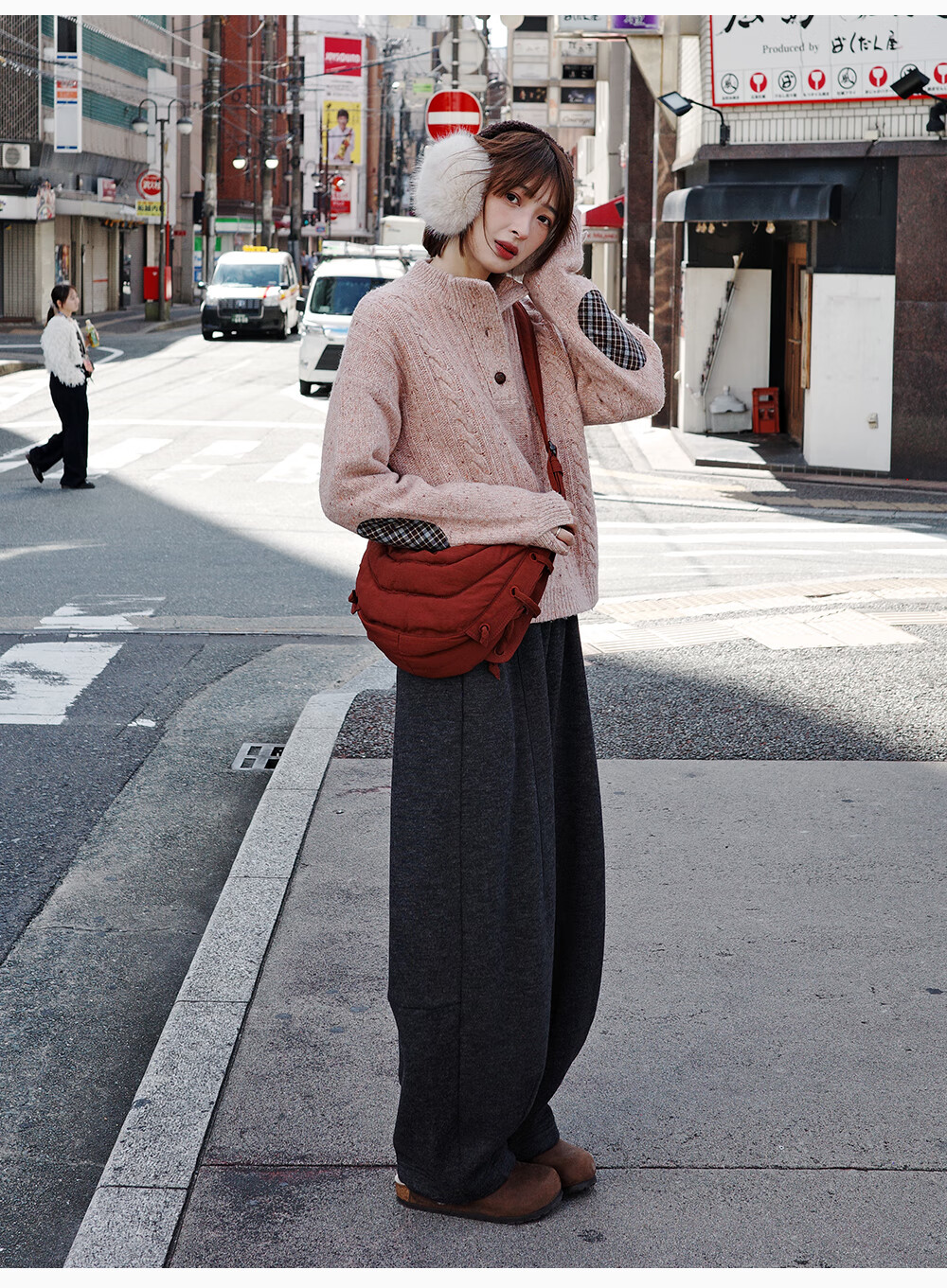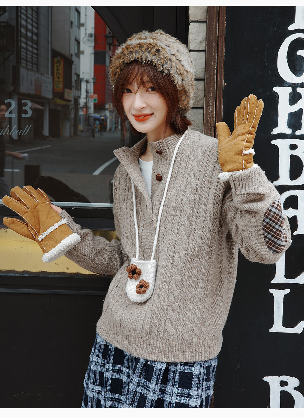 LE BEMIO line drawing studio orange title page extra fine merino wool half-cardigan thick knitted stand-up collar sweater for women orange pink pre-sale S
