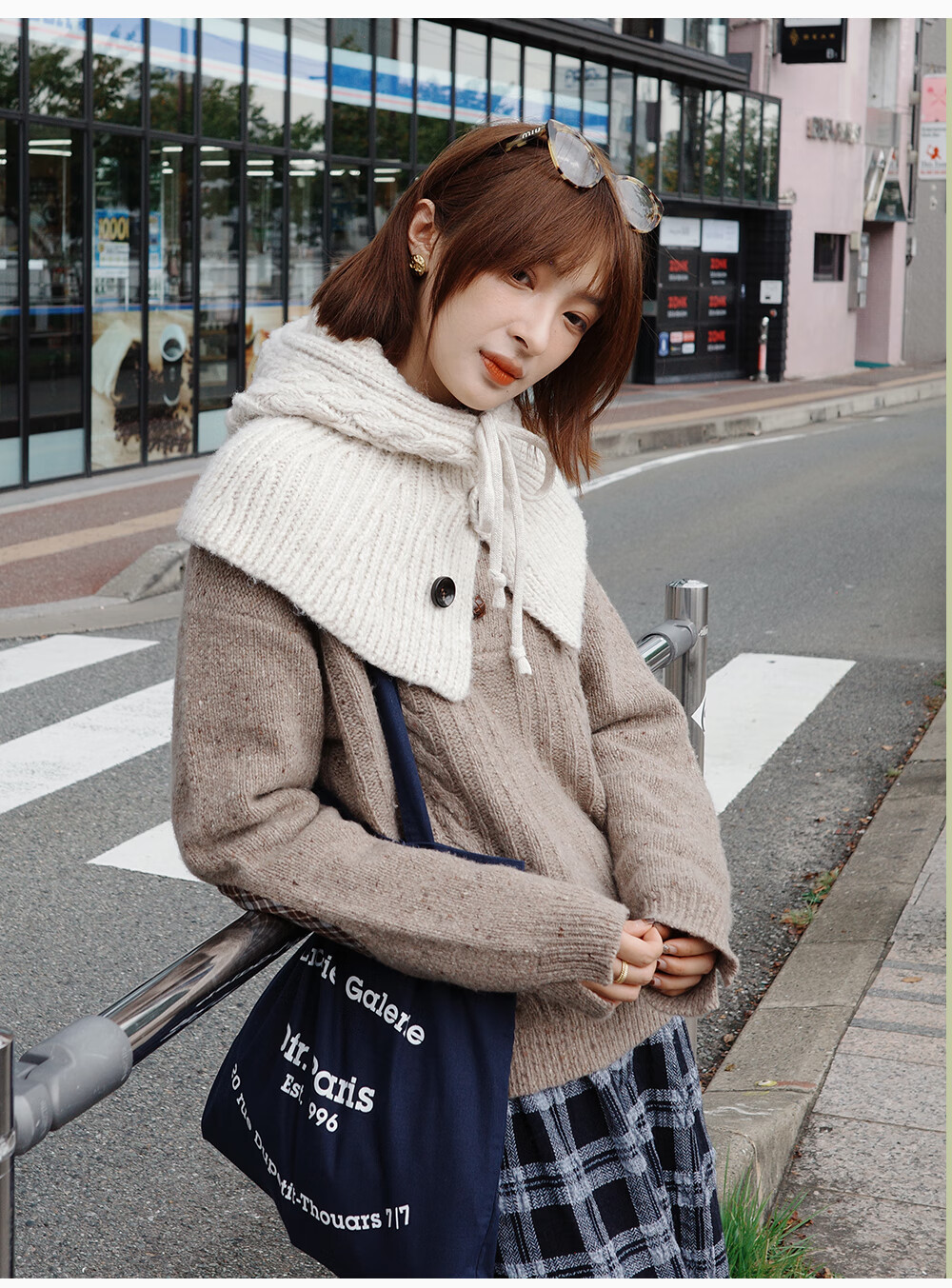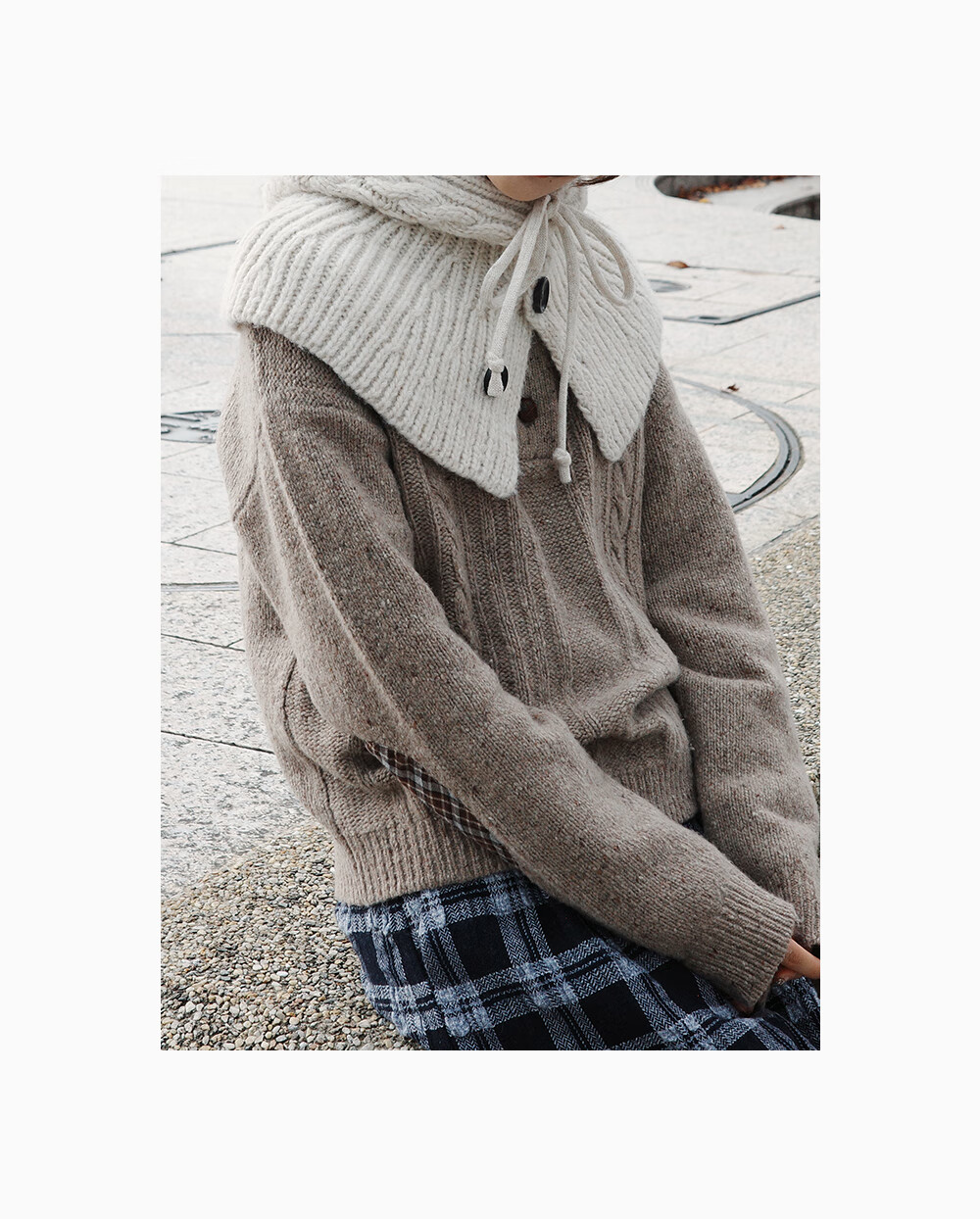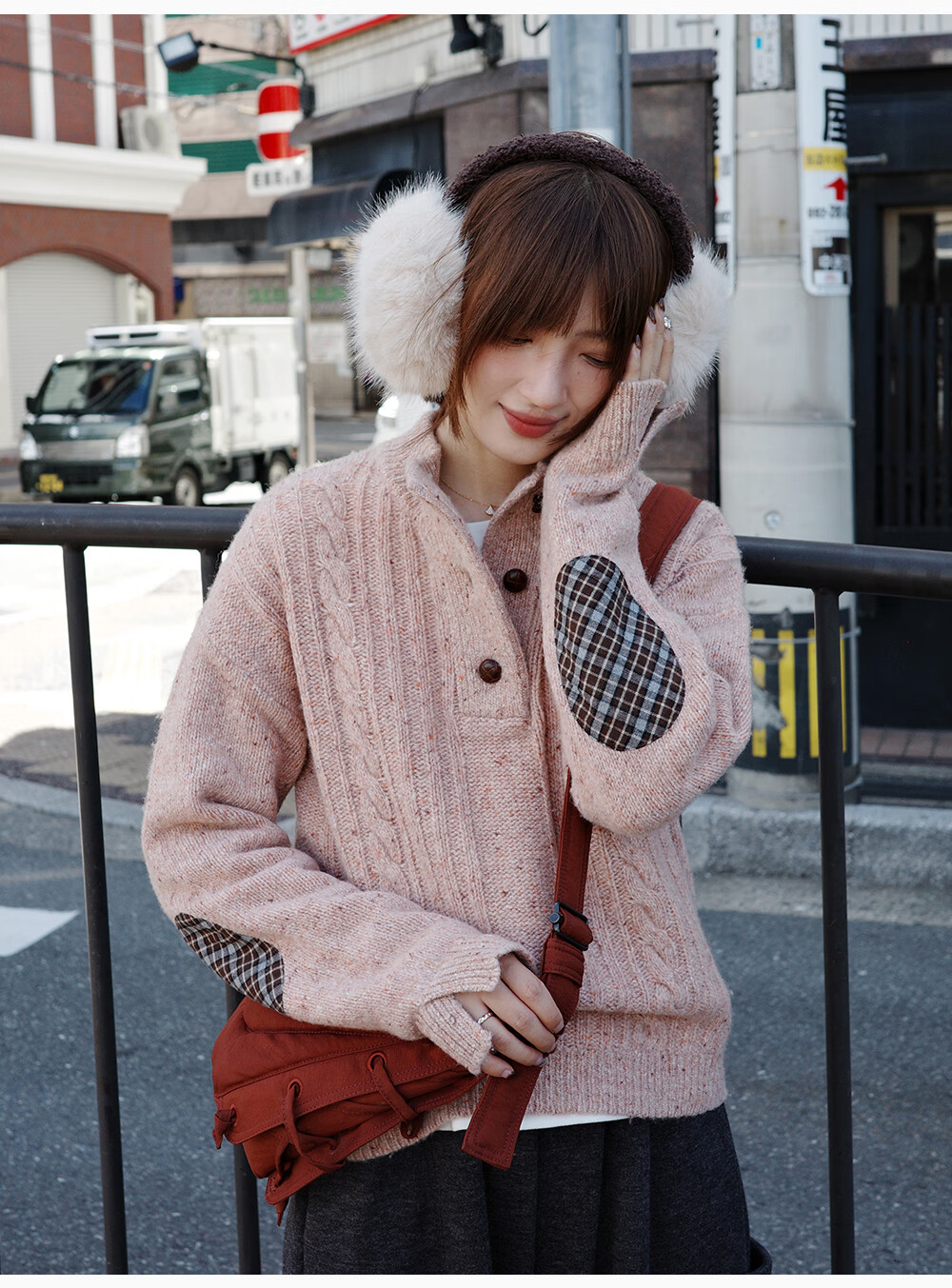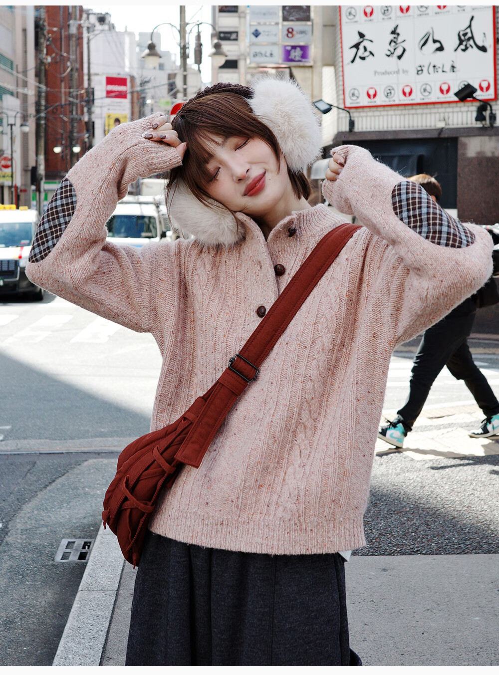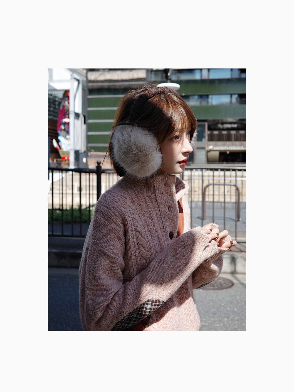 LE BEMIO line drawing studio orange title page extra fine merino wool half-cardigan thick knitted stand-up collar sweater for women orange pink pre-sale S