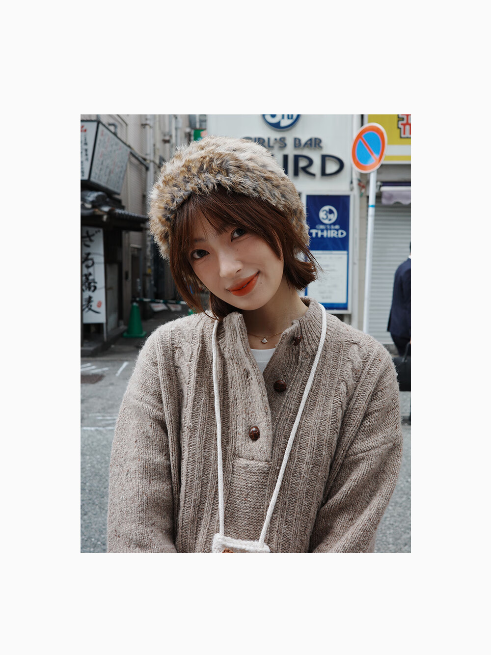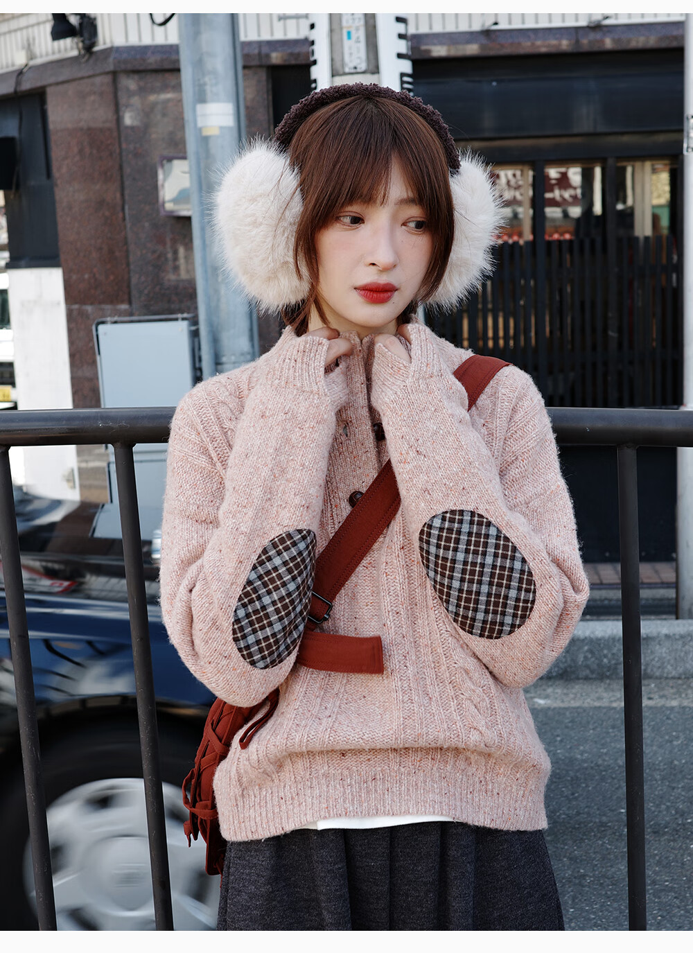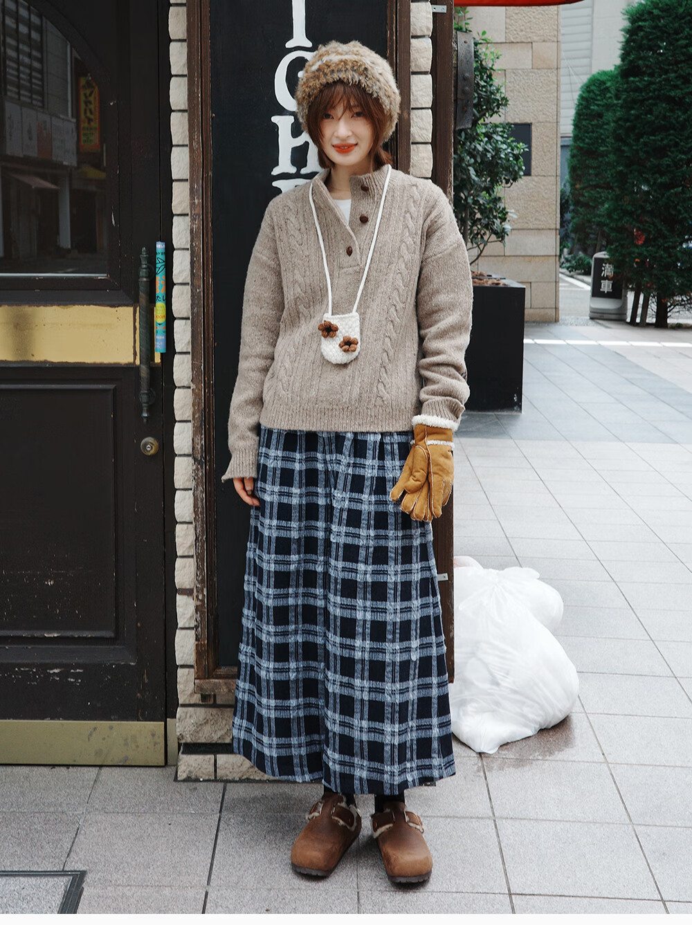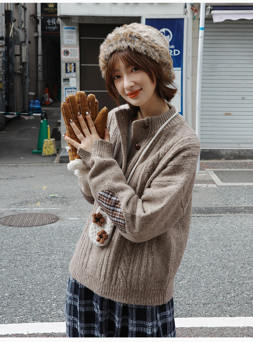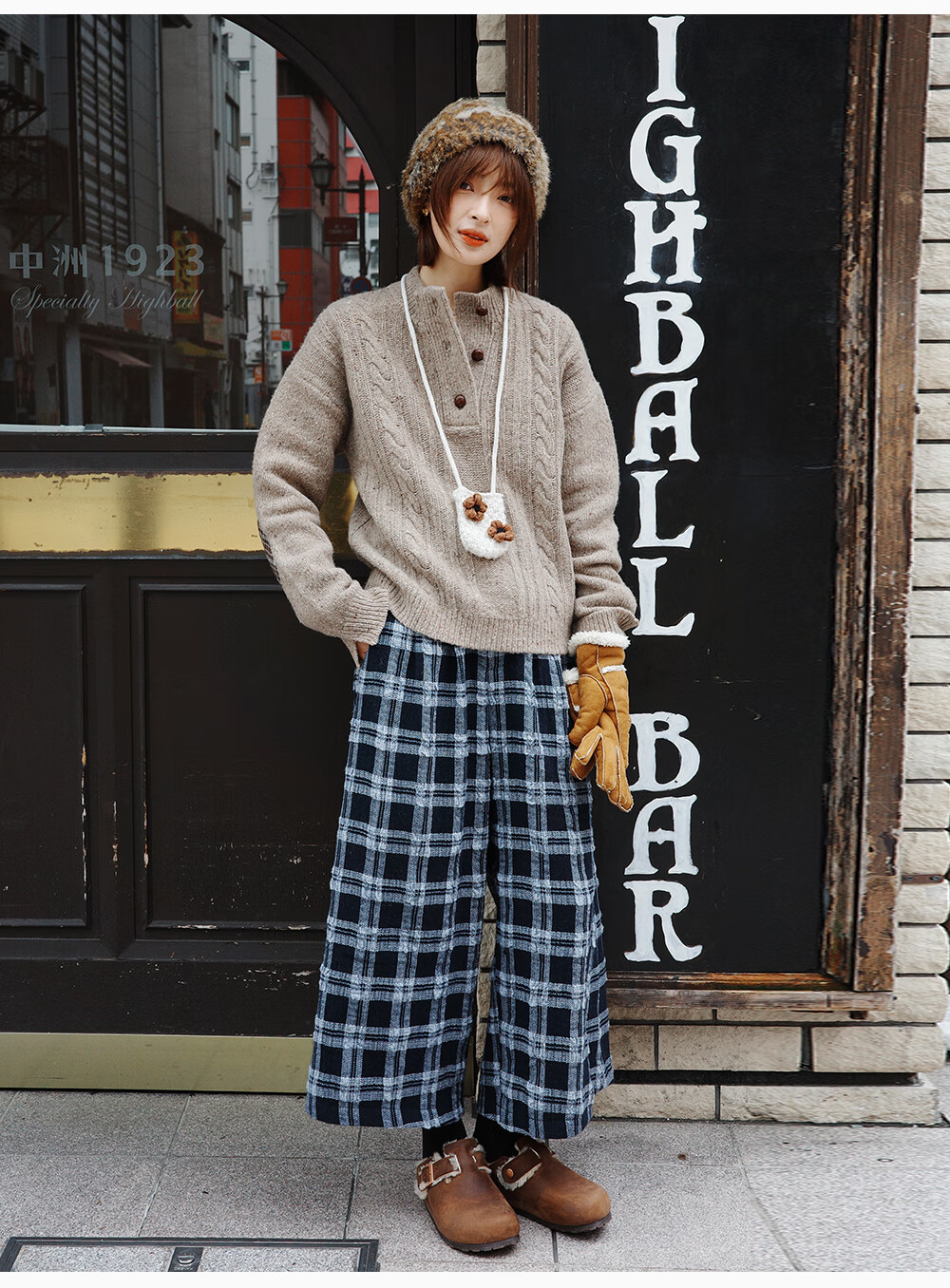 LE BEMIO line drawing studio orange title page extra fine merino wool half-cardigan thick knitted stand-up collar sweater for women orange pink pre-sale S