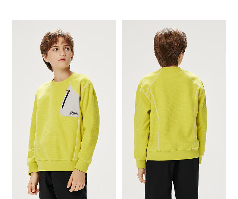 Asics/ASICS children's 25-year loose splicing woven sweatshirt antistatic soft, comfortable, lightweight and warm 4015 fluorescent green 140 cm
