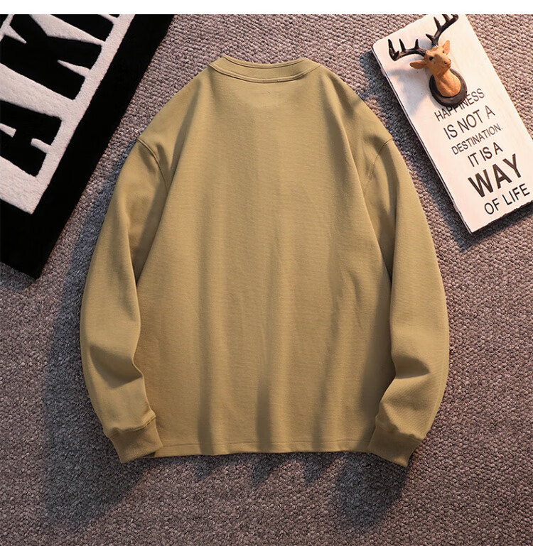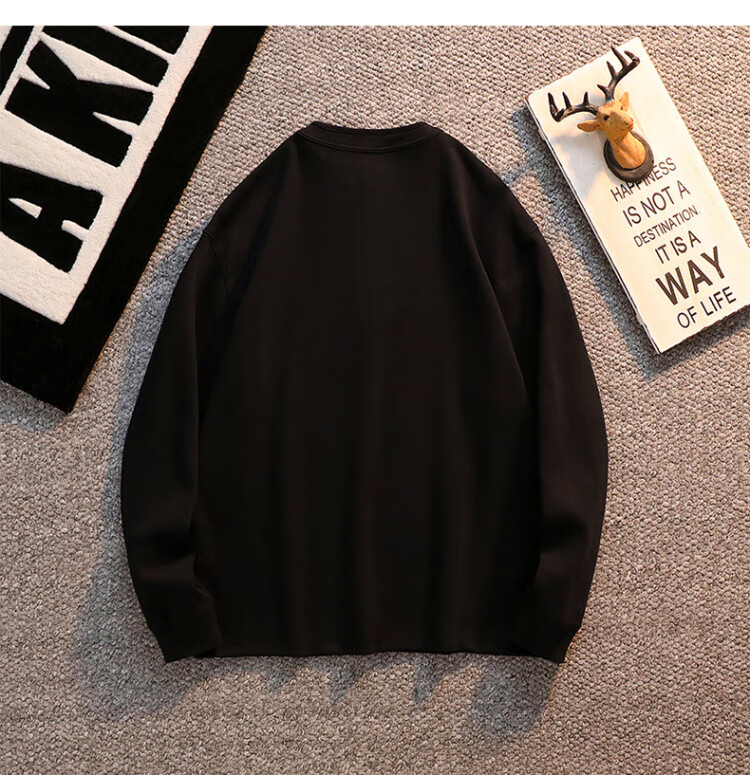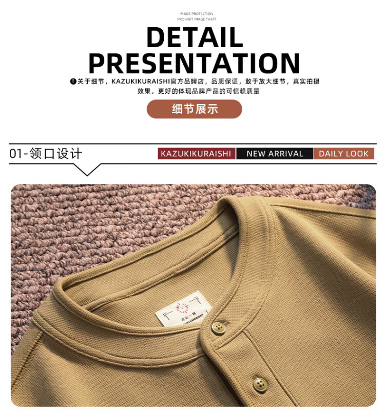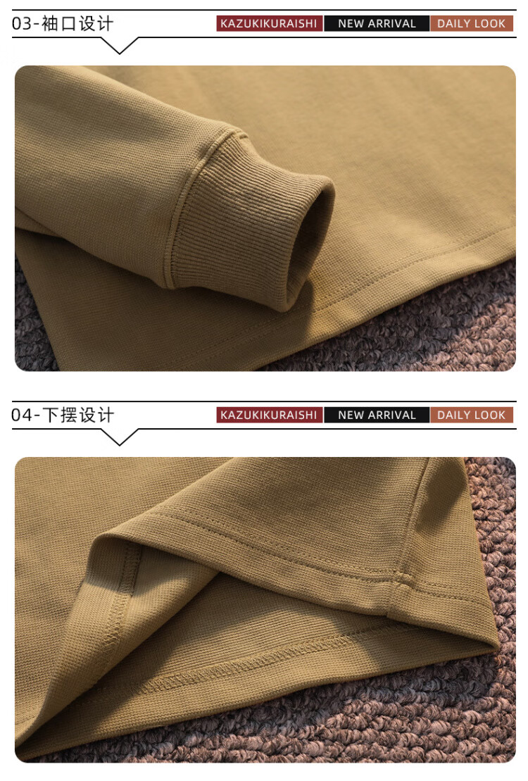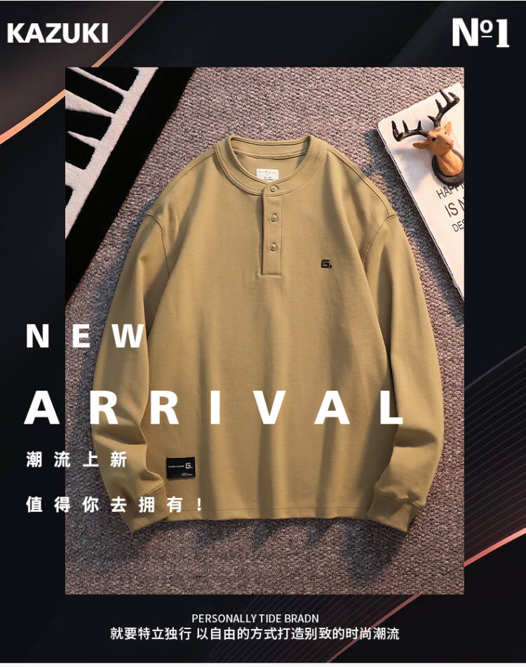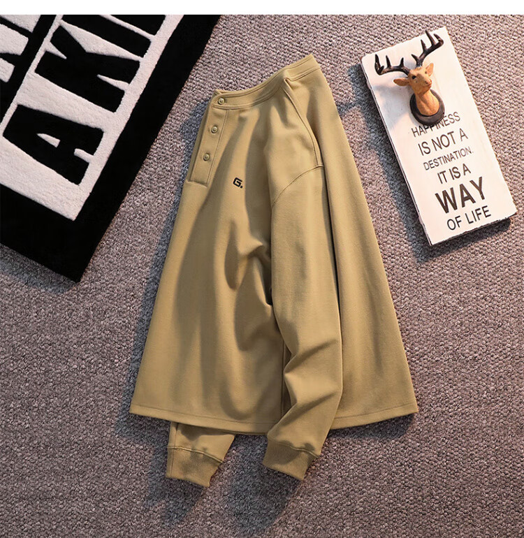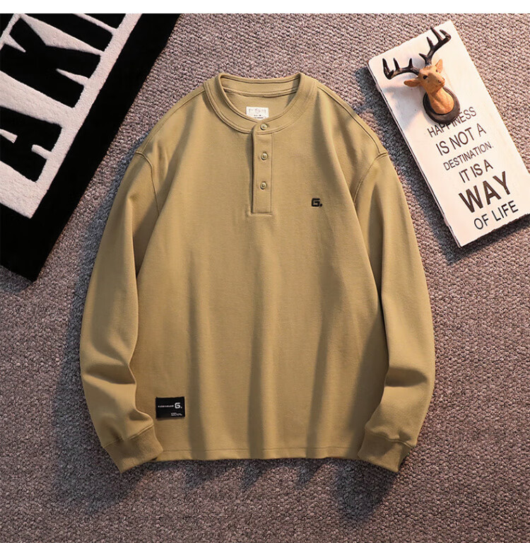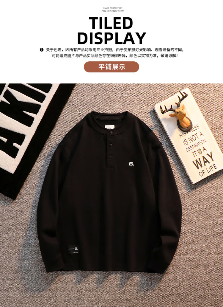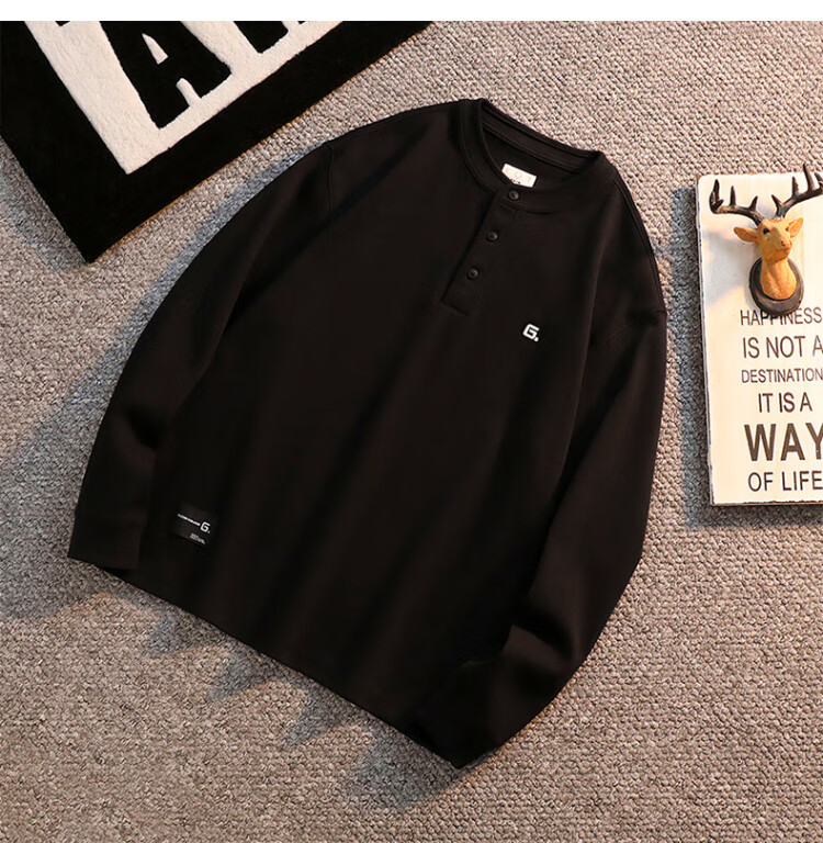 Kuraishi Kazuki autumn and winter trendy brand new American Henry collar long-sleeved T-shirt sweatshirt men's velvet Henry shirt jacket top clothes black M