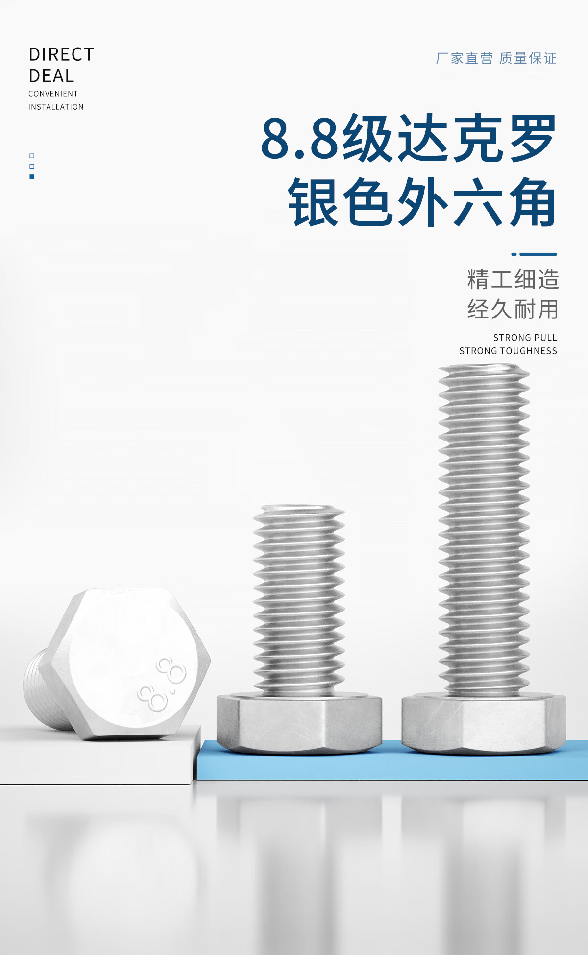 GUWANJI grade 8.8 high-strength Dacromet external hexagonal screws GB5783 hexagonal bolt extension screws M6-M24 M12x35 (10 pieces)