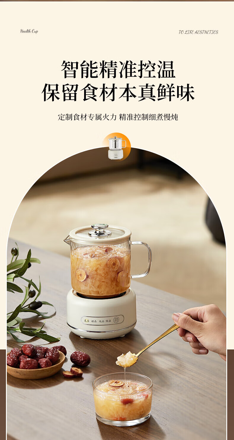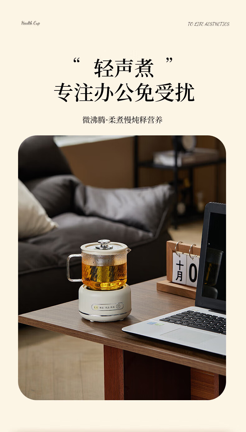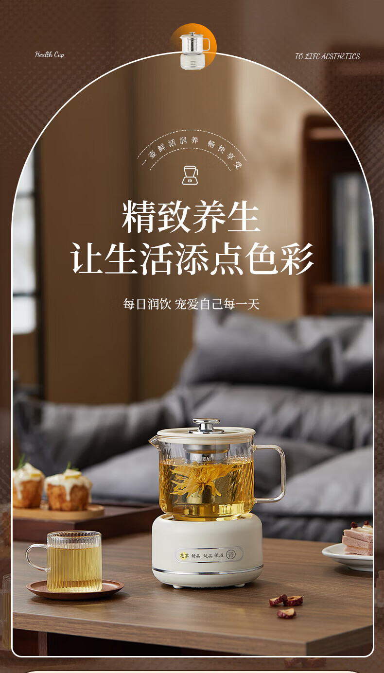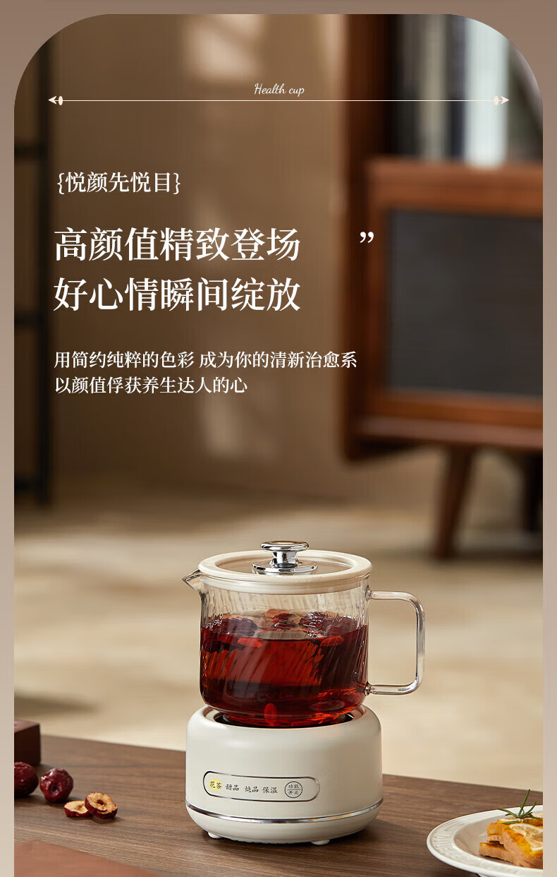 SUOPUER Supo household 700ml large capacity all-glass mini kettle health pot flower teapot all-in-one constant temperature tea making office artifact household convenient 0.7L cream white knob style single pot