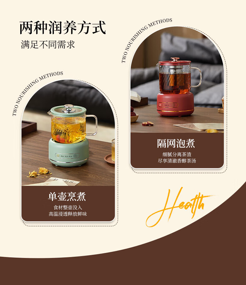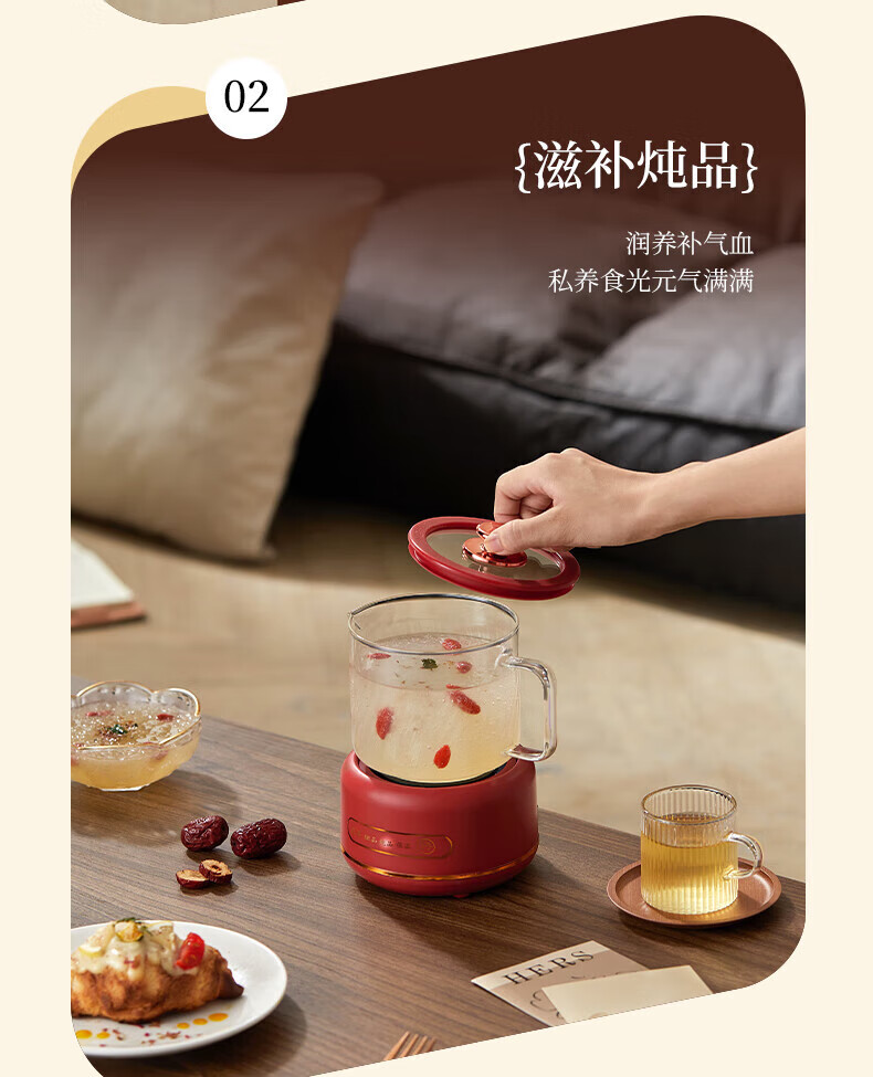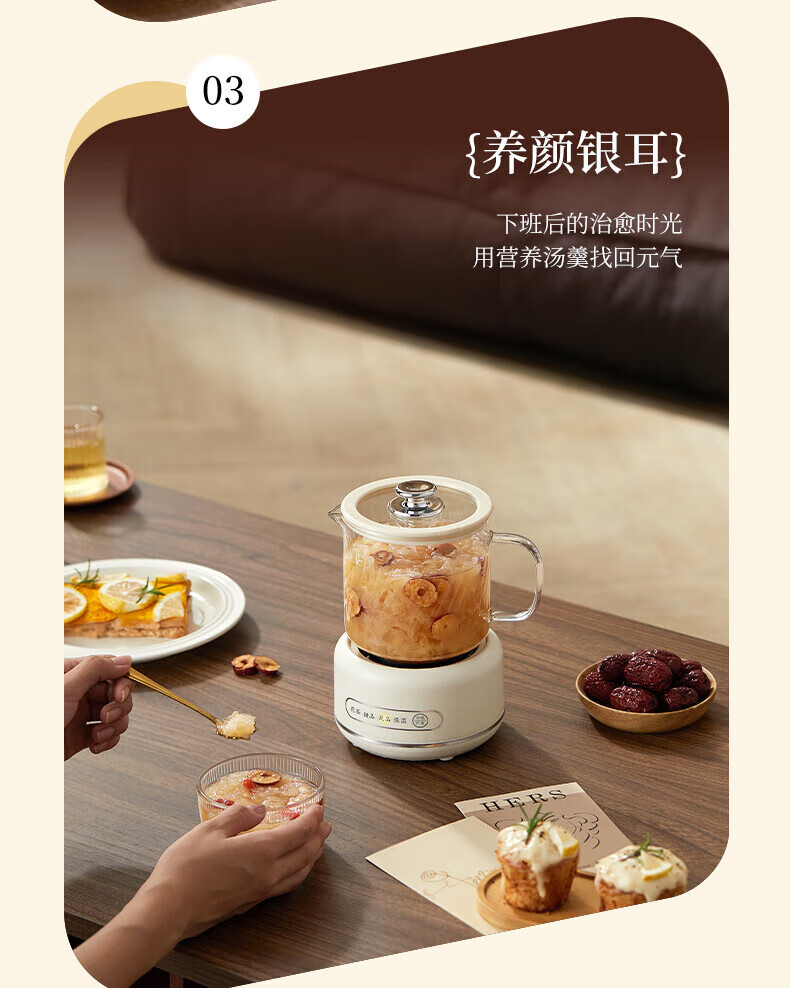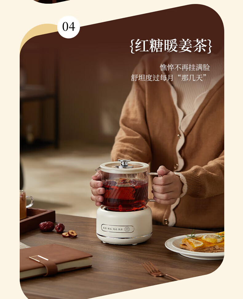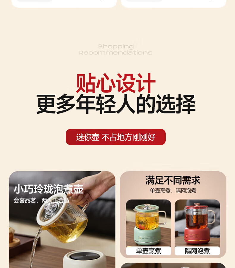 SUOPUER Supo household 700ml large capacity all-glass mini kettle health pot flower teapot all-in-one constant temperature tea making office artifact household convenient 0.7L cream white knob style single pot