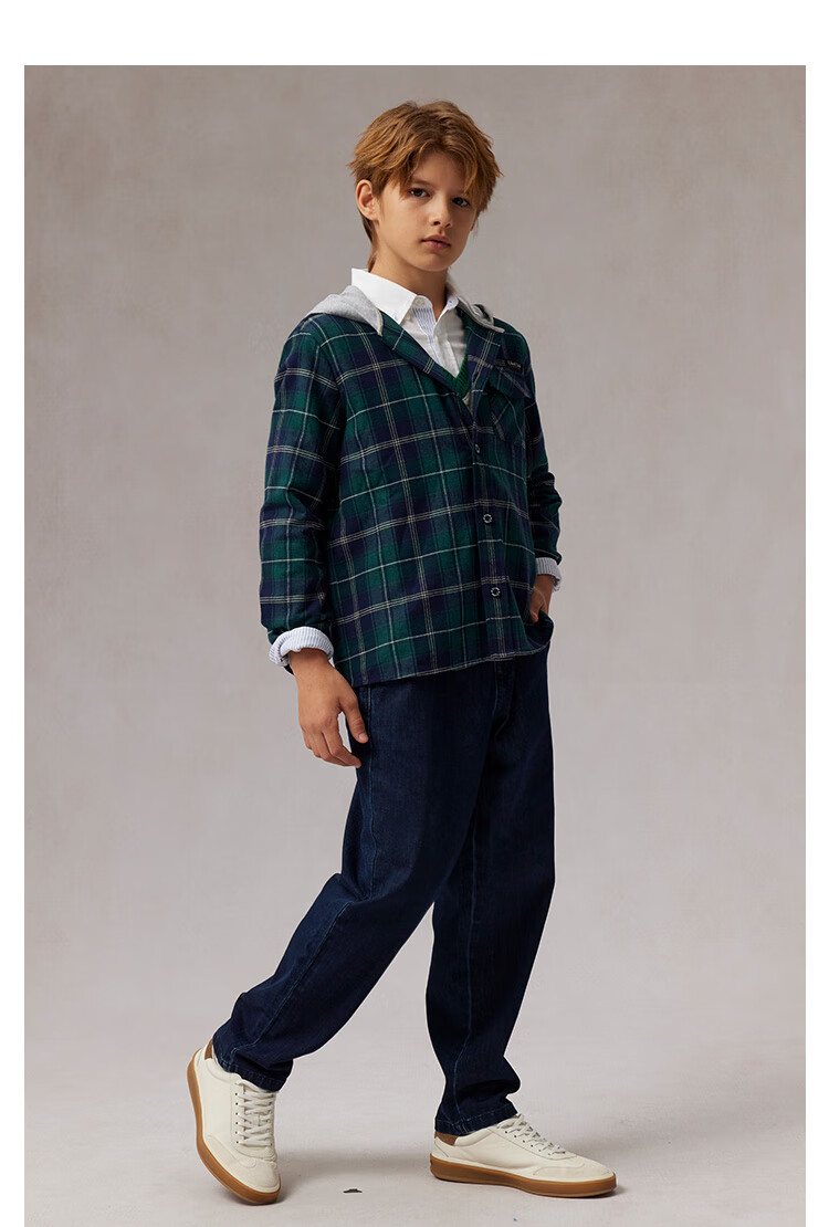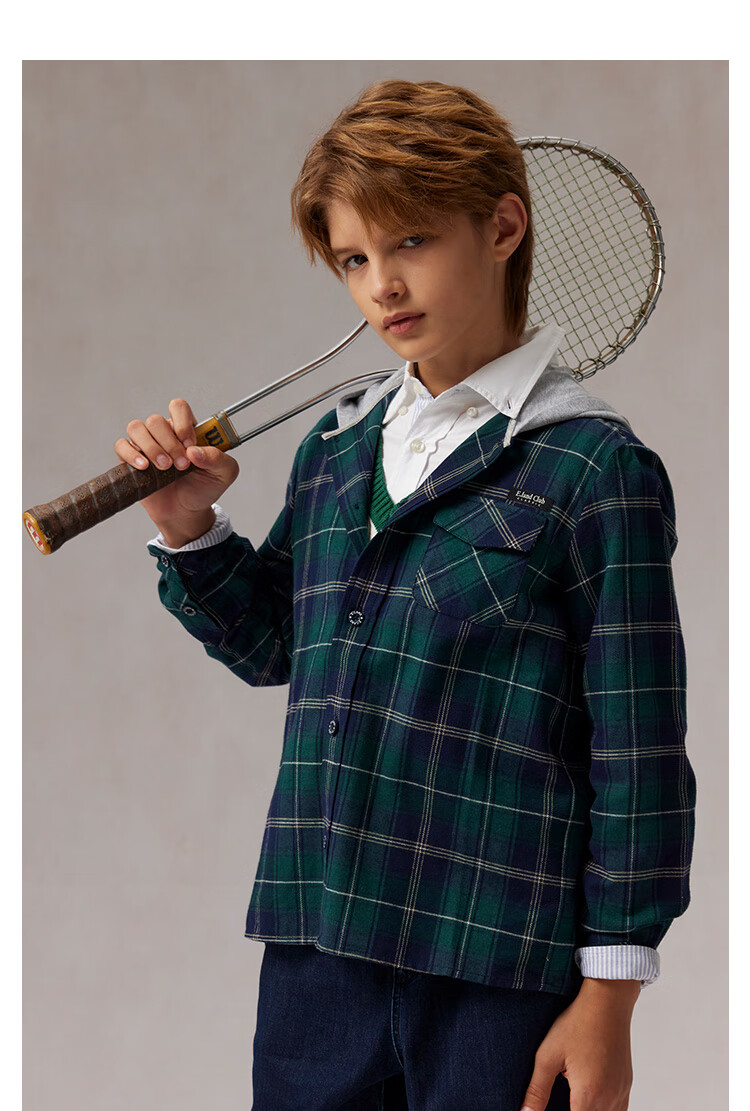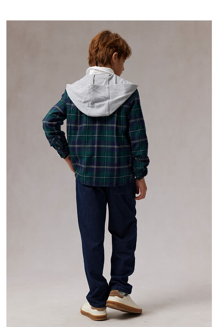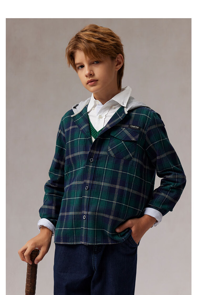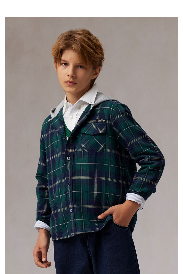 E LAND KIDS children's clothing boys' shirt plaid hooded shirt green 120