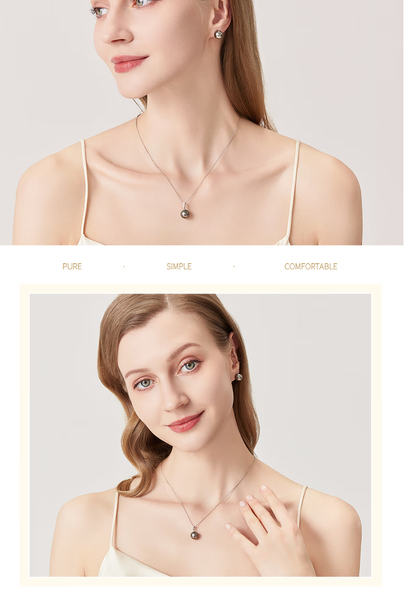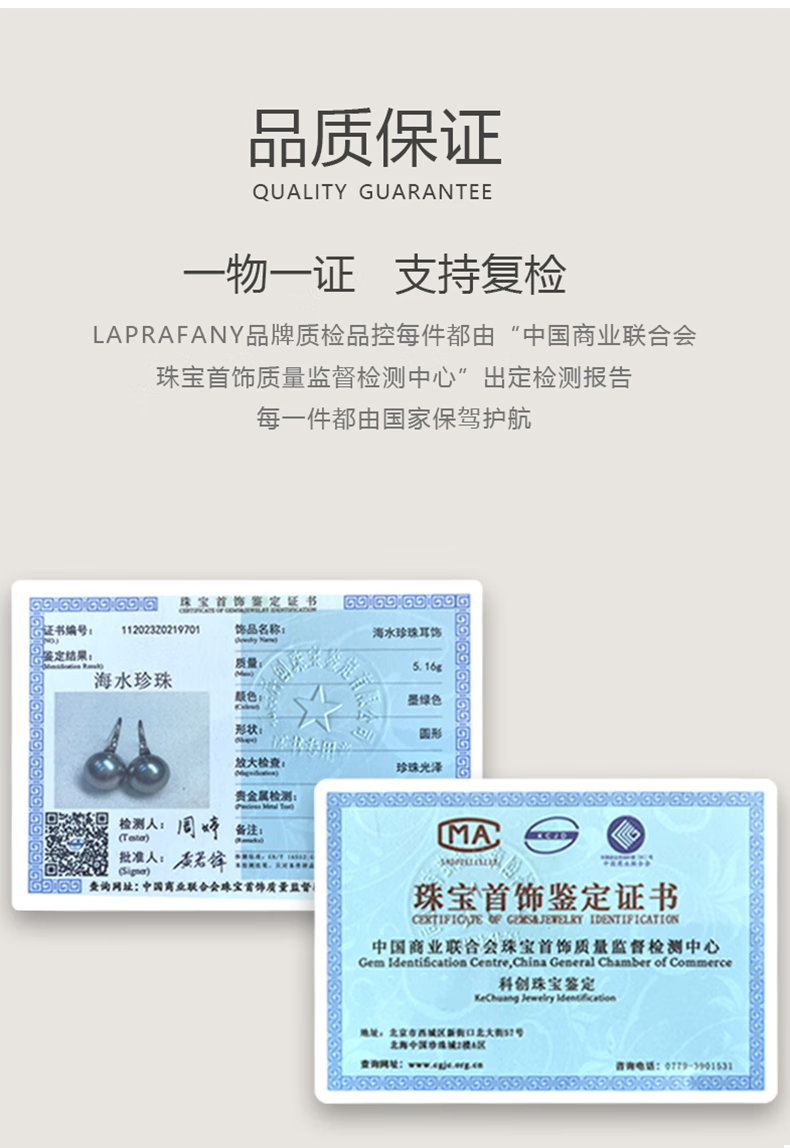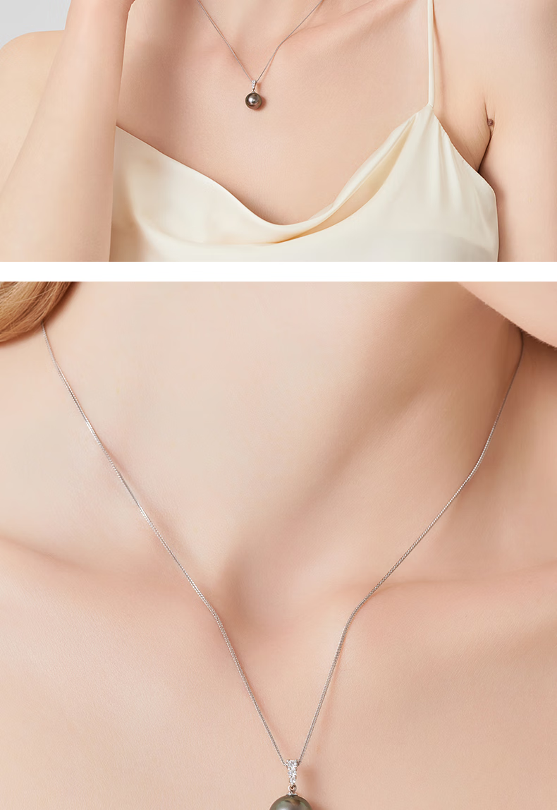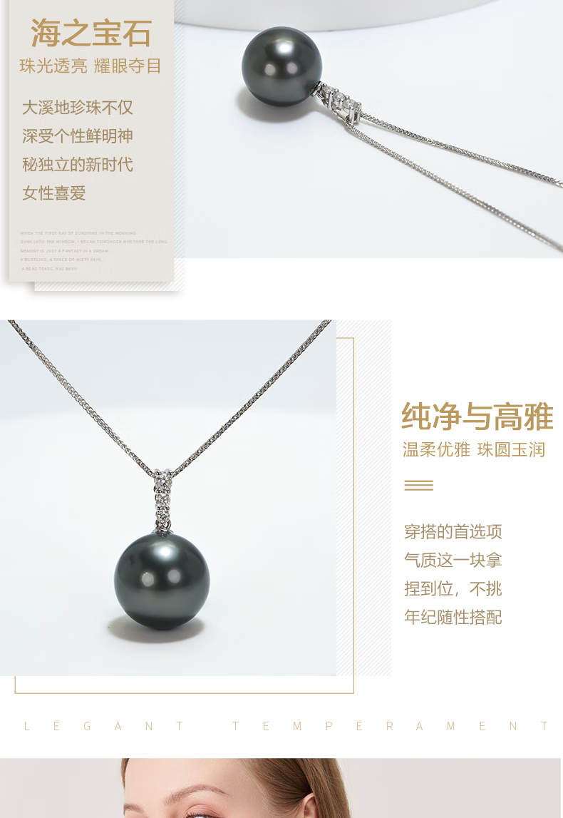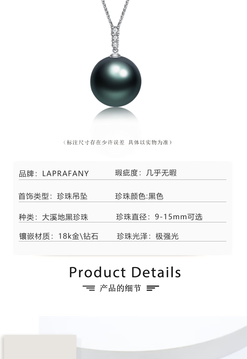 LAPRAFANY natural sea water Tahitian black pearl pendant necklace 18K gold set with diamond single malachite green bright clavicle chain 10-11mm specially selected black and green free 18K necklace