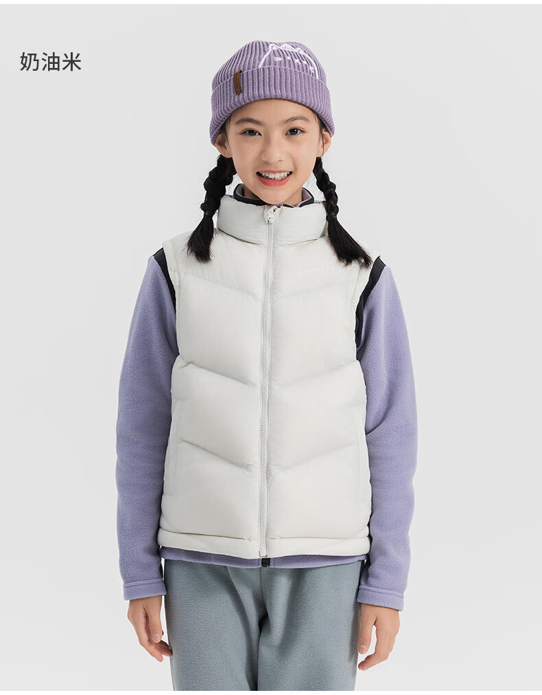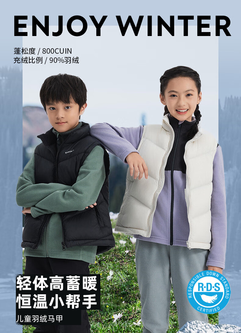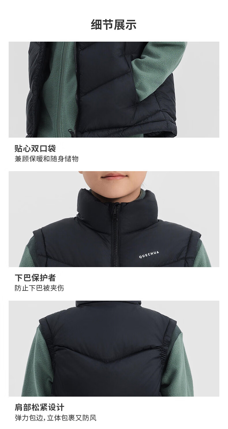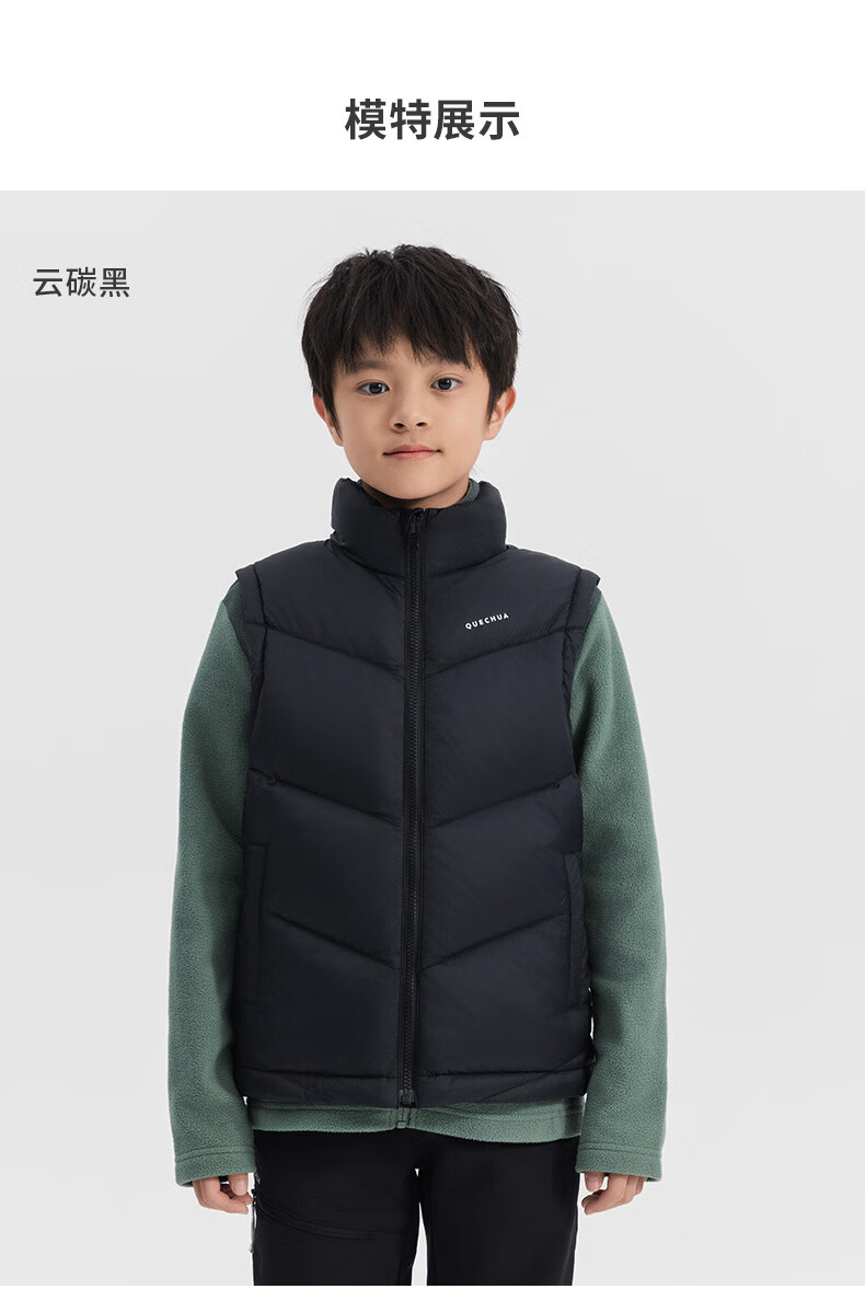 Decathlon (DECATHLON) children's down vest for boys and girls, light and warm vest, spring and autumn plus velvet thick coat, KIDC official flagship authentic cloud carbon black M 125c