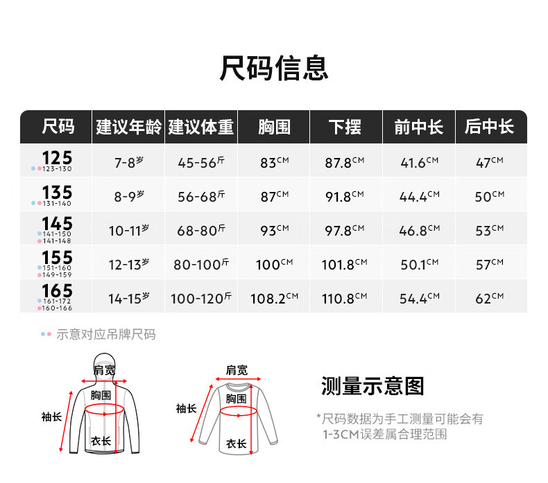 China (cm) 160-165/84-86 165-170 / 88-90 167-172 / 92-96 168-173 / 98-102 170-176 / 106-110