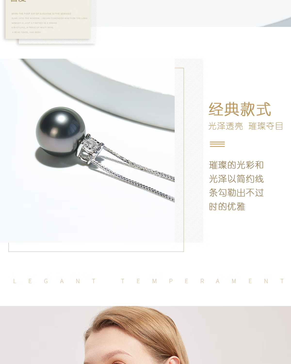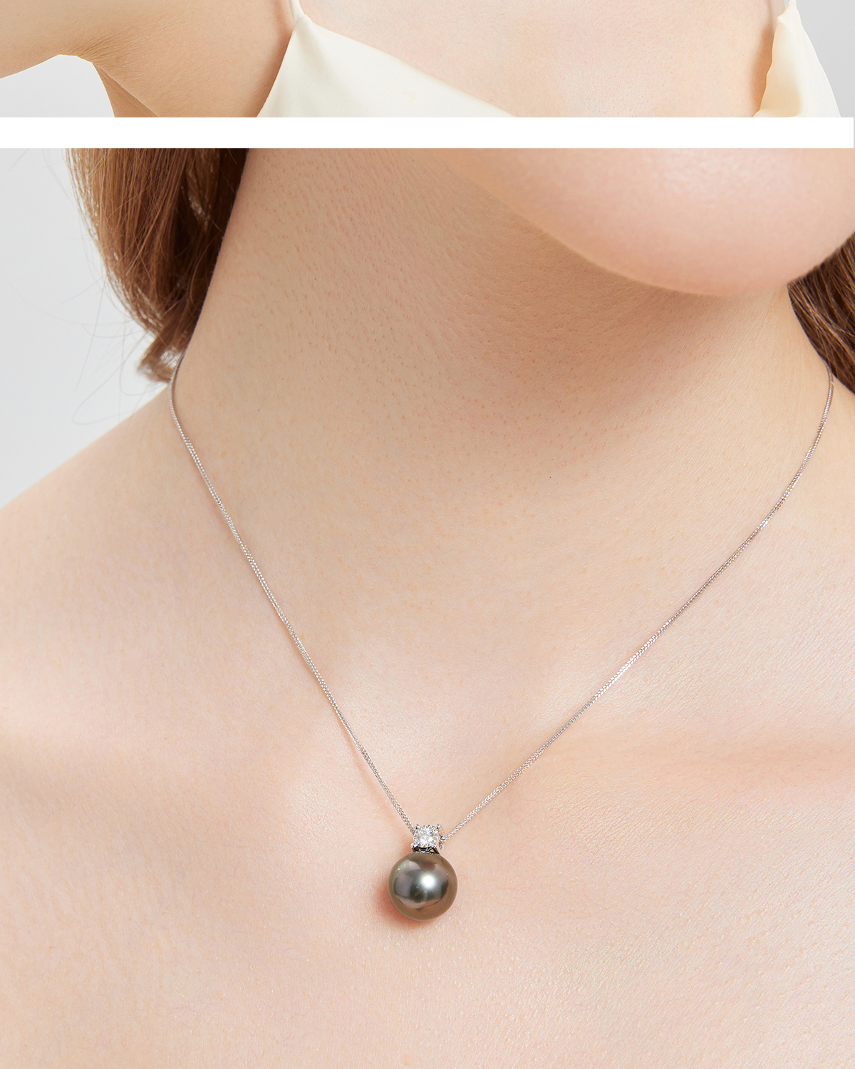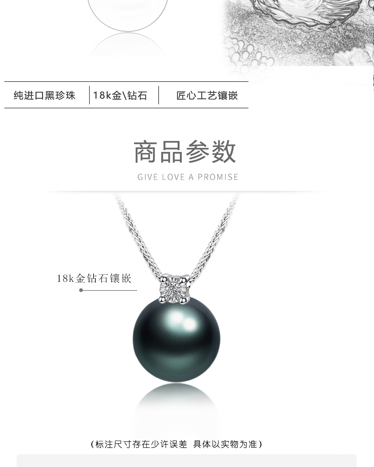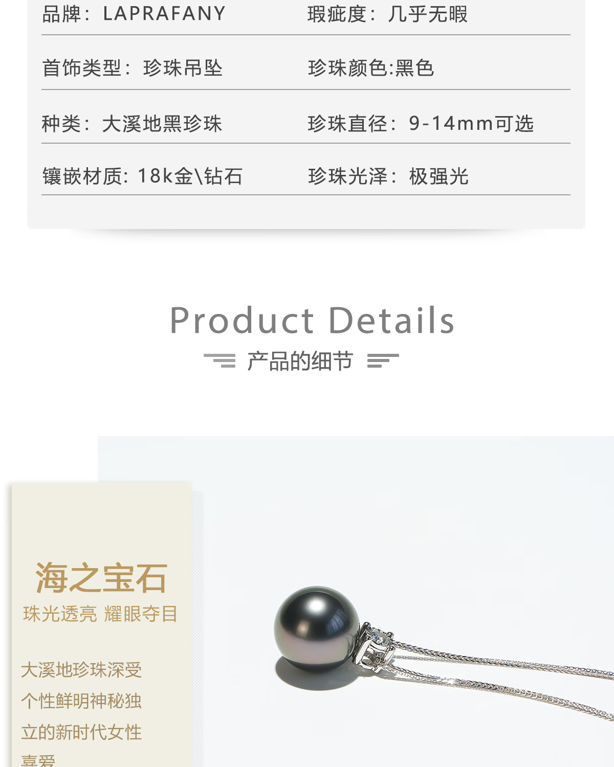 LAPRAFANY elegant Princess Diana natural sea water Tahitian black pearl pendant necklace 18K gold diamond single malachite green pendant 12-13mm specially selected black and green free 18K necklace