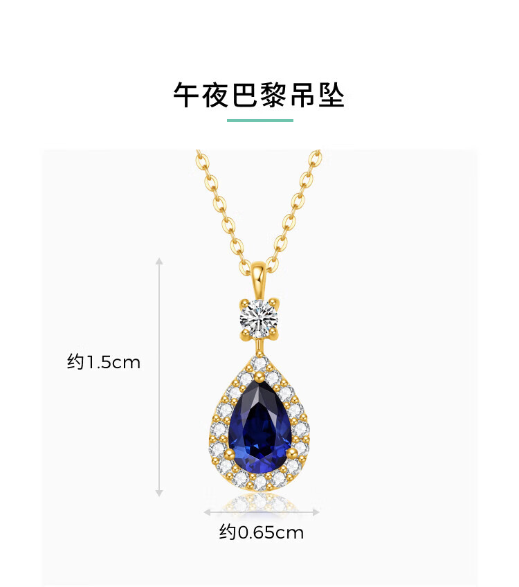 Mankaron 18K gold necklace for women 2025 new Midnight Paris pendant cultured diamond and sapphire inlaid gift for girlfriend Midnight Paris pendant, total weight is about 0.63g, cultured sapphire is about 0.48ct, cultured diamond is about 0.13ct