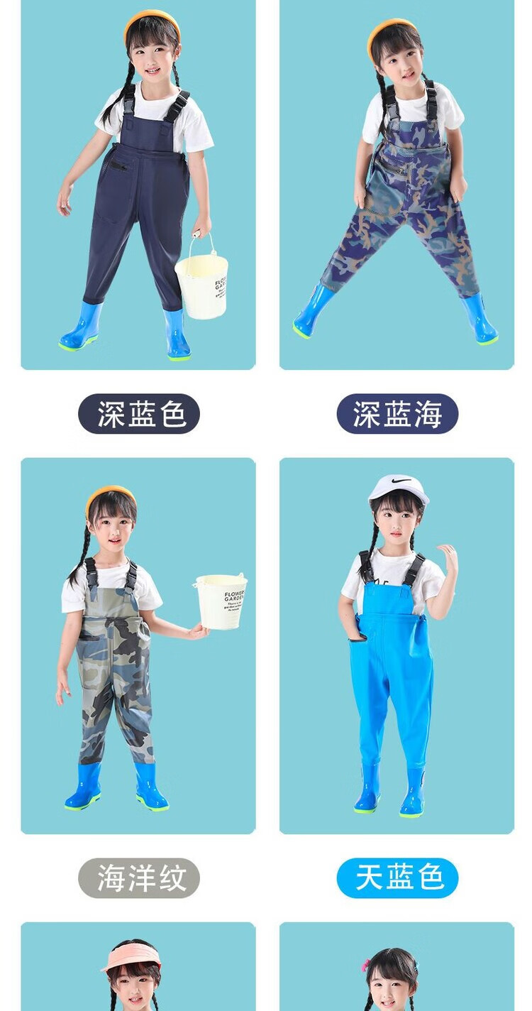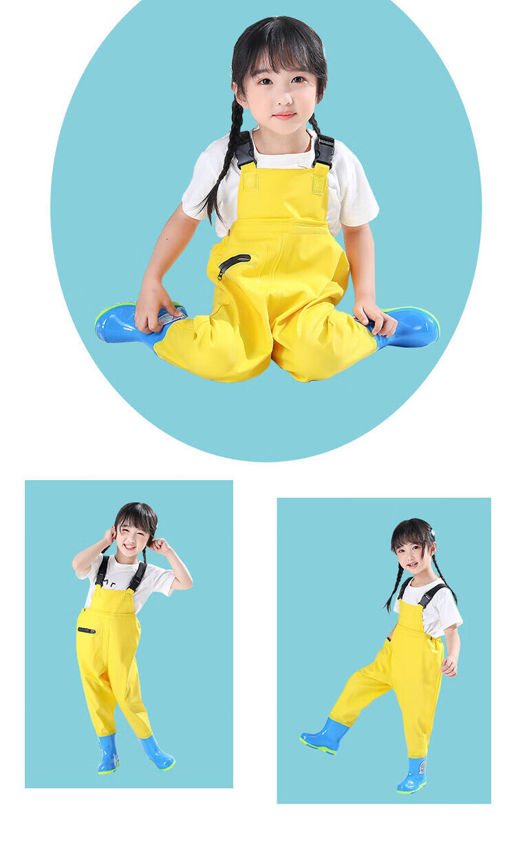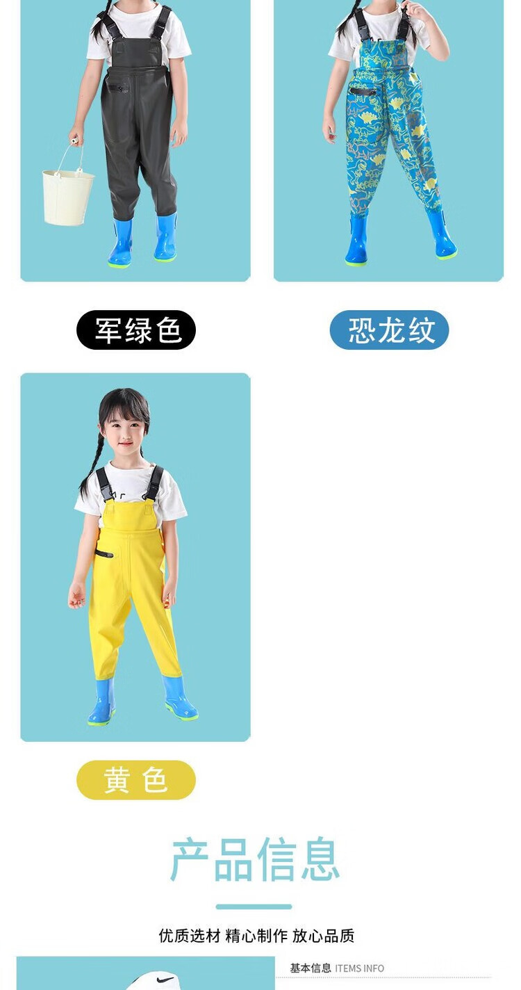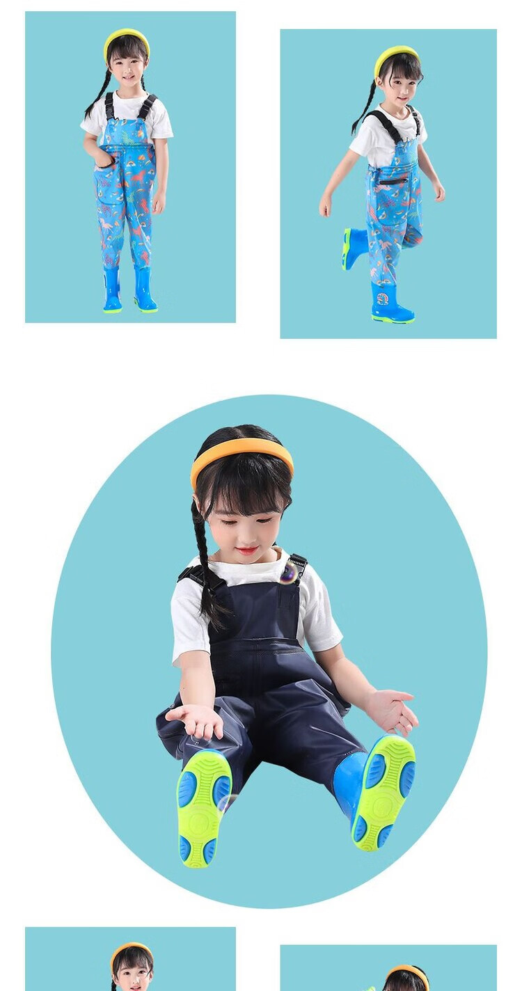 The little cleaner chooses water fork pants for children, water suits for playing in the sea, waterproof waders, jumpsuits for kindergarten, children's beach rain boots for men and women, children's dinosaur overalls with pockets, size 34 (shoe inner length 21c)