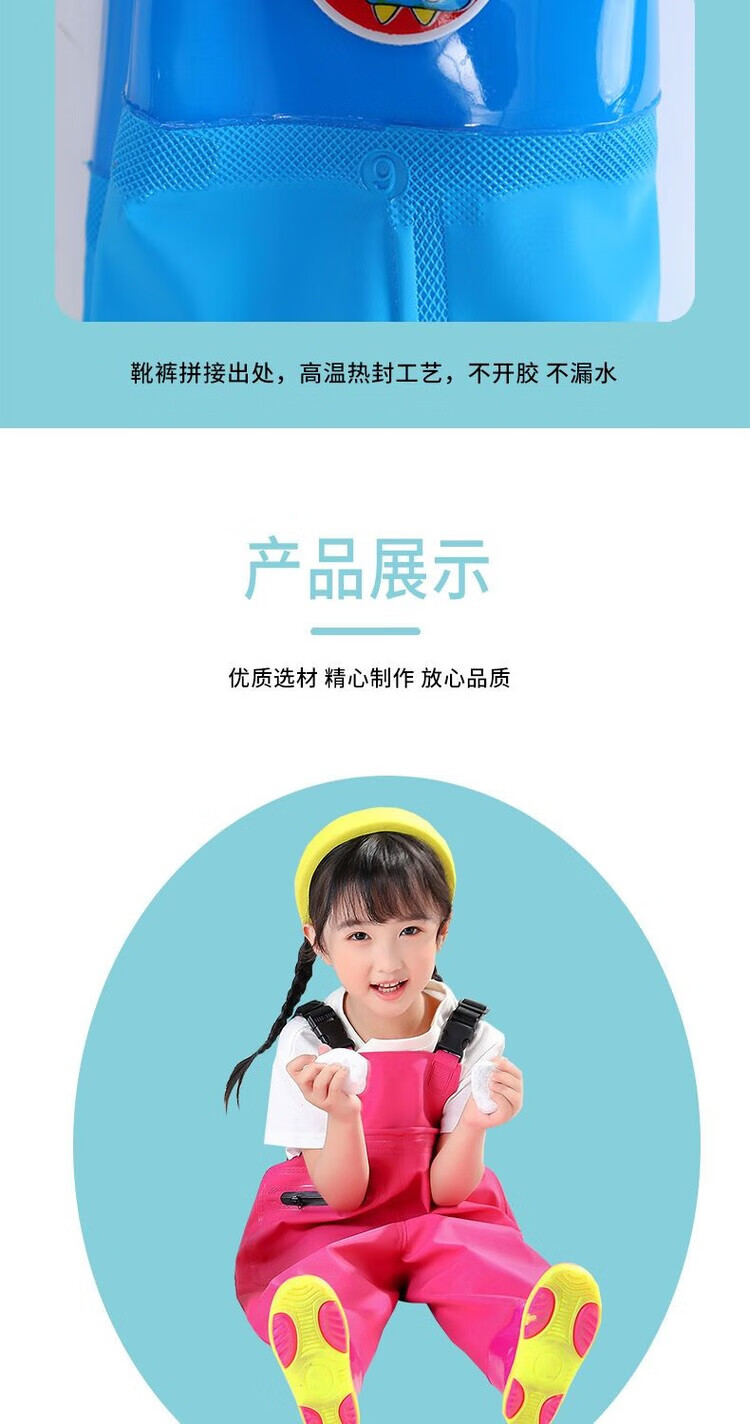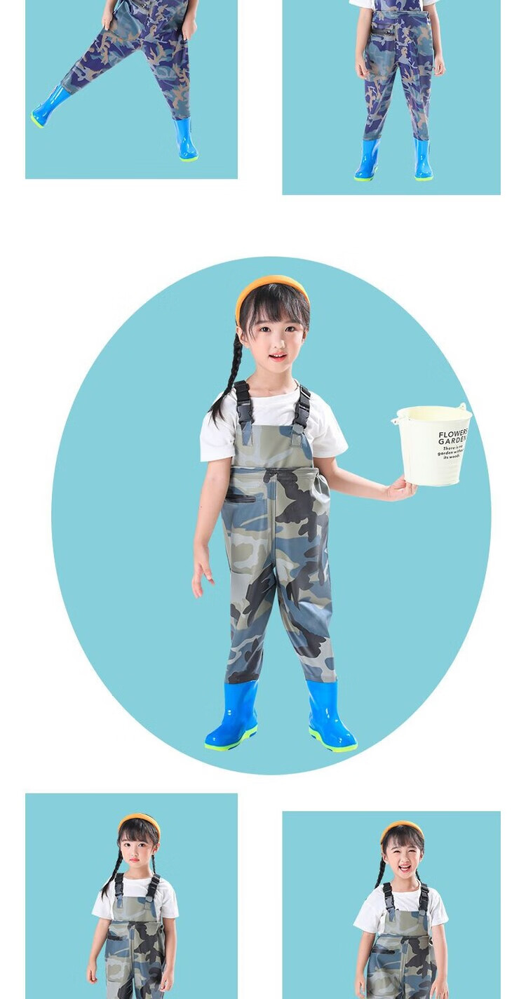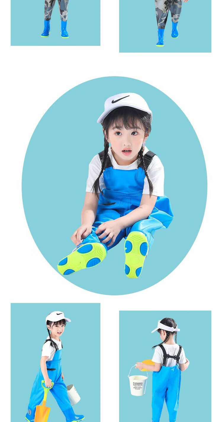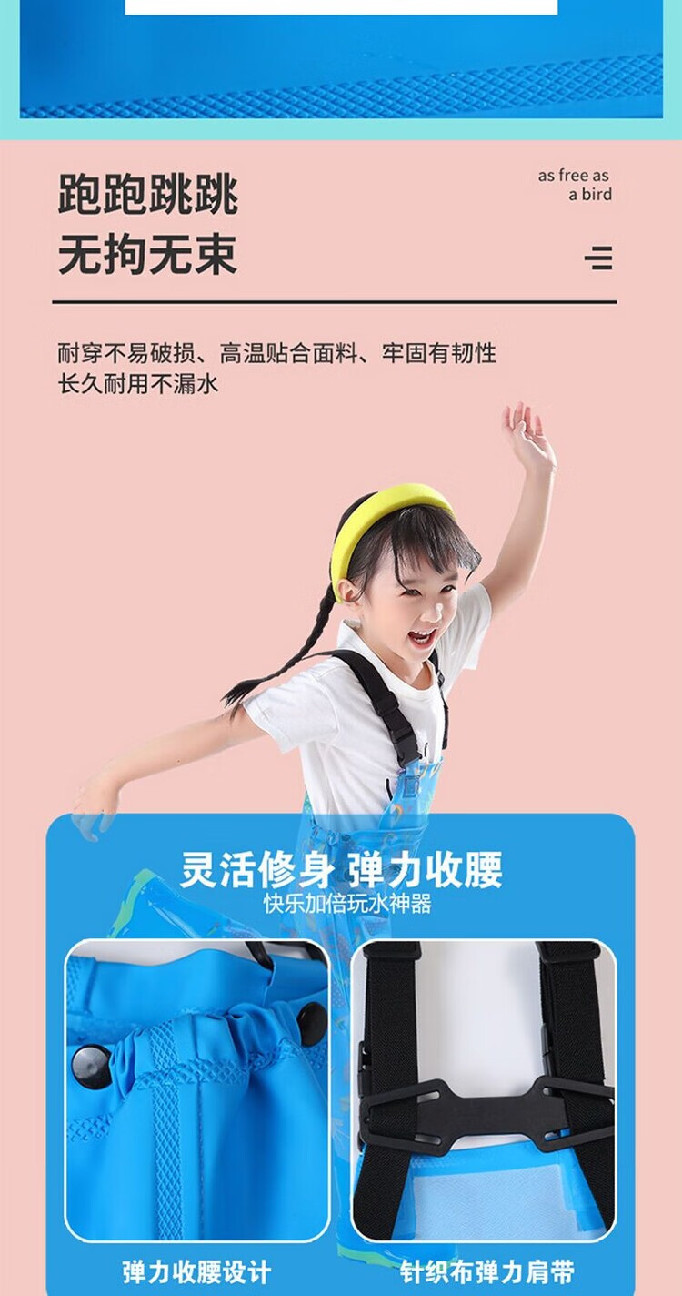 The little cleaner chooses water fork pants for children, water suits for playing in the sea, waterproof waders, jumpsuits for kindergarten, children's beach rain boots for men and women, children's dinosaur overalls with pockets, size 34 (shoe inner length 21c)